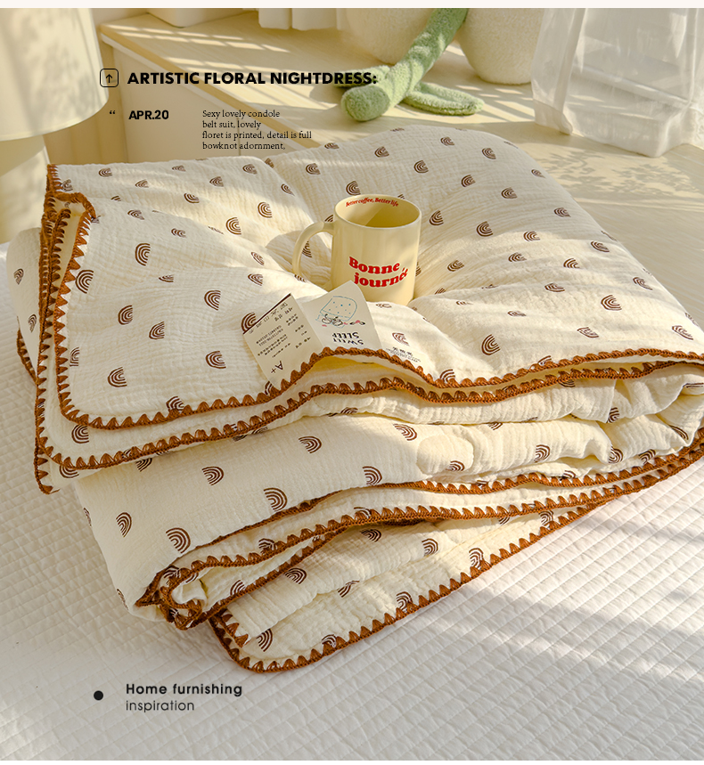 芯恋 2025新款母婴级全棉皱皱纱双层纱夏被 年轮