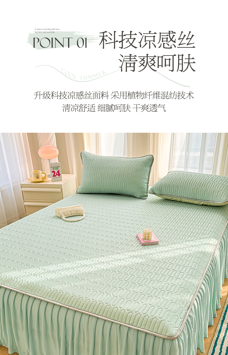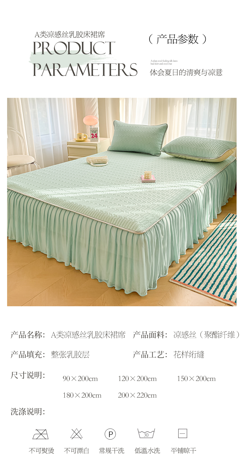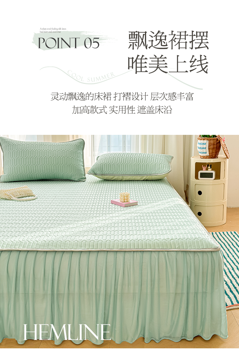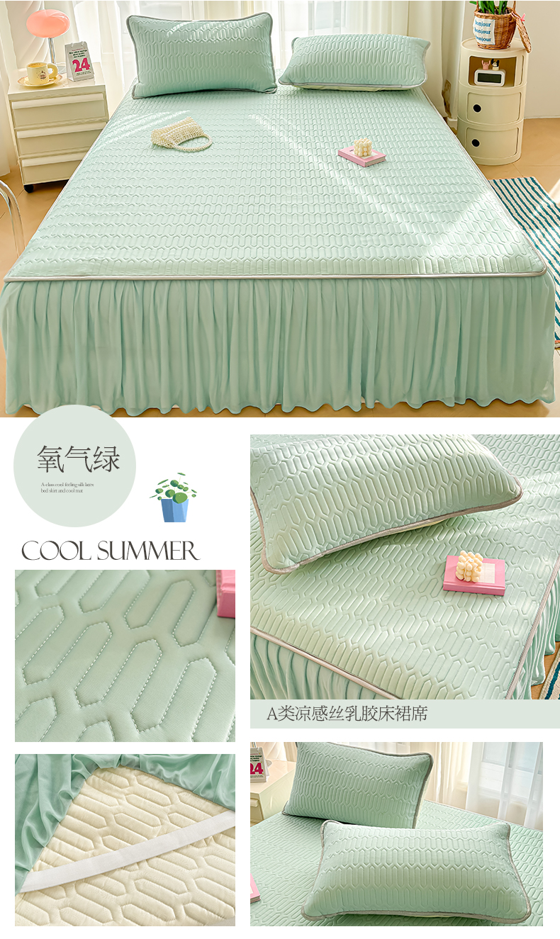 商品名称:伊人坊 2024新款A类凉感丝乳胶凉席床裙款床席 氧气绿