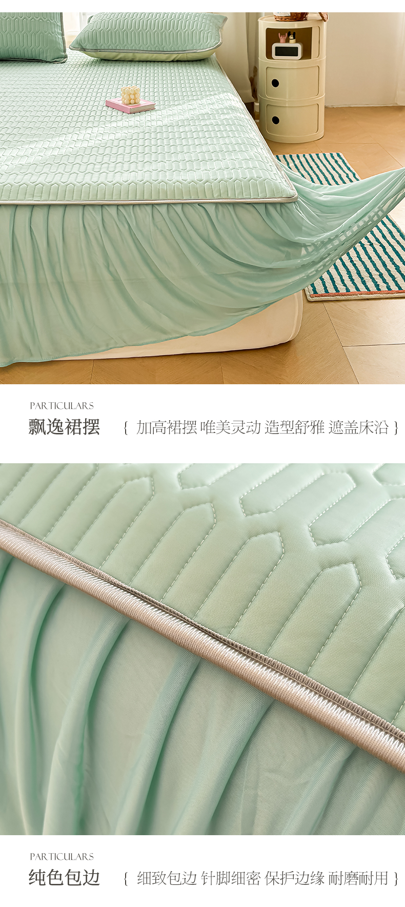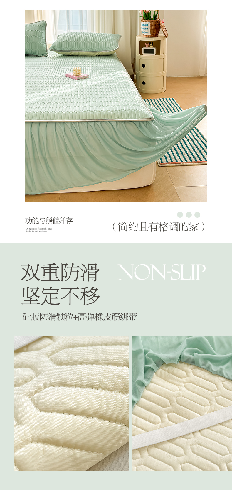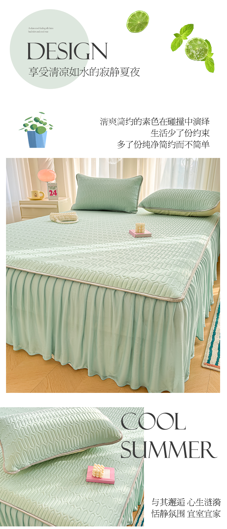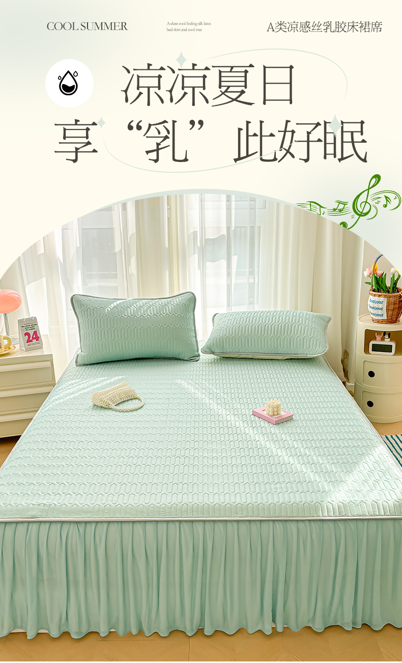 商品名称:伊人坊 2024新款A类凉感丝乳胶凉席床裙款床席 氧气绿
