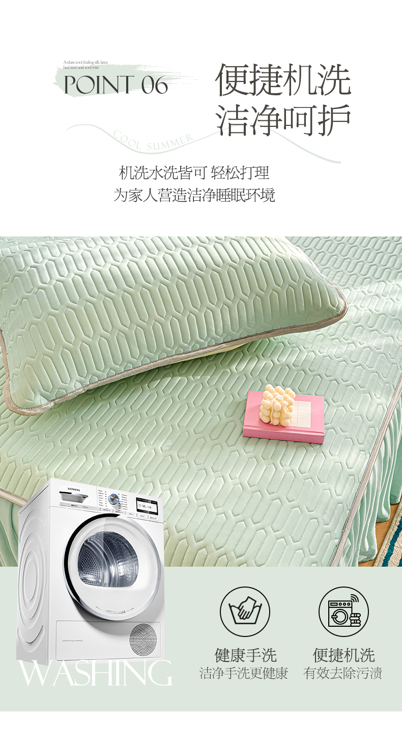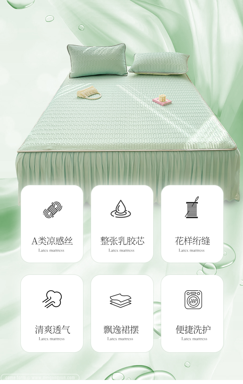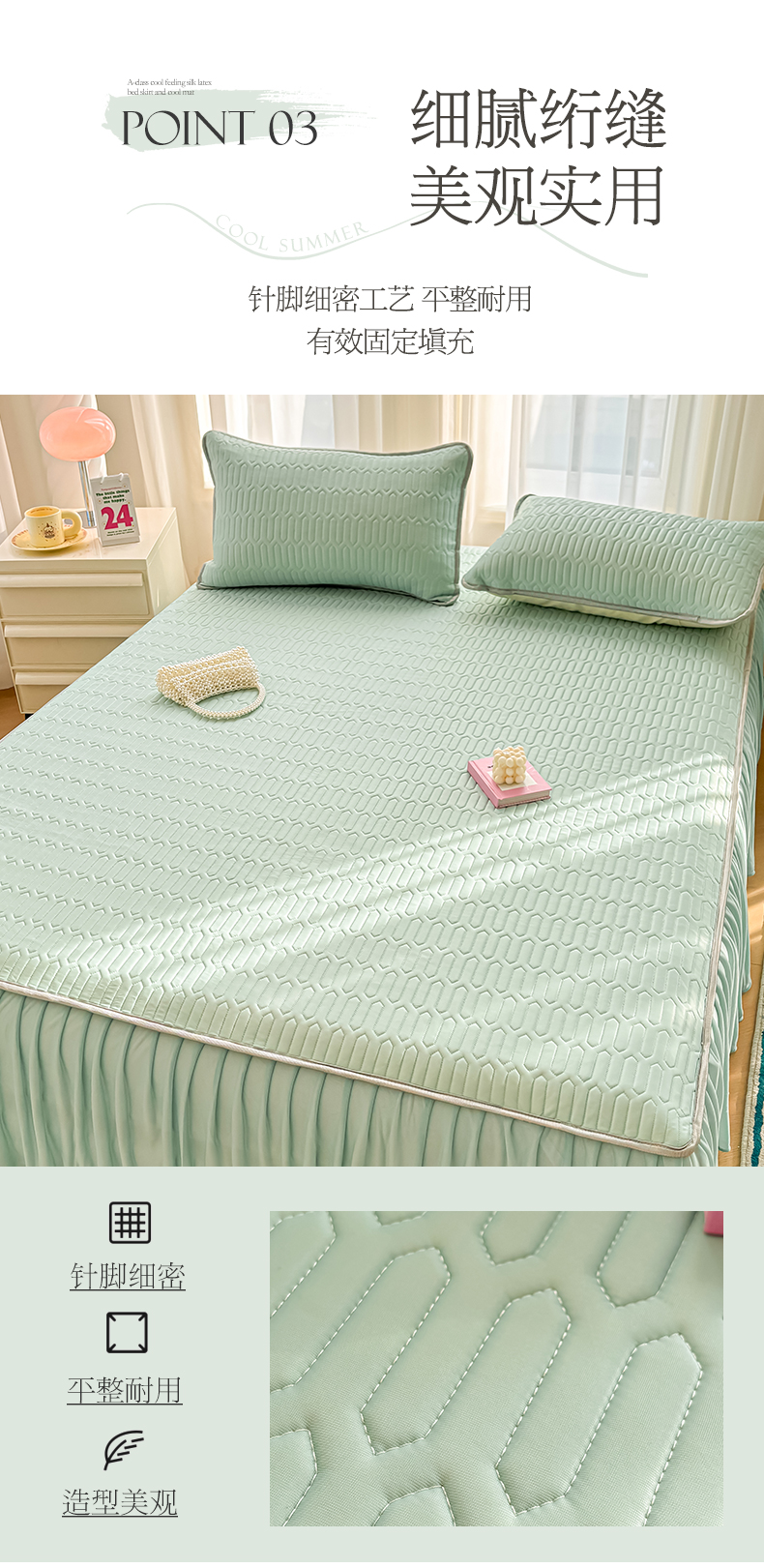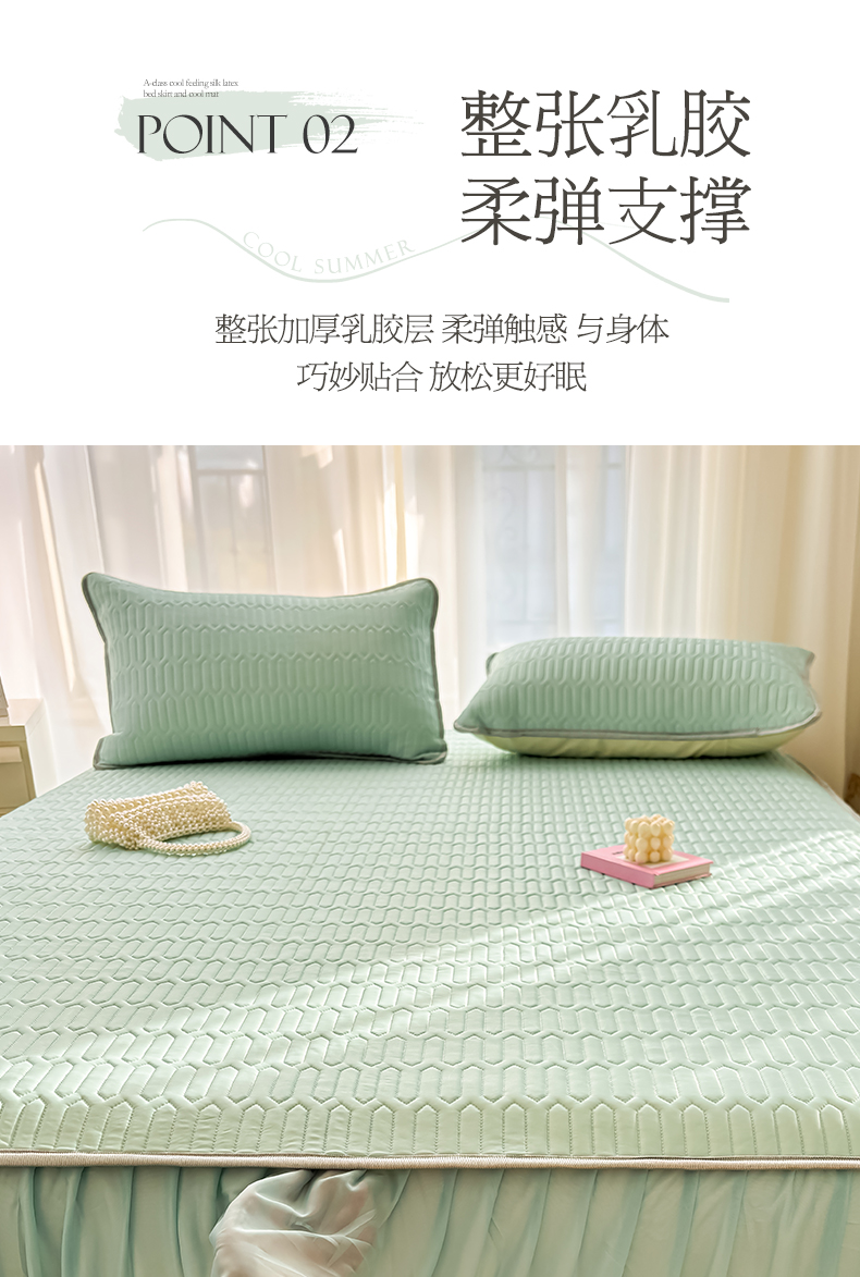 商品名称:伊人坊 2024新款A类凉感丝乳胶凉席床裙款床席 氧气绿