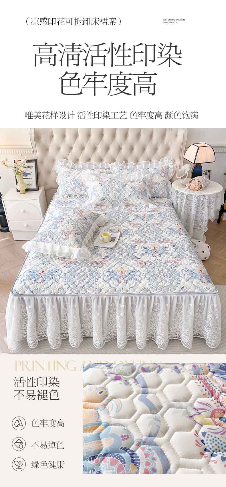 (总)虹星家纺 2024新款凉感丝印花可拆床裙套件-三件套,初禾绿,繁花集序,花花梦境,花语自然,静悠香阁,罗马之恋,梦境幻影,迷幻时空,欧式雅韵,柔丝曼舞,三叶星草,天空蓝,仙女粉,叶语浪漫,悠情假日,月光灰