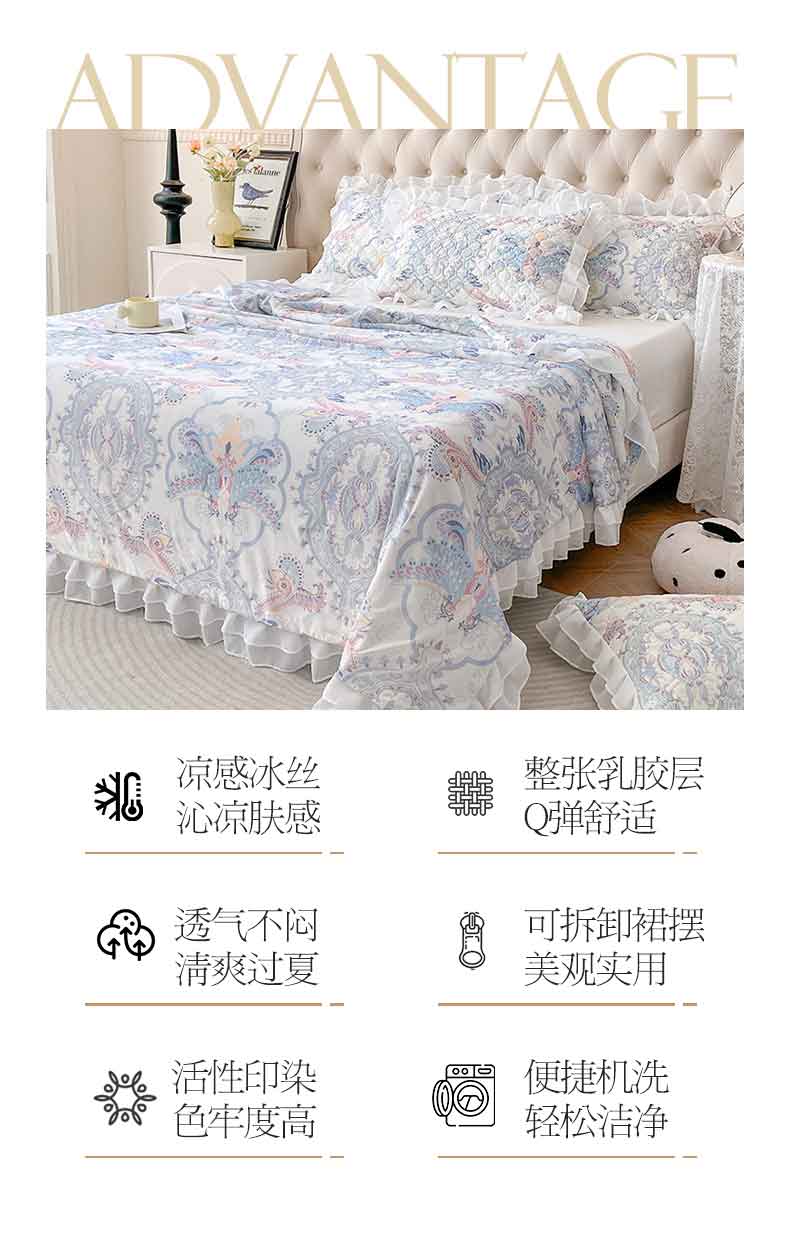(总)虹星家纺 2024新款凉感丝印花可拆床裙套件-夏被凉席四件套,初禾绿,仙女粉,三叶星草,叶语浪漫,天空蓝,悠情假日,月光灰,柔丝曼舞,梦境幻影,欧式雅韵,繁花集序,罗马之恋,花花梦境,花语自然,迷幻时空,静悠香阁