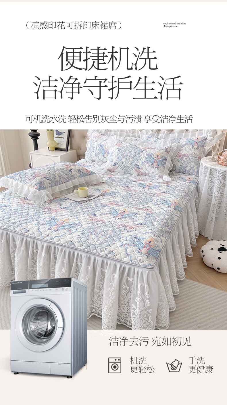 (总)虹星家纺 2025新款A类冰感凉豆豆床裙席三件套-素夏,素夏-抹茶绿,素夏-蜜桃粉,素夏-青果绿,素夏-天空蓝,素夏-月光灰