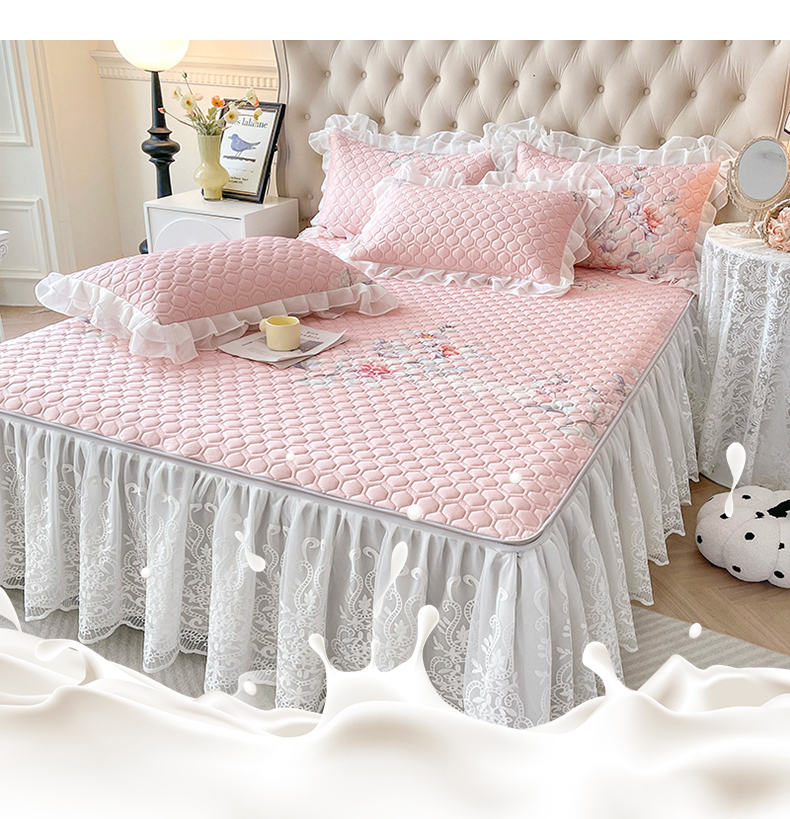 (总)虹星家纺 2025新款花边牛奶绒床裙三件套系列,蝶恋-粉玉,蝶恋-抹茶绿,蝶恋-奶茶色,蝶恋-葡萄紫,蝶恋-天空蓝
