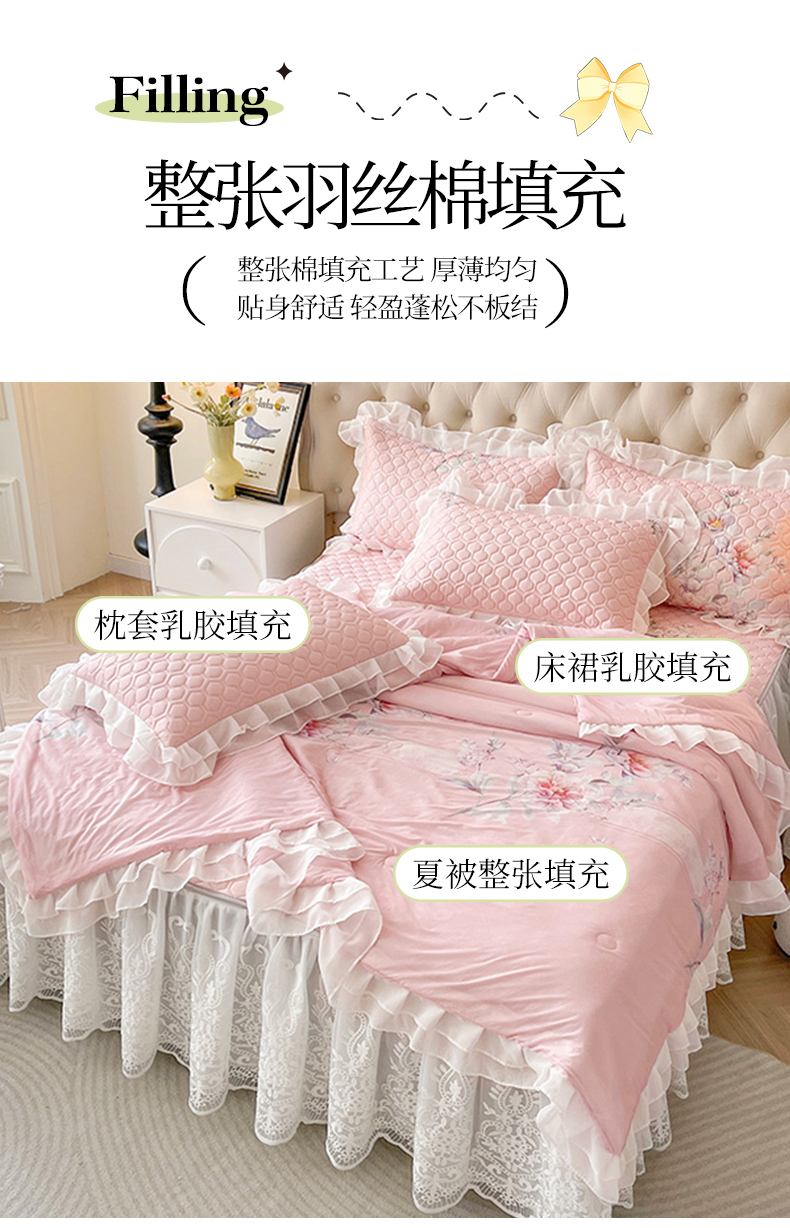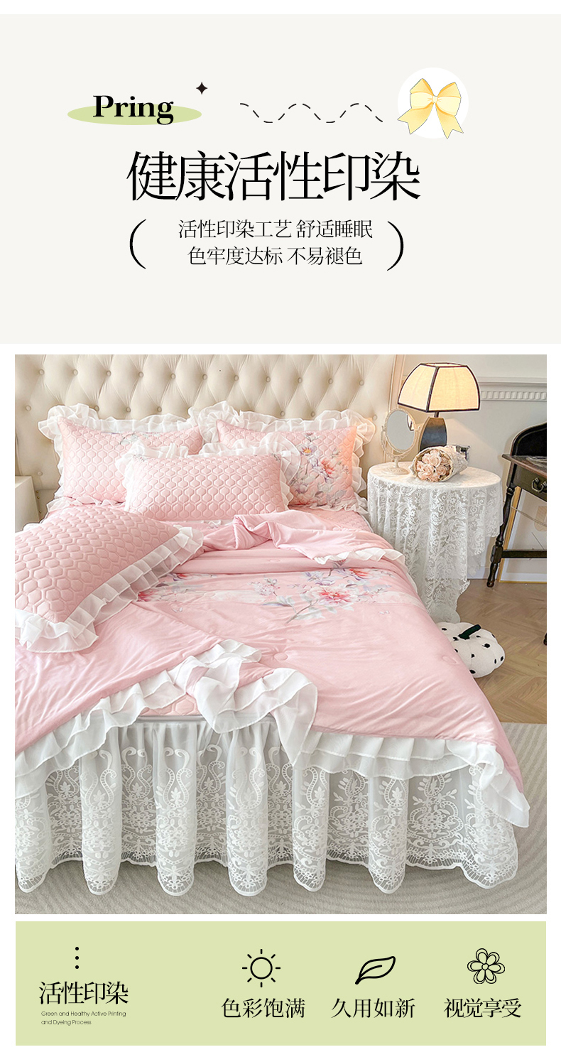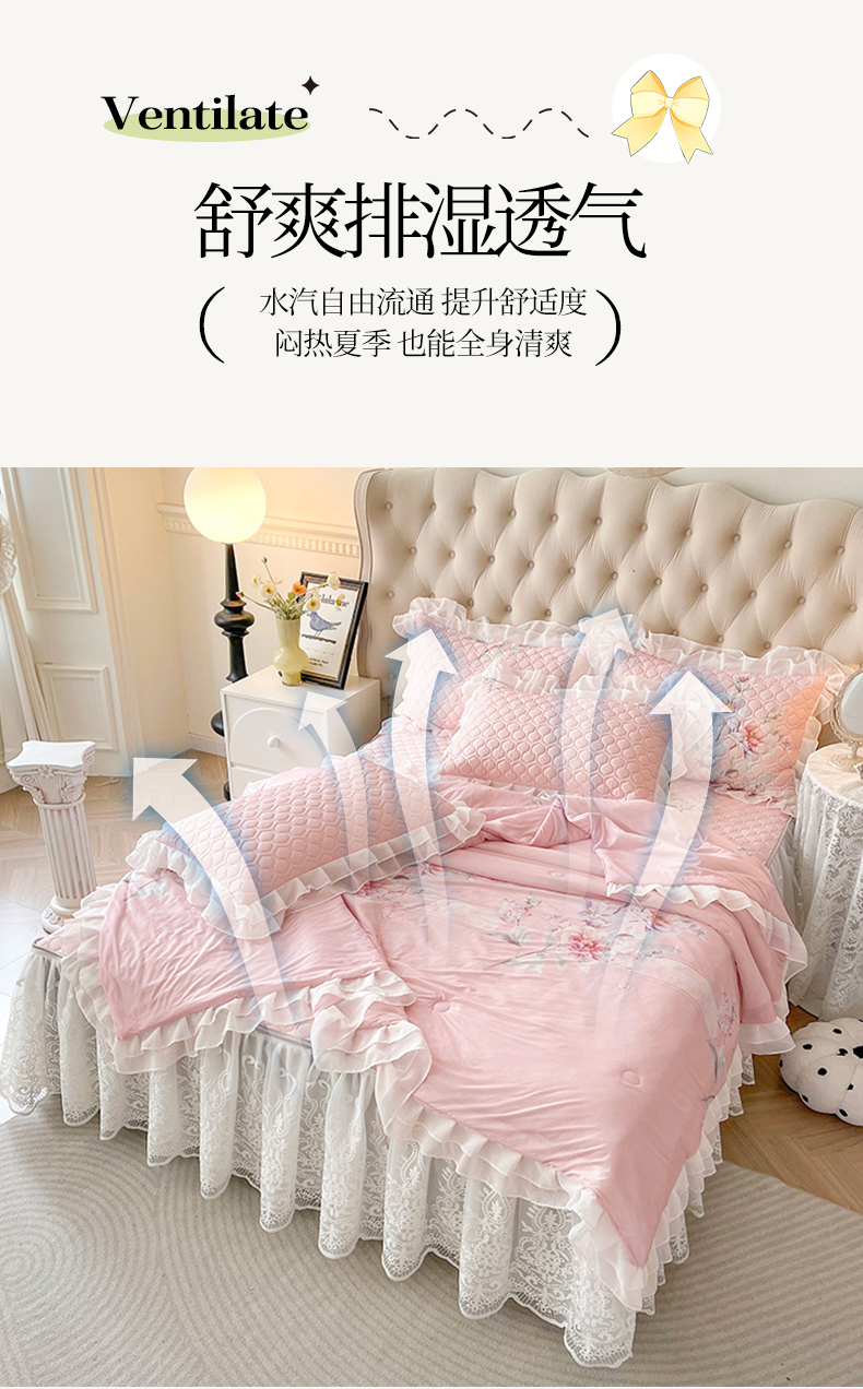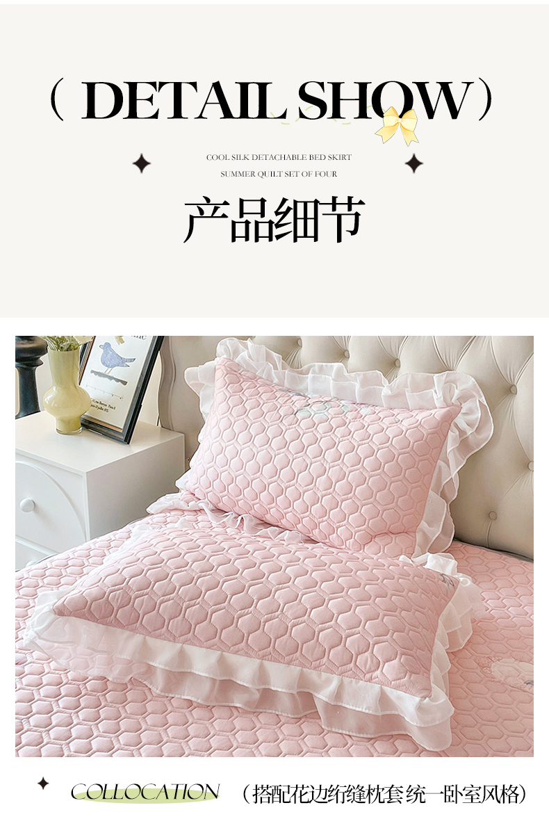 虹星家纺 2024新款凉感丝印花可拆床裙套件-夏被凉席四件套 静悠香阁