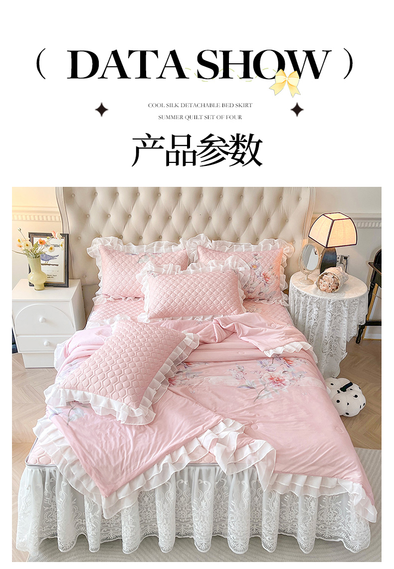 商品名称:虹星家纺 2024新款凉感丝印花可拆床裙套件-夏被凉席四件套 静悠香阁