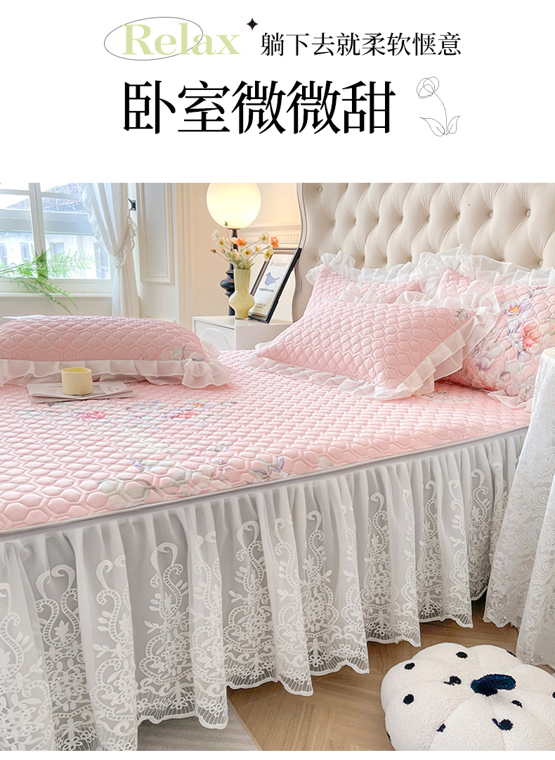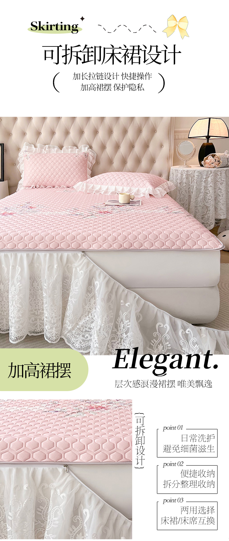 (总)虹星家纺 2025新款A类冰感凉豆豆床裙席三件套-素夏,素夏-抹茶绿,素夏-蜜桃粉,素夏-青果绿,素夏-天空蓝,素夏-月光灰