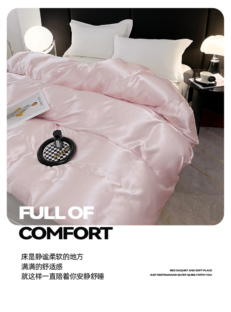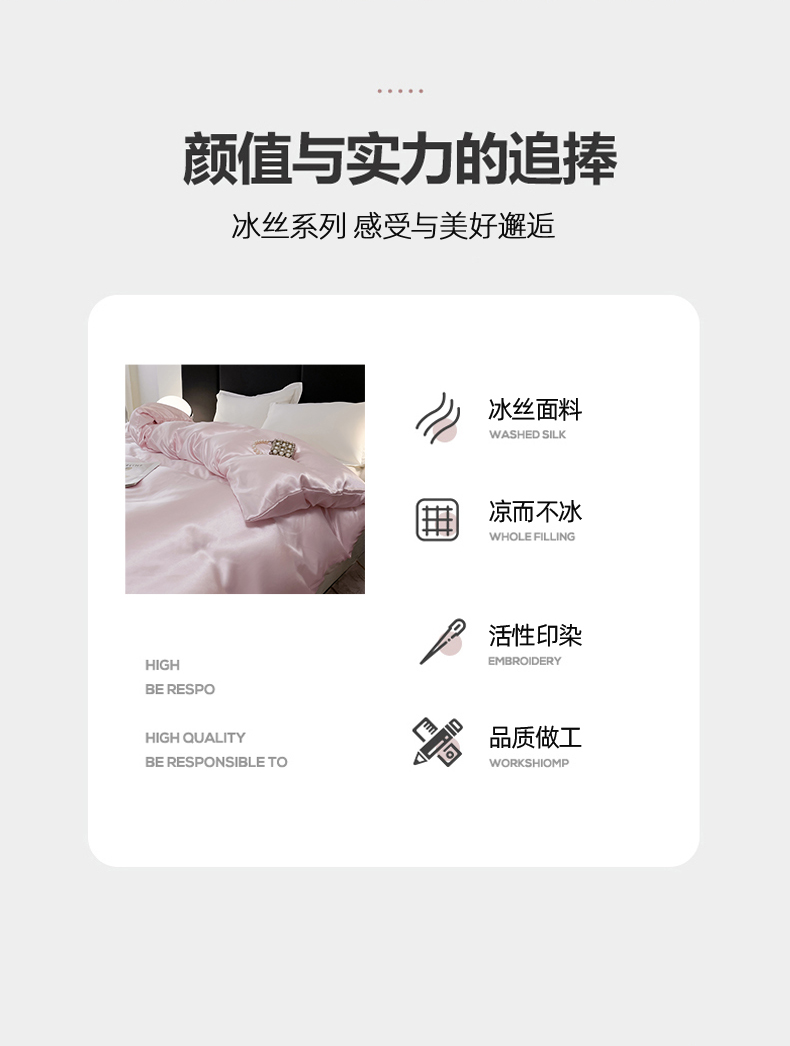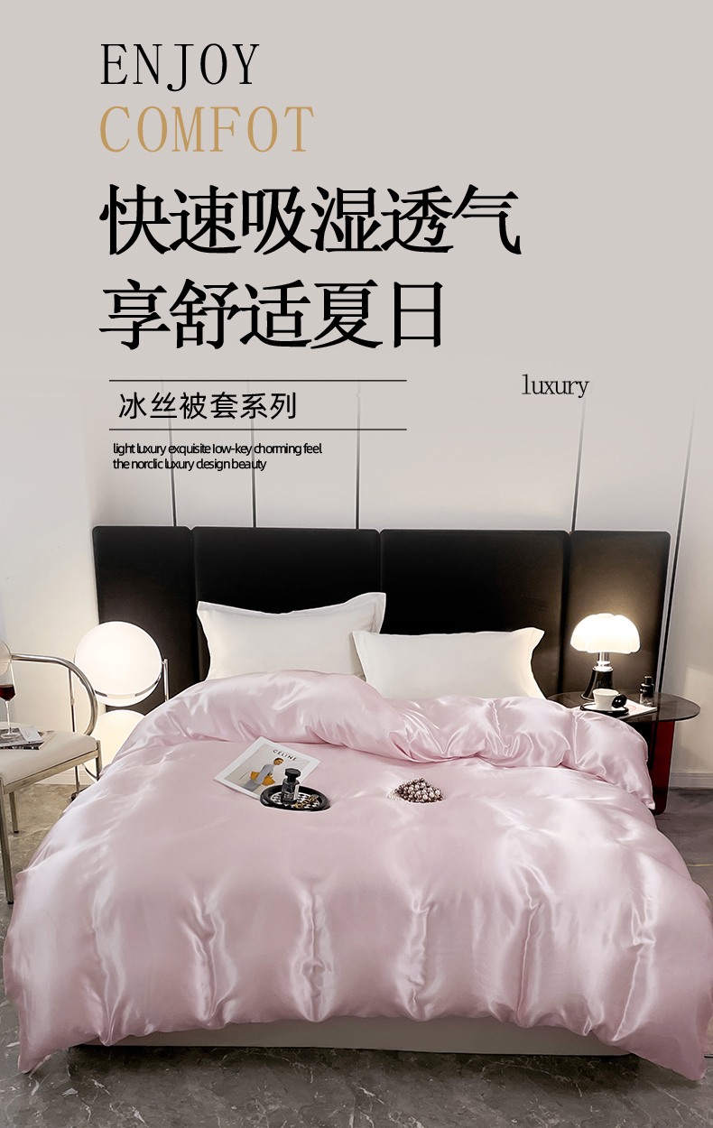 • 91家纺网 家纺一手货源 找家纺 梦舒羽 2025新款可水洗冰丝被套双人床被套带同款床单床笠四件套 淡雅玉