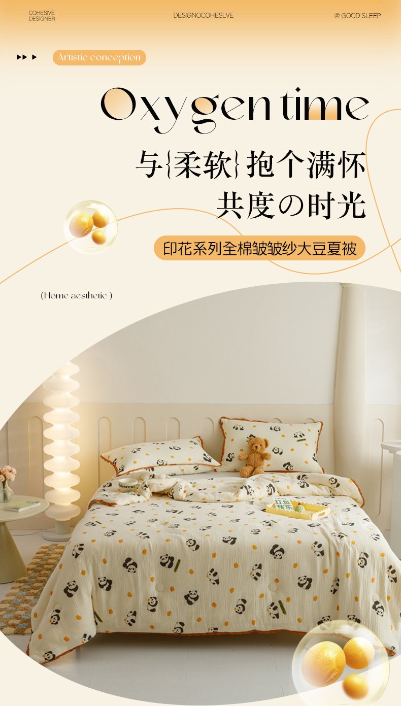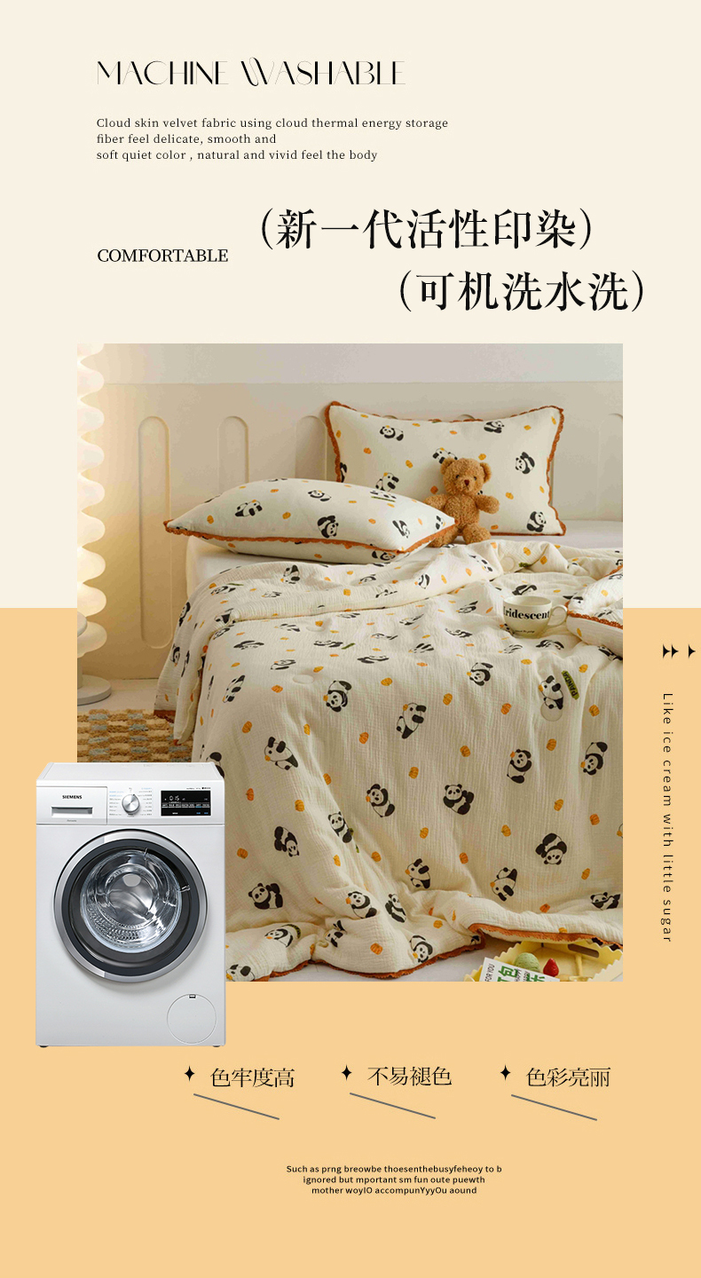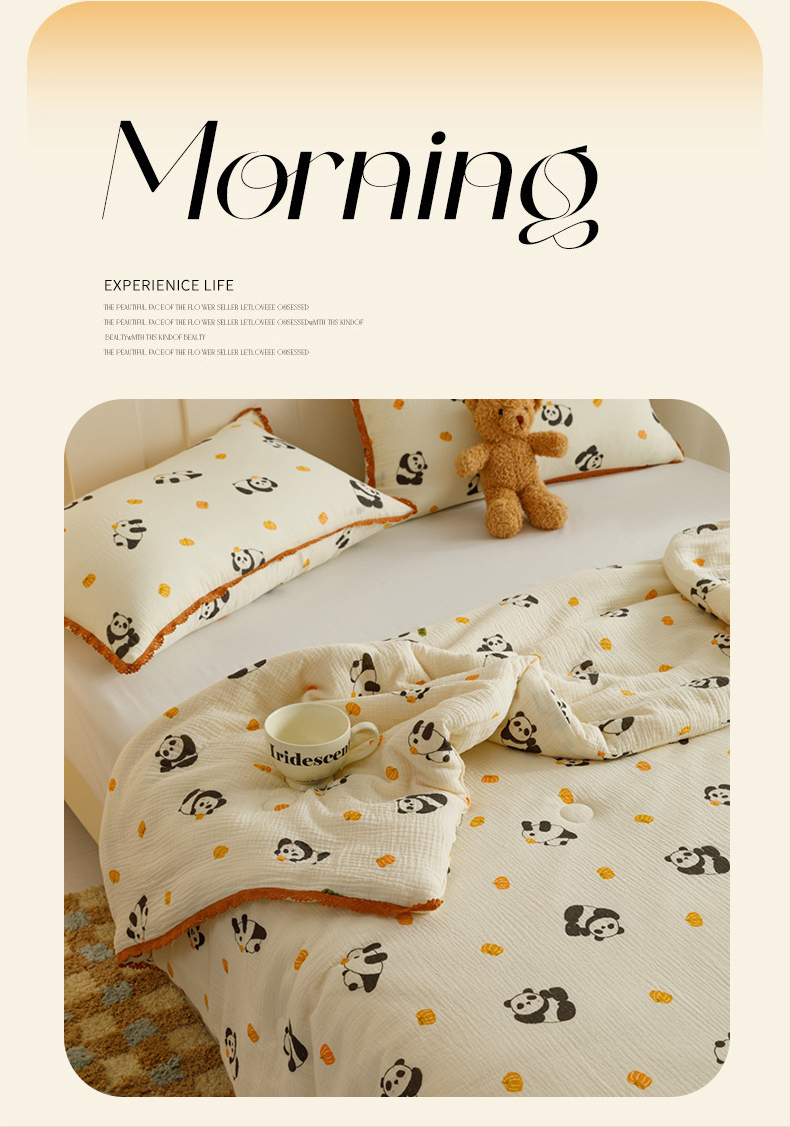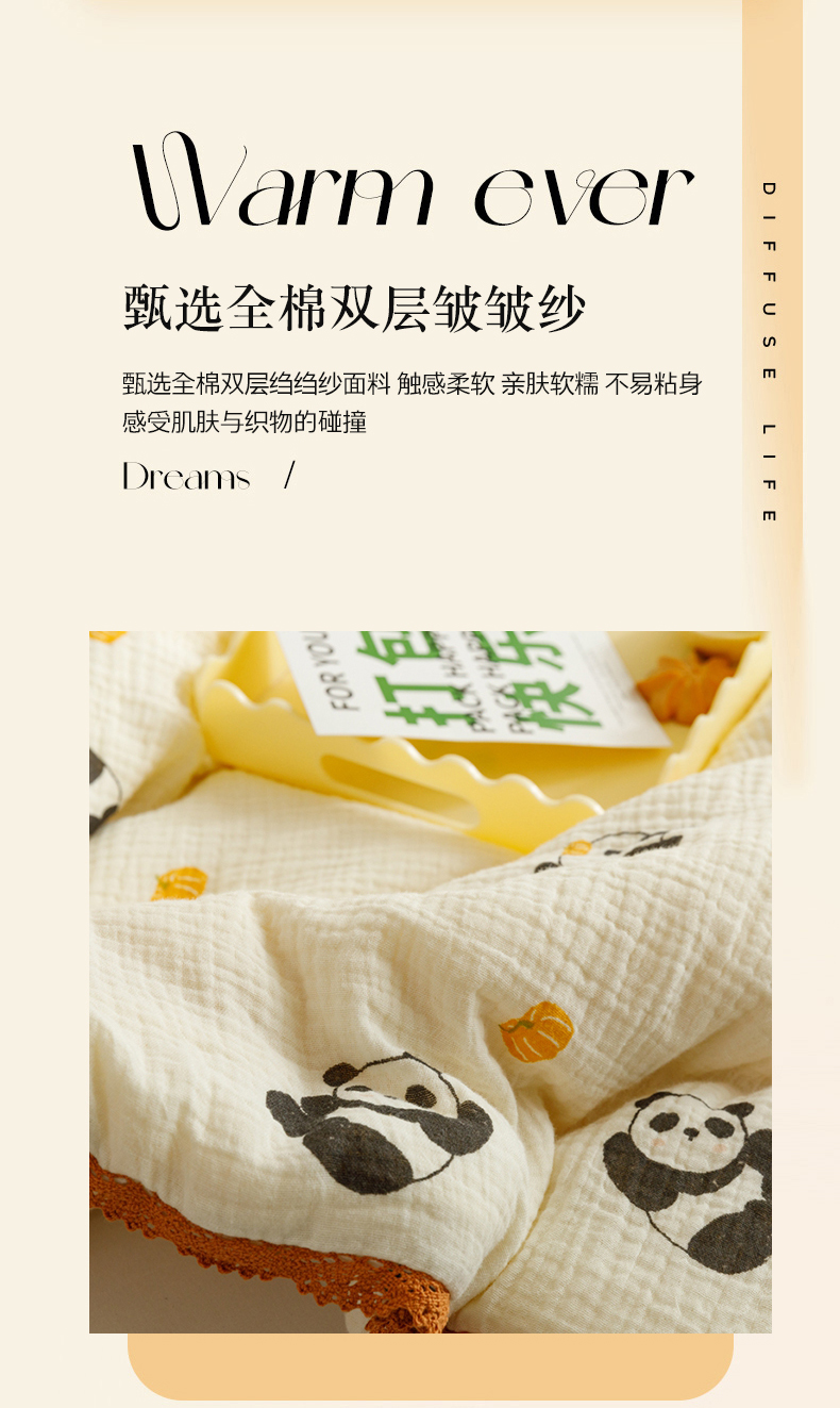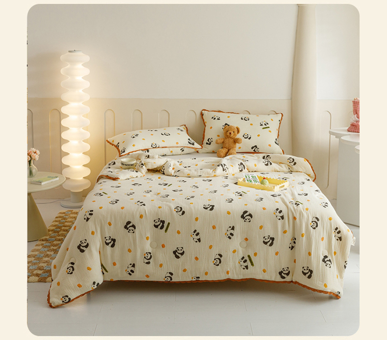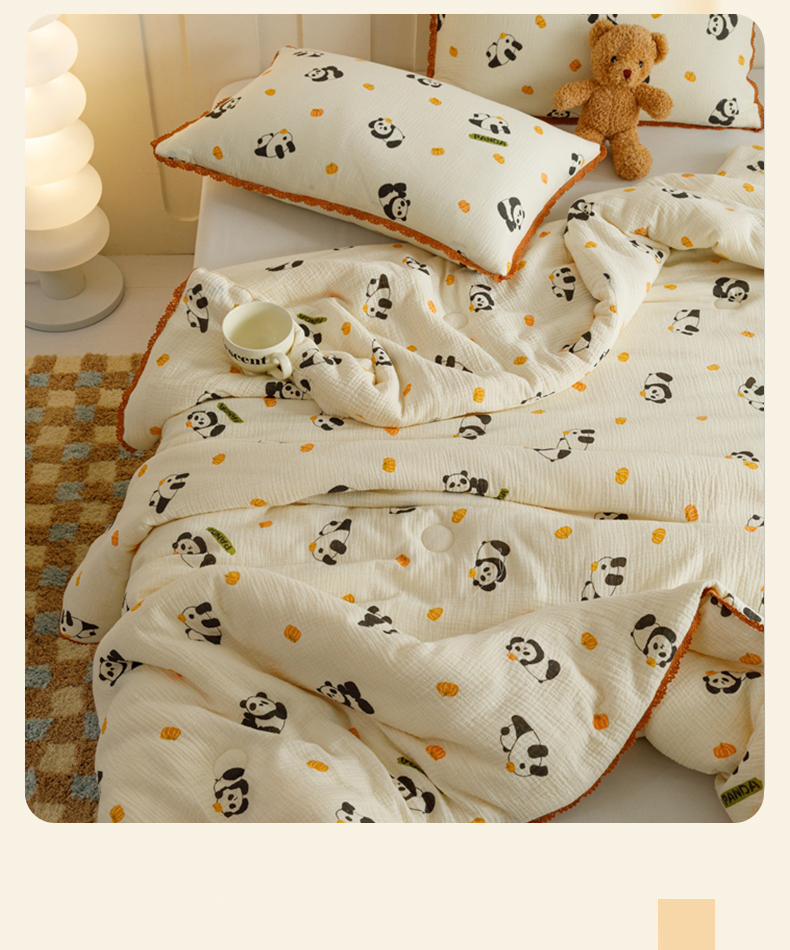 商品名称:优被业 2025新款全棉双层纱皱皱纱夏被 南瓜熊猫