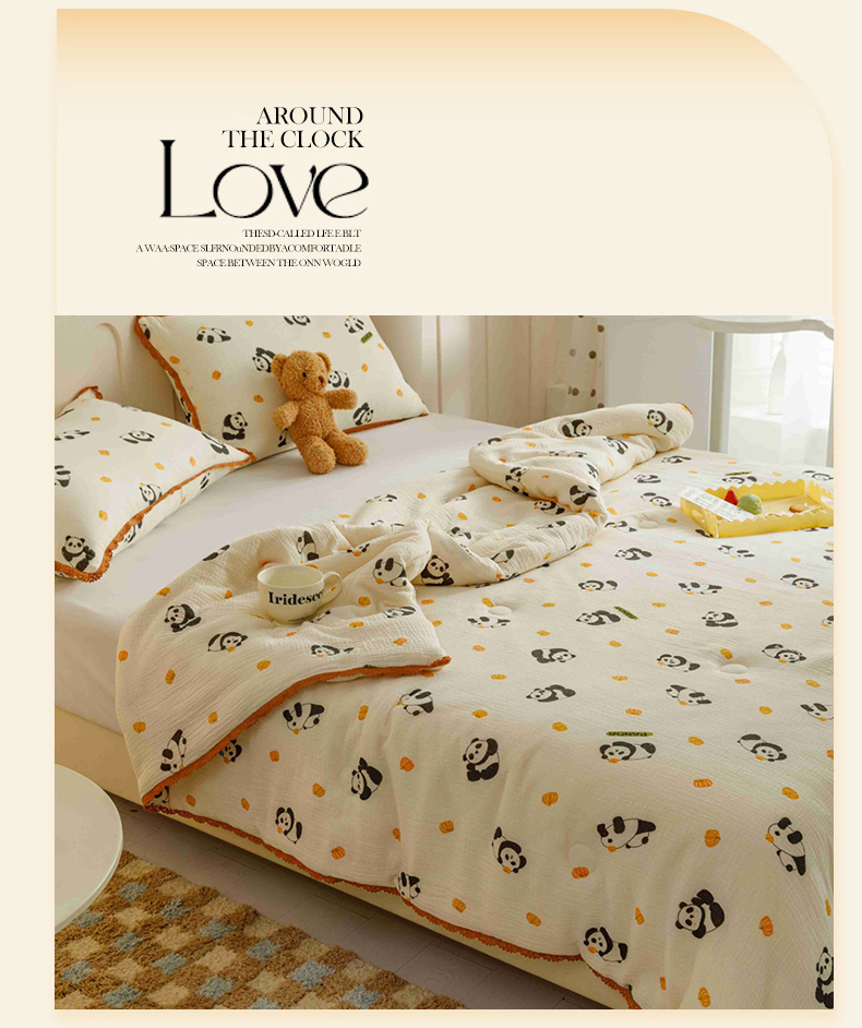 优被业 2025新款全棉双层纱皱皱纱夏被 南瓜熊猫