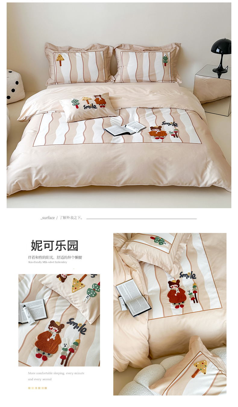 商品名称:名品优仓 2024新款大版数码印花定位水洗棉四件套系列 妮可乐园