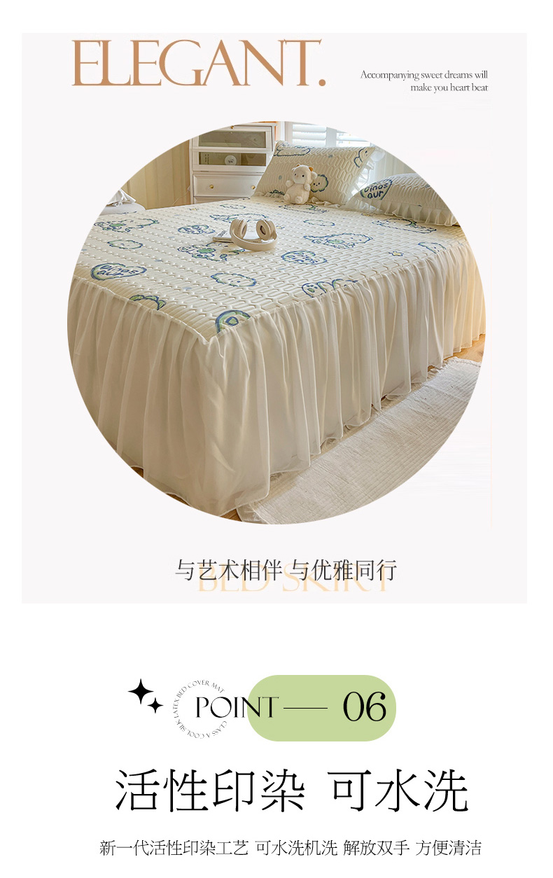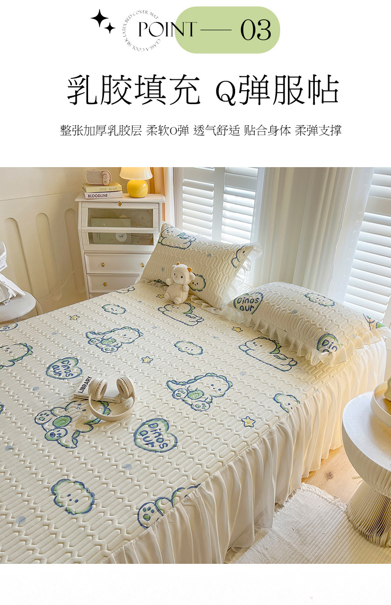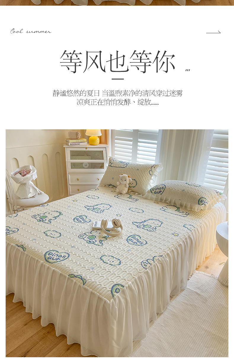 商品名称:慕澄家纺 2024新款小版印花床裙款乳胶凉席凉感丝夏被四件套 床裙款-顽皮小恐龙