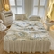 (总)慕澄家纺 2022新款华夫格雪纺花边四件套,湖水绿,魅惑紫,奶白色,奶黄色,浅豆沙,情调灰,天空蓝,樱花粉