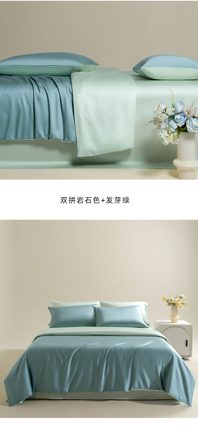 商品名称:Mr.pig猪先生水洗棉 2024新款60天丝莱赛尔纤维四件套 双拼岩石色+发芽绿