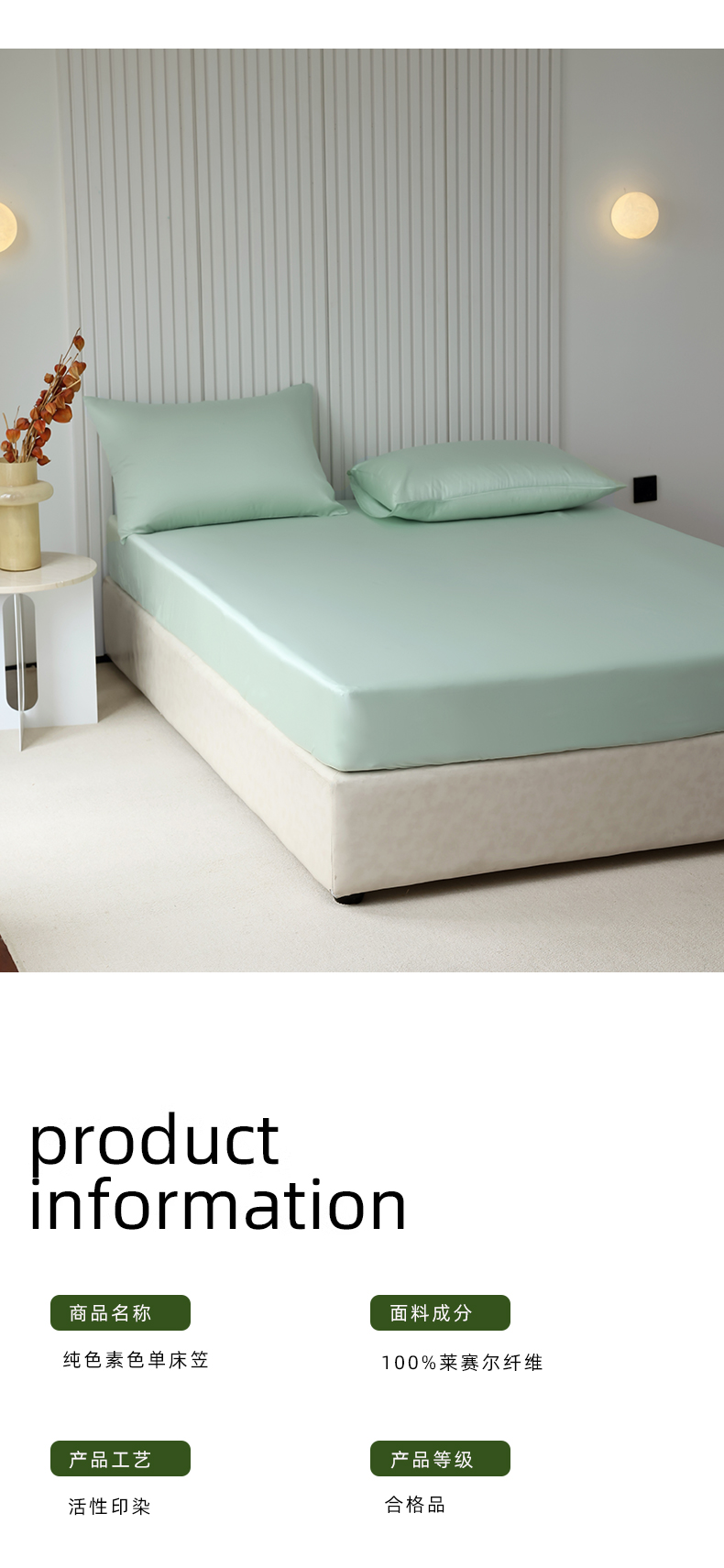 商品名称:Mr.pig猪先生水洗棉 2024新款60天丝莱赛尔纤维四件套系列-单床笠 发芽绿