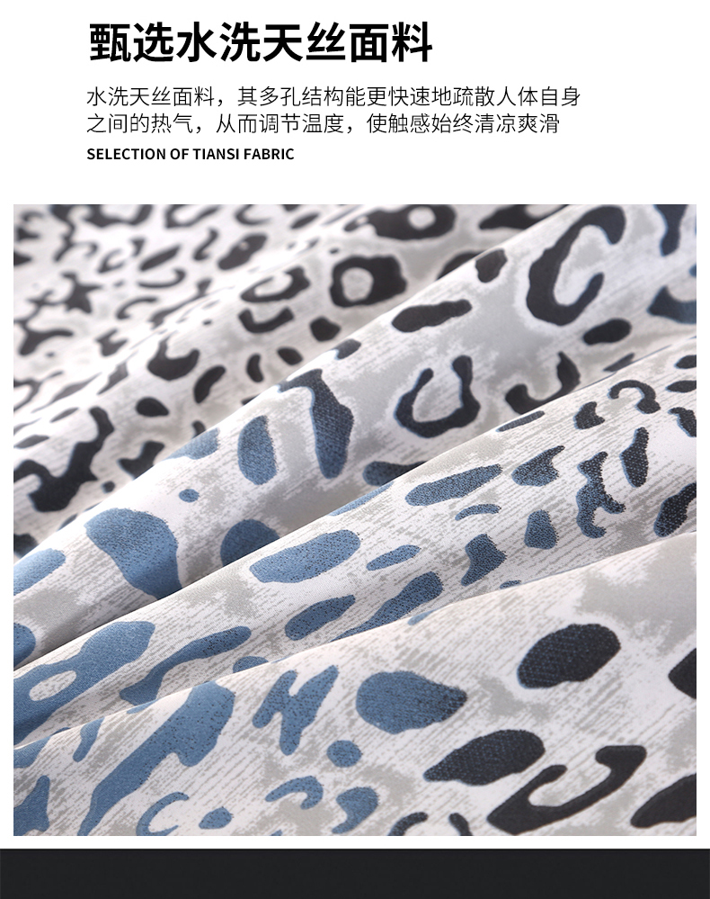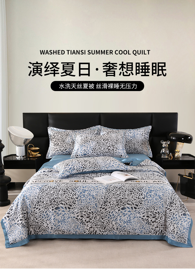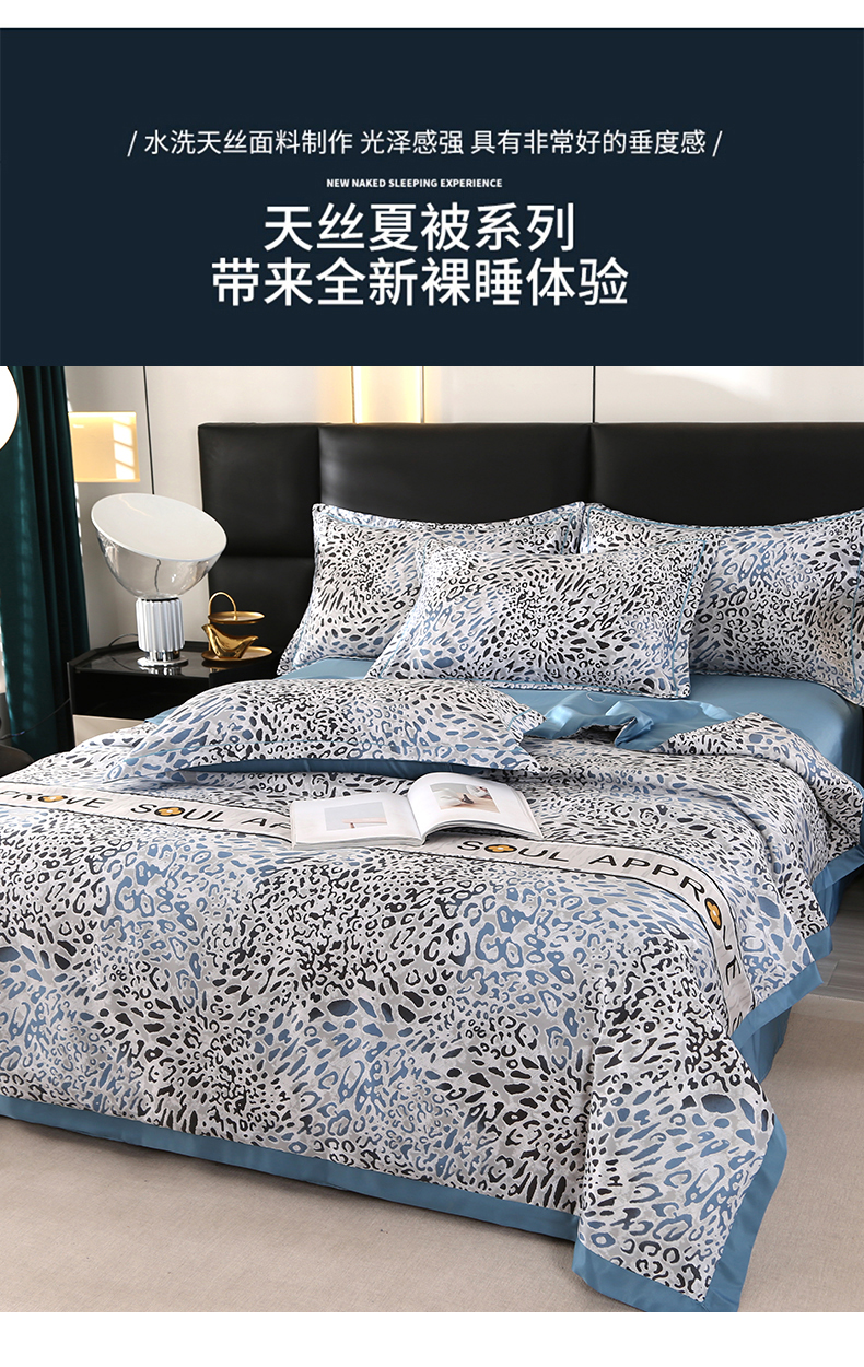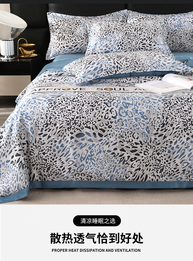 富之航家纺 2024新款拼角宽边水洗天丝夏被四件套 豹纹兰