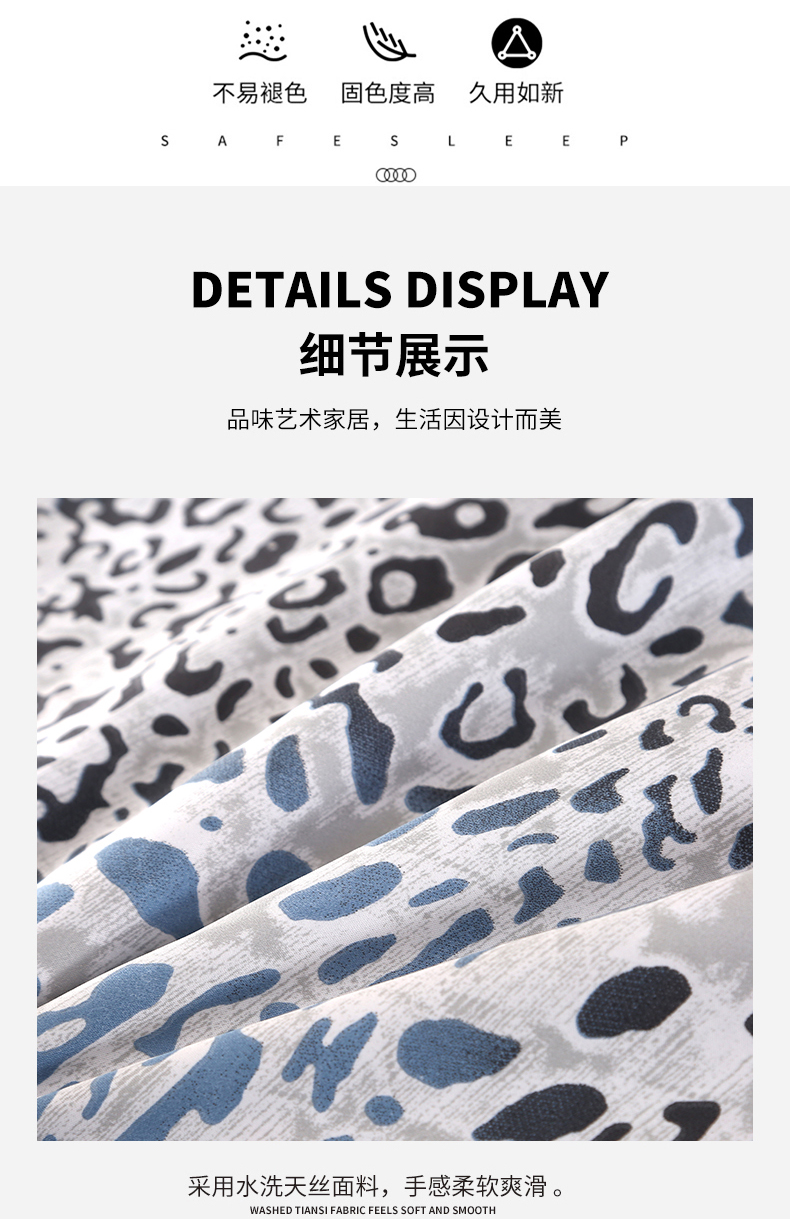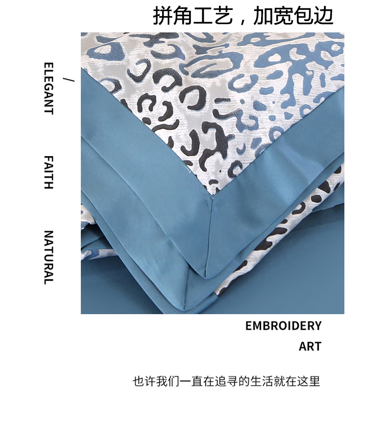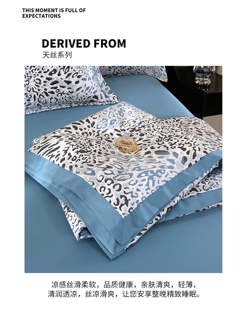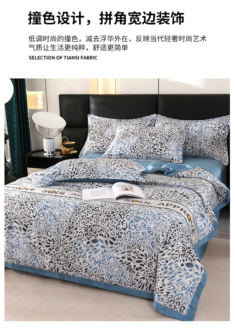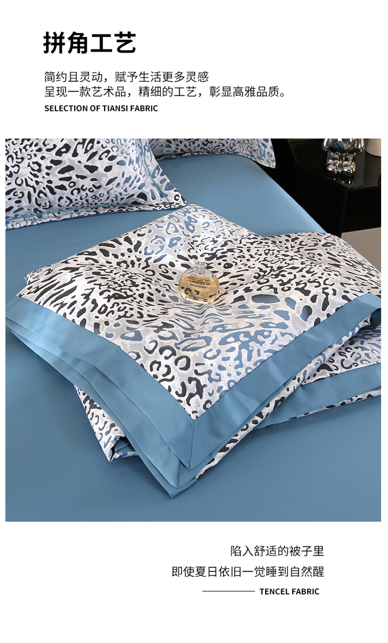 商品名称:富之航家纺 2024新款拼角宽边水洗天丝夏被四件套 豹纹兰