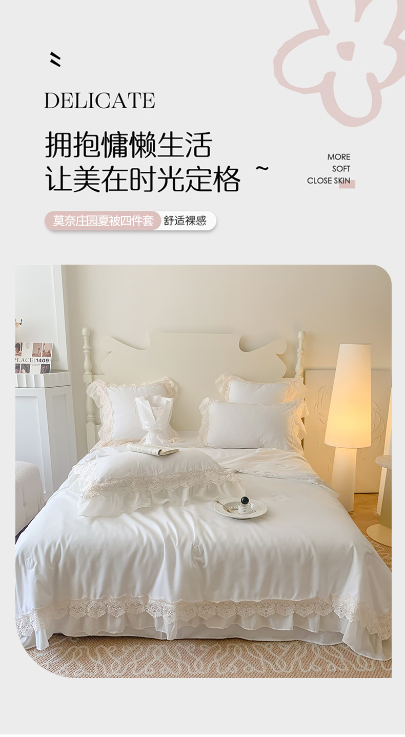 商品名称:吾欢心 2025新款亲肤舒适夏被四件套-莫奈庄园 莫奈庄园白 夏被四件套