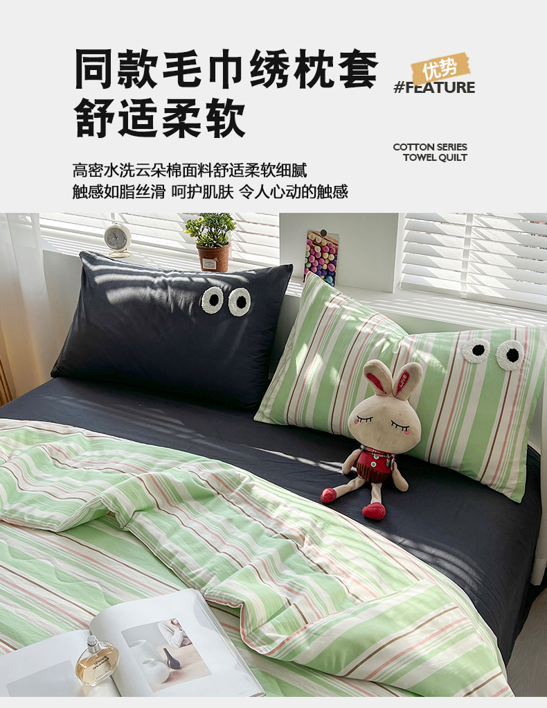 商品名称:艺菲阁家纺 2024新款多巴胺水洗云朵棉大眼睛夏被空调被夏凉被 抹茶卷
