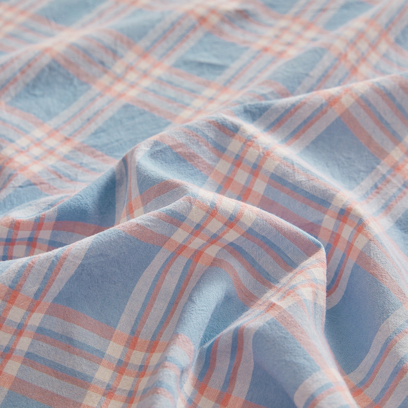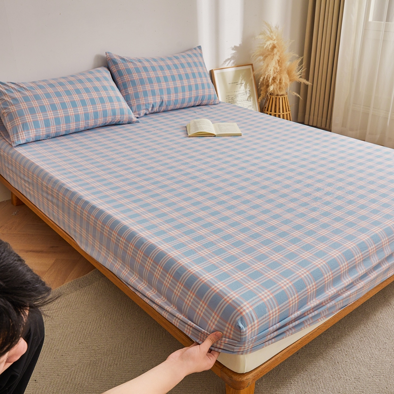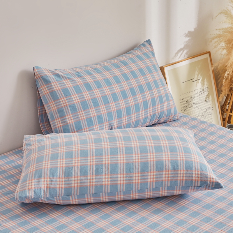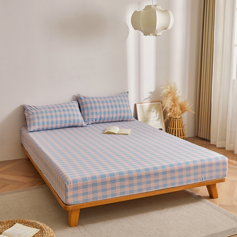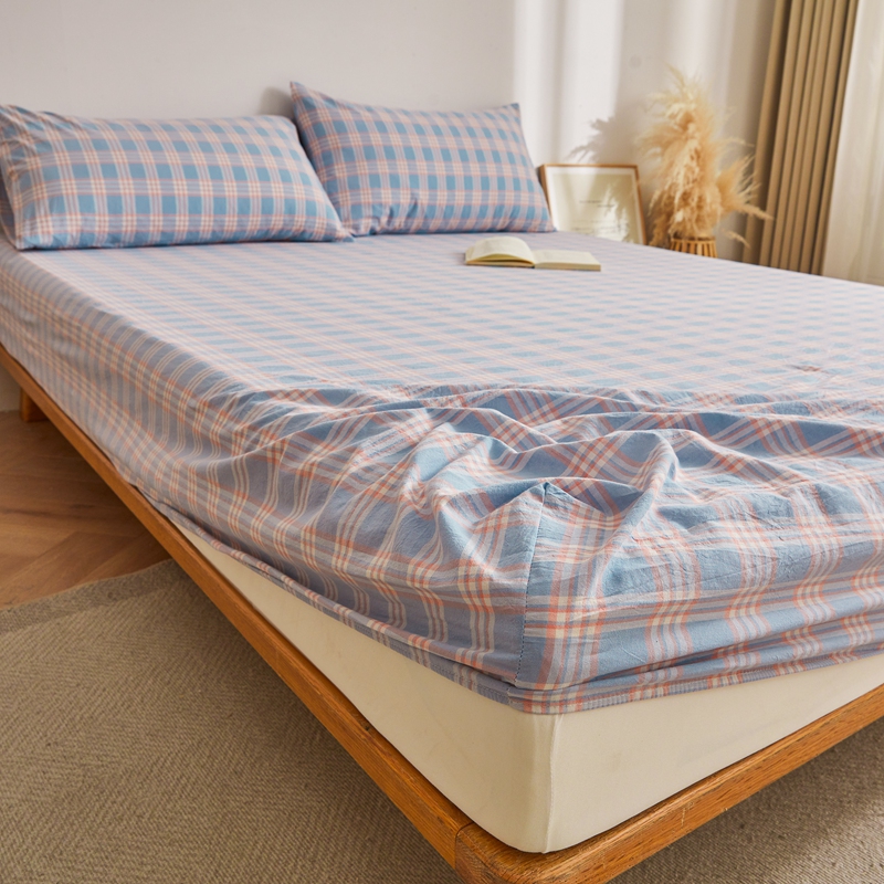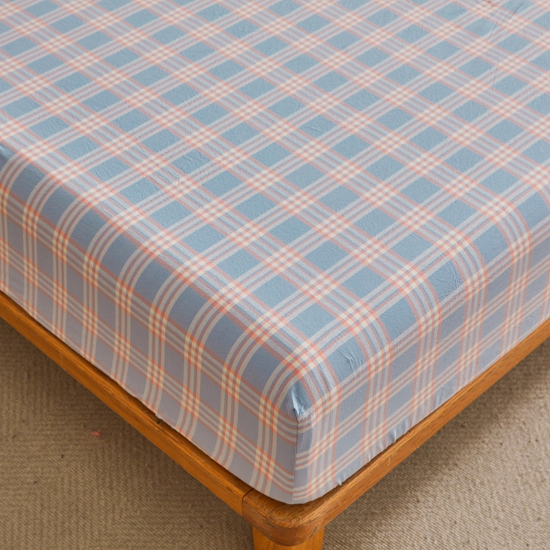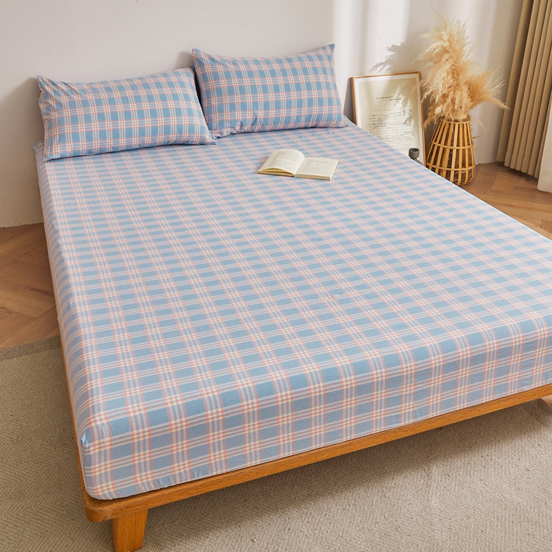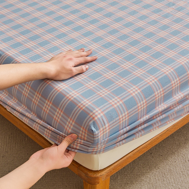 雅萱家纺 2024新款A类色织全棉水洗棉单床笠 床笠-日和-粉蓝