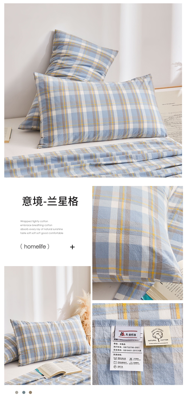 商品名称:雅萱家纺 2024新款A类色织全棉水洗棉单枕套 意境-兰星格