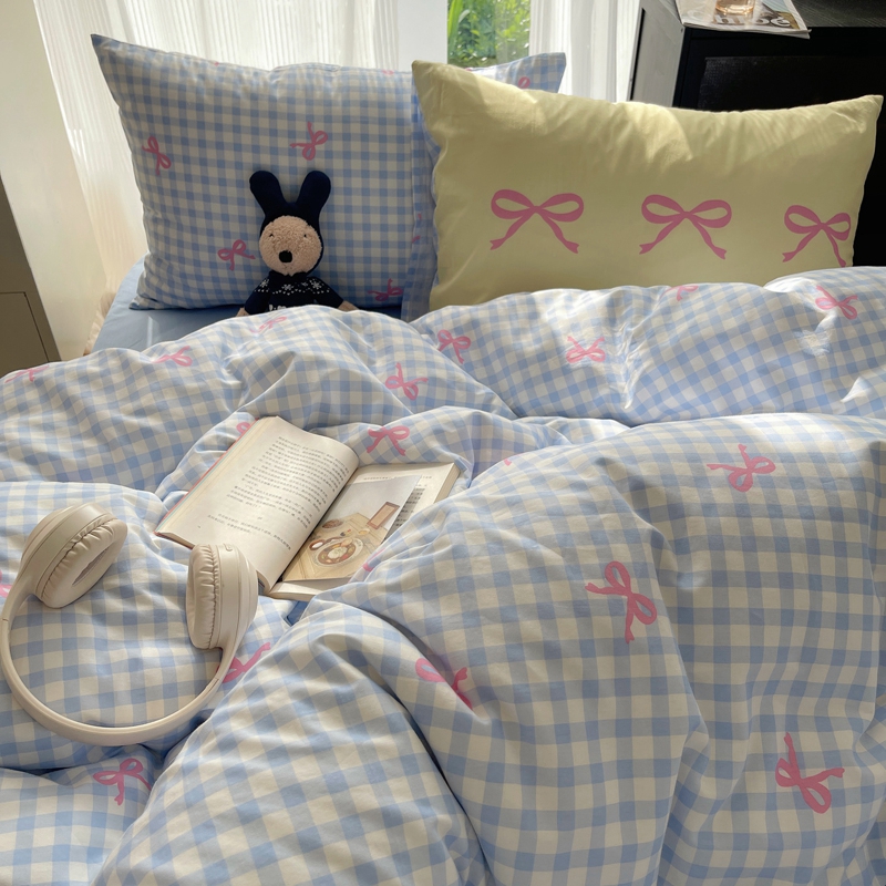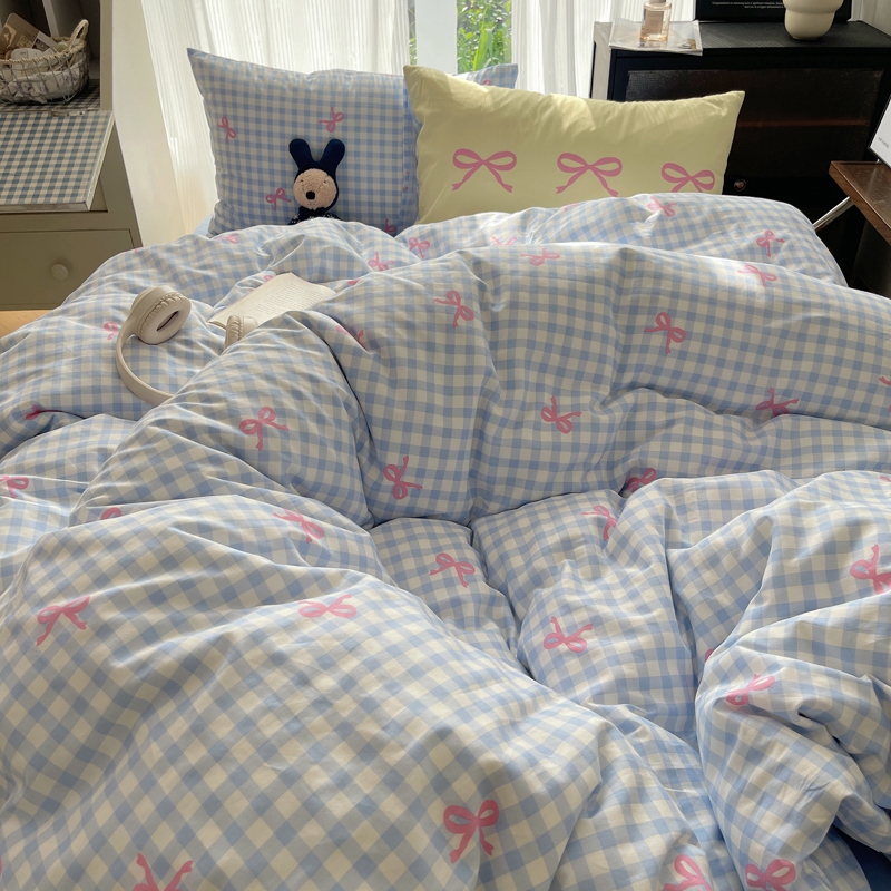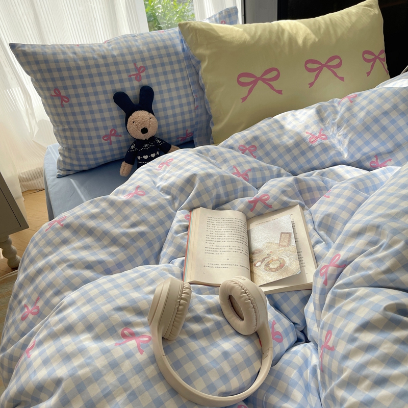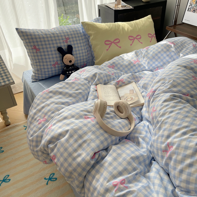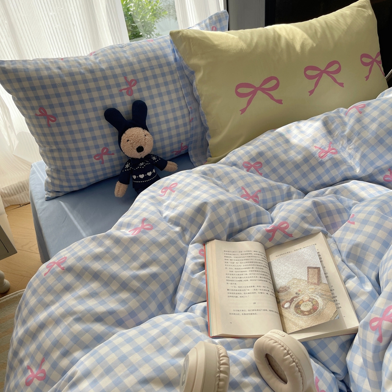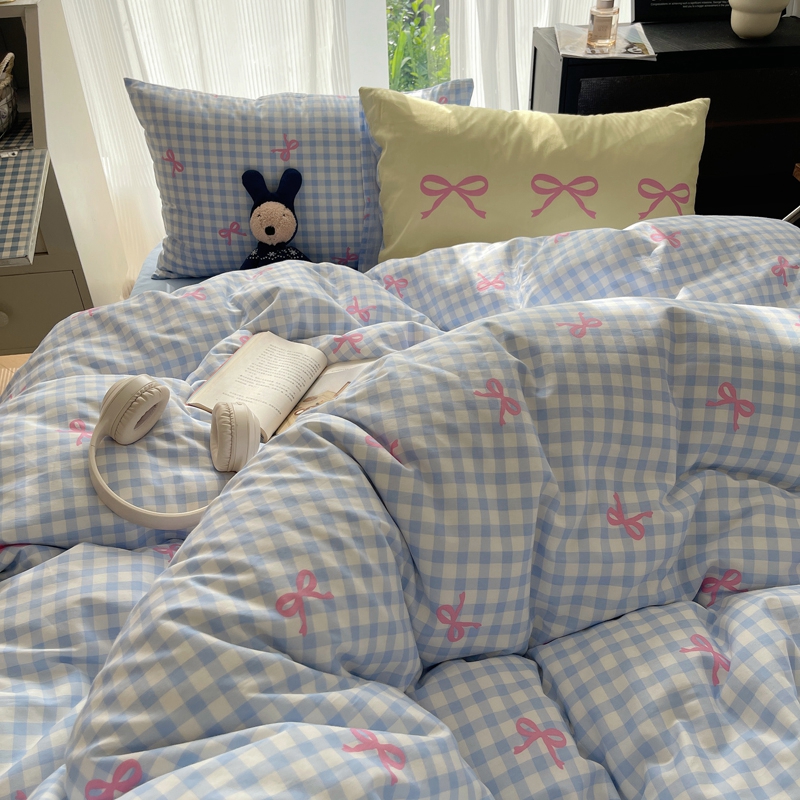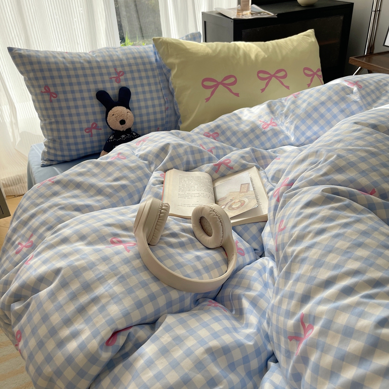 桃喜 2024新款Ins风全棉混搭系列四件套 蝴蝶结蓝