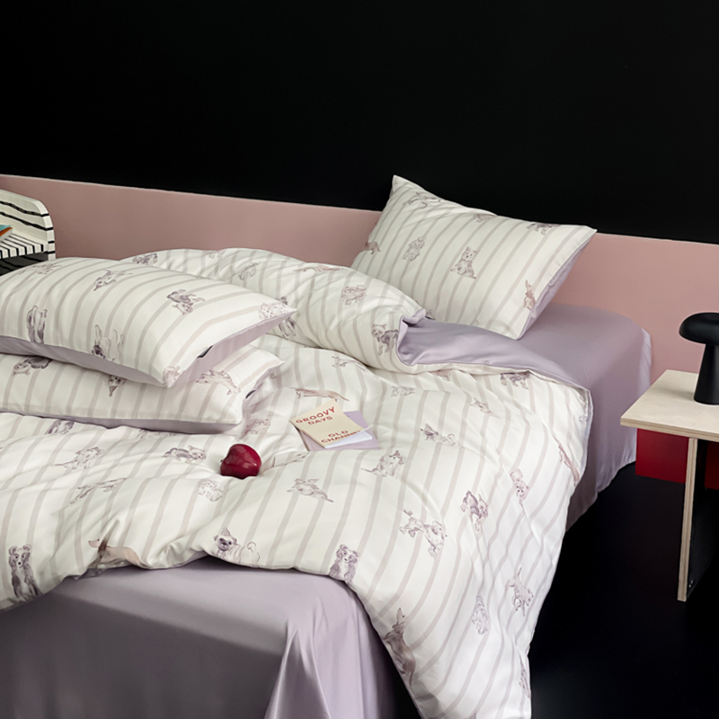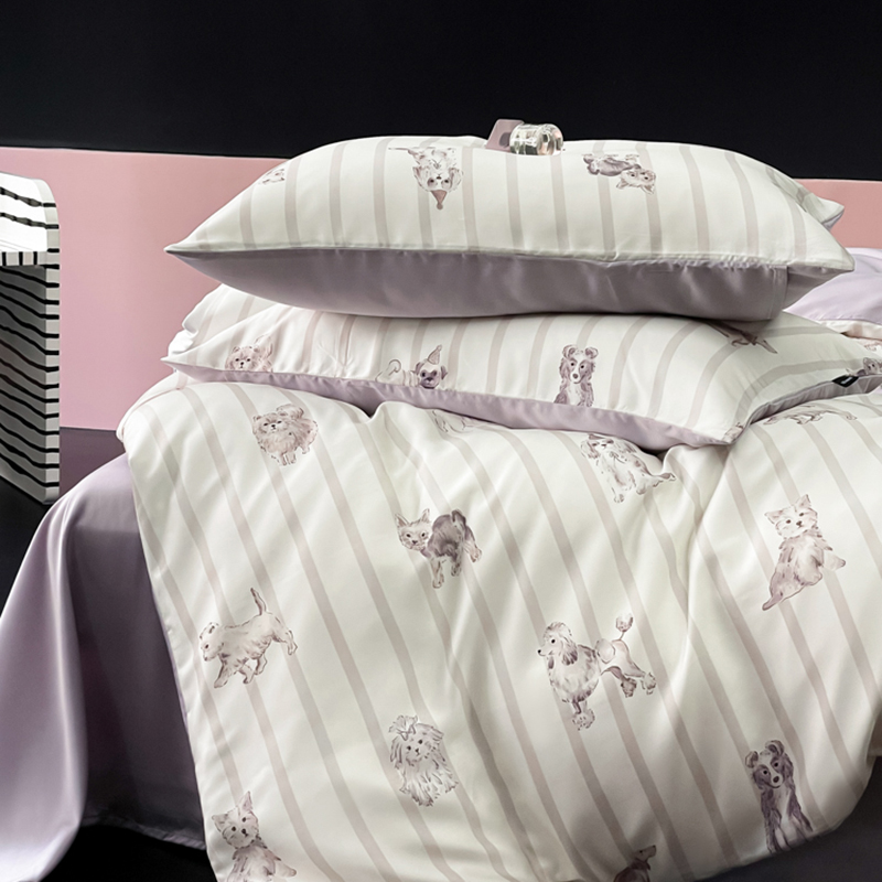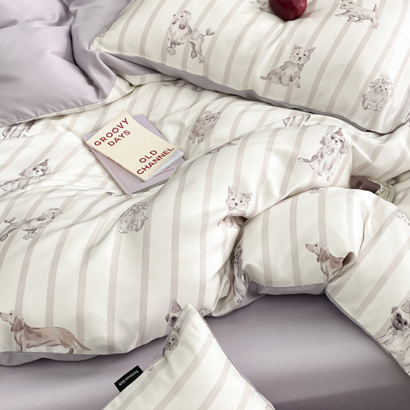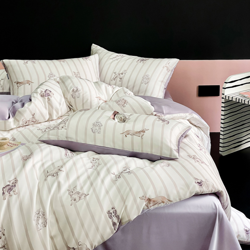 圆岛家纺2024新款60S数码印花四件套 犬芽