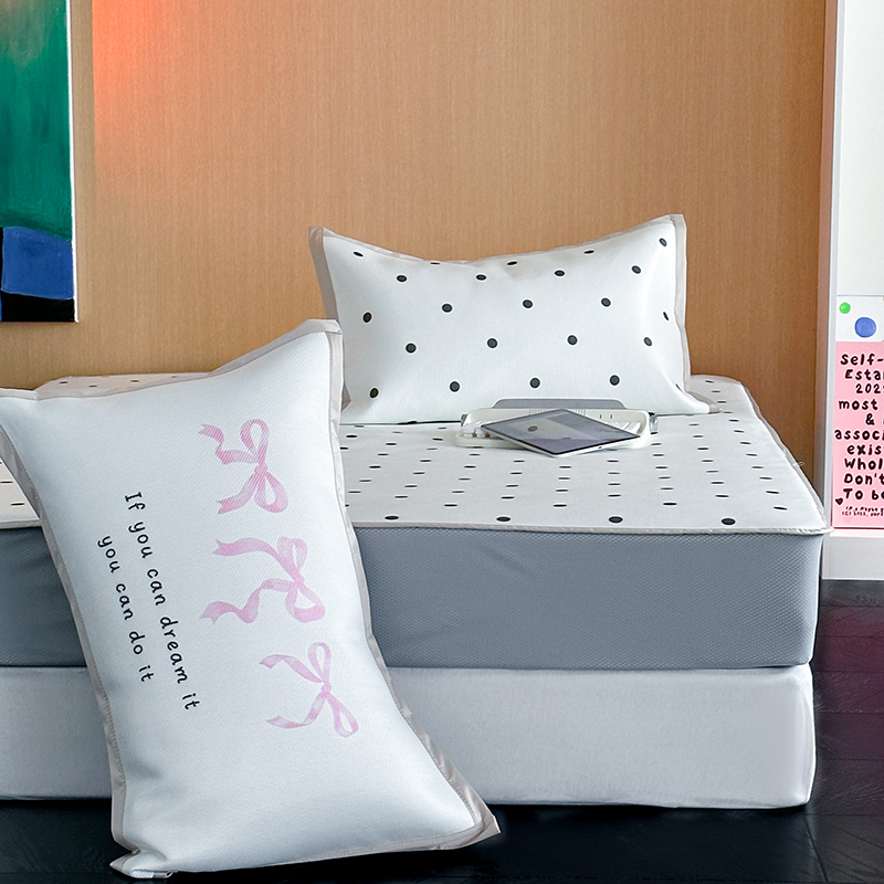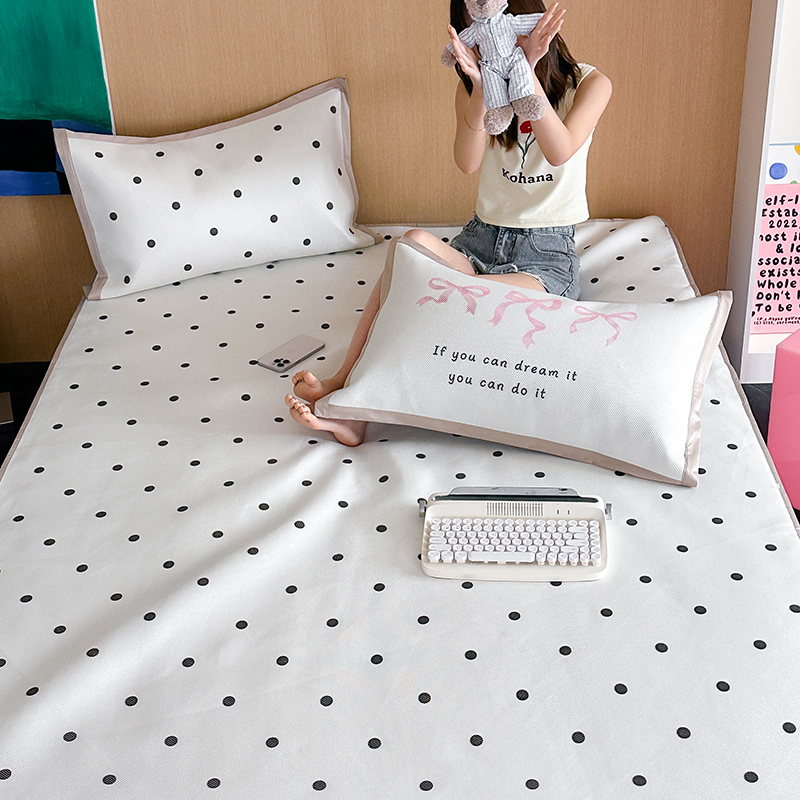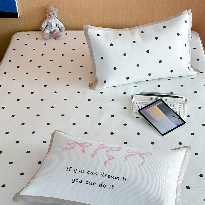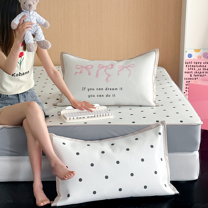 昔可家纺 2024床笠款冰藤席波点大版枕套系列 白波点
