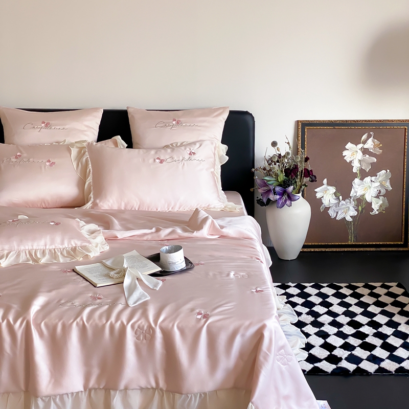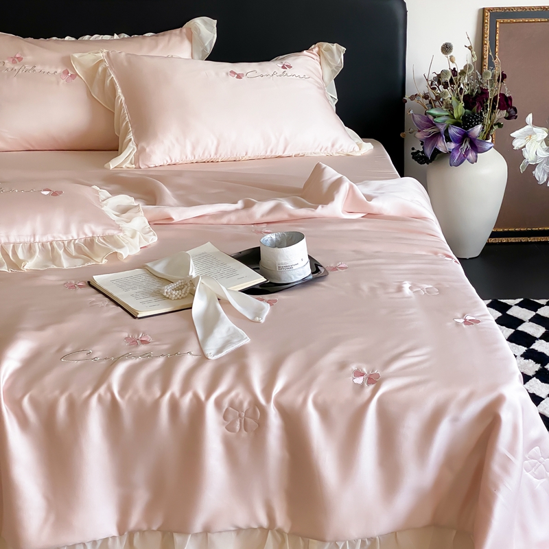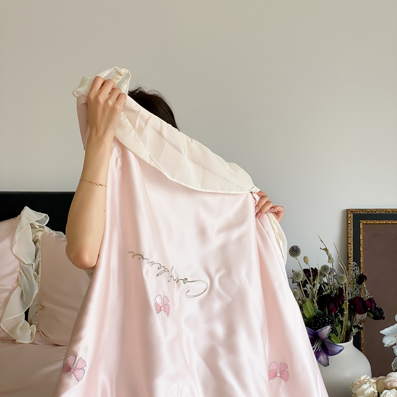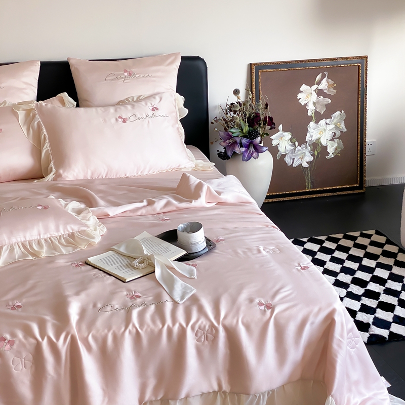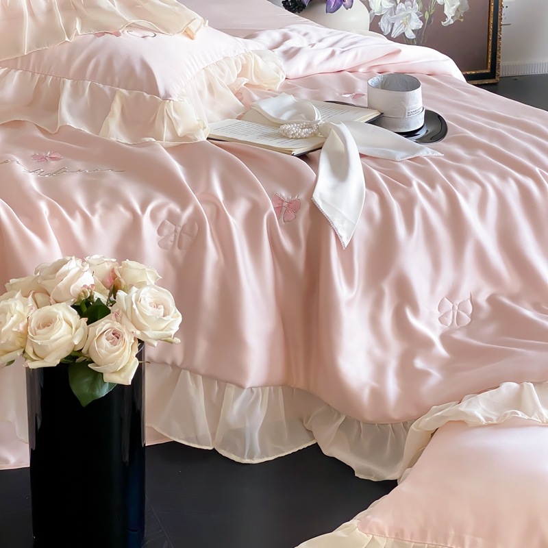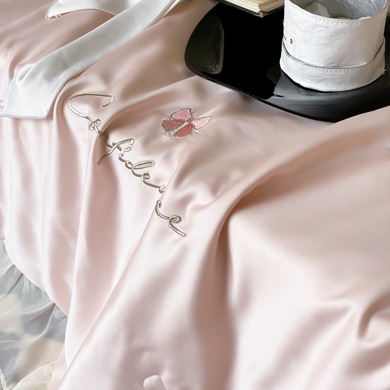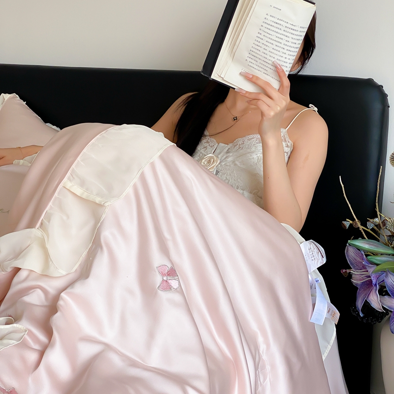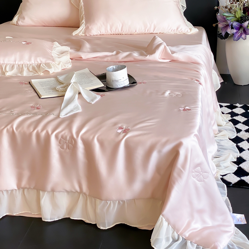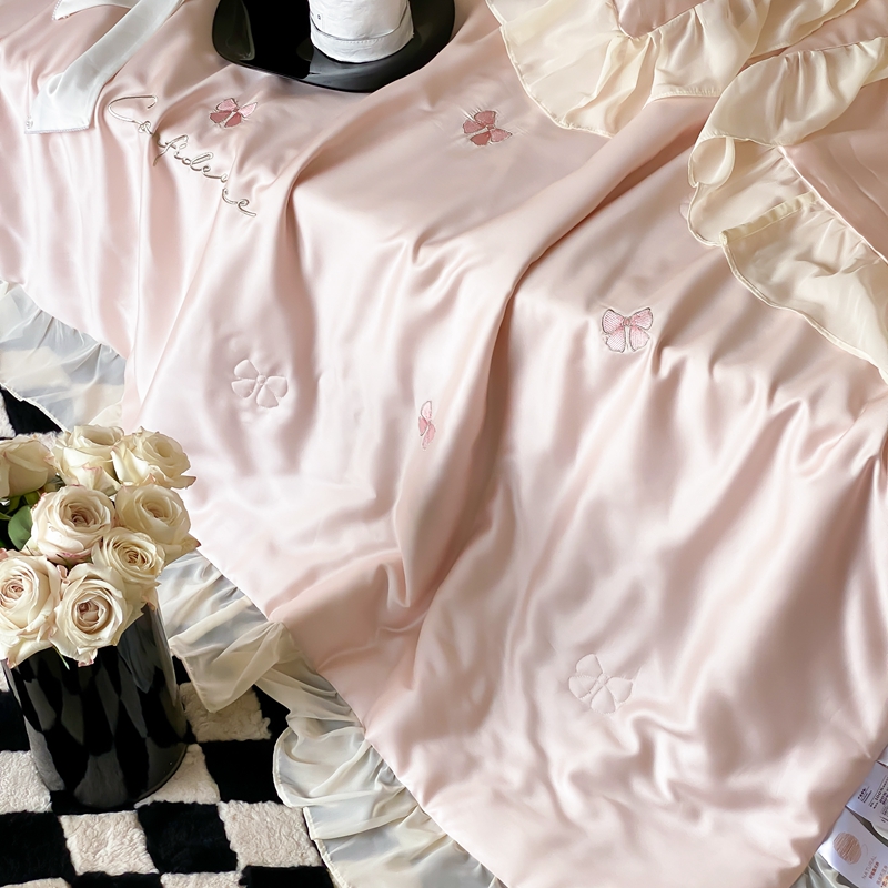 商品名称:曼布缇 2025新款100S兰精天丝蚕丝棉夏被四件套-艾丽莎 艾丽莎-甜杏粉