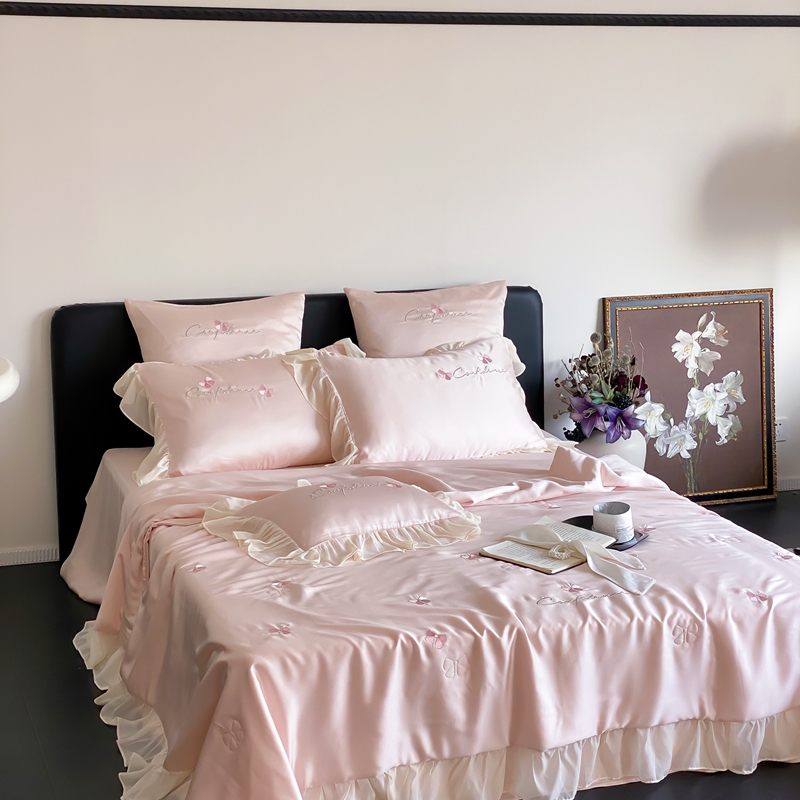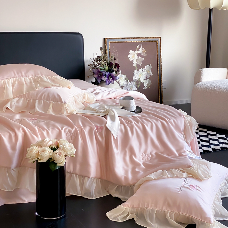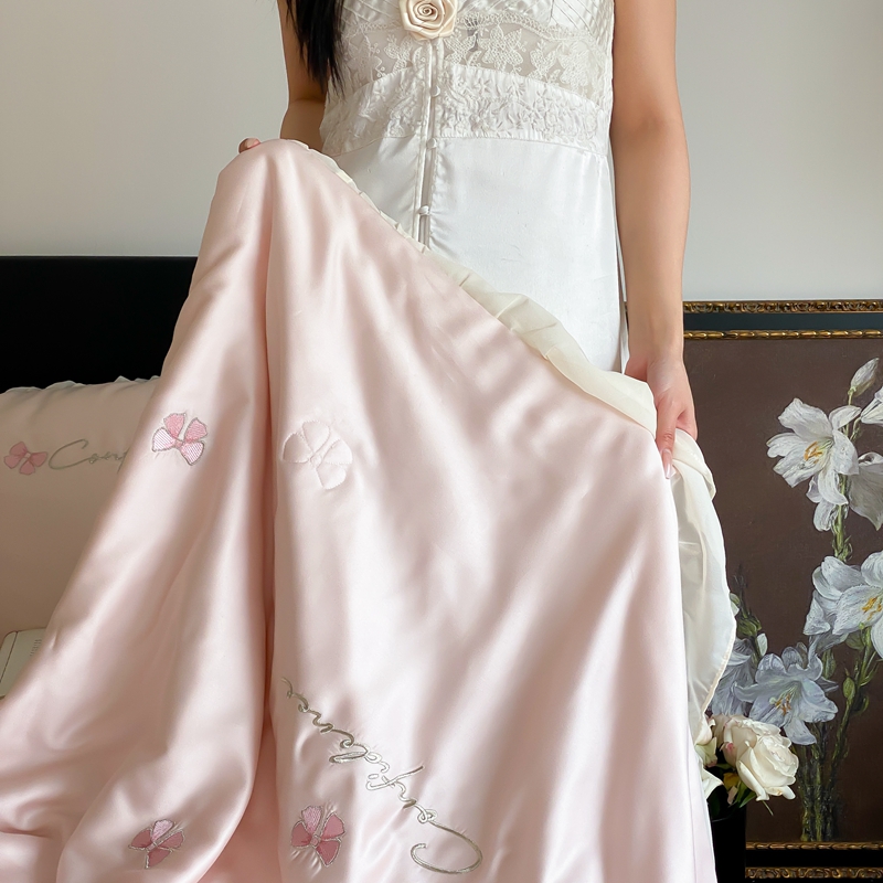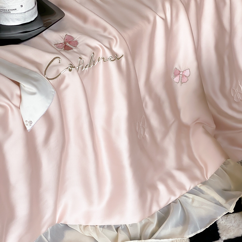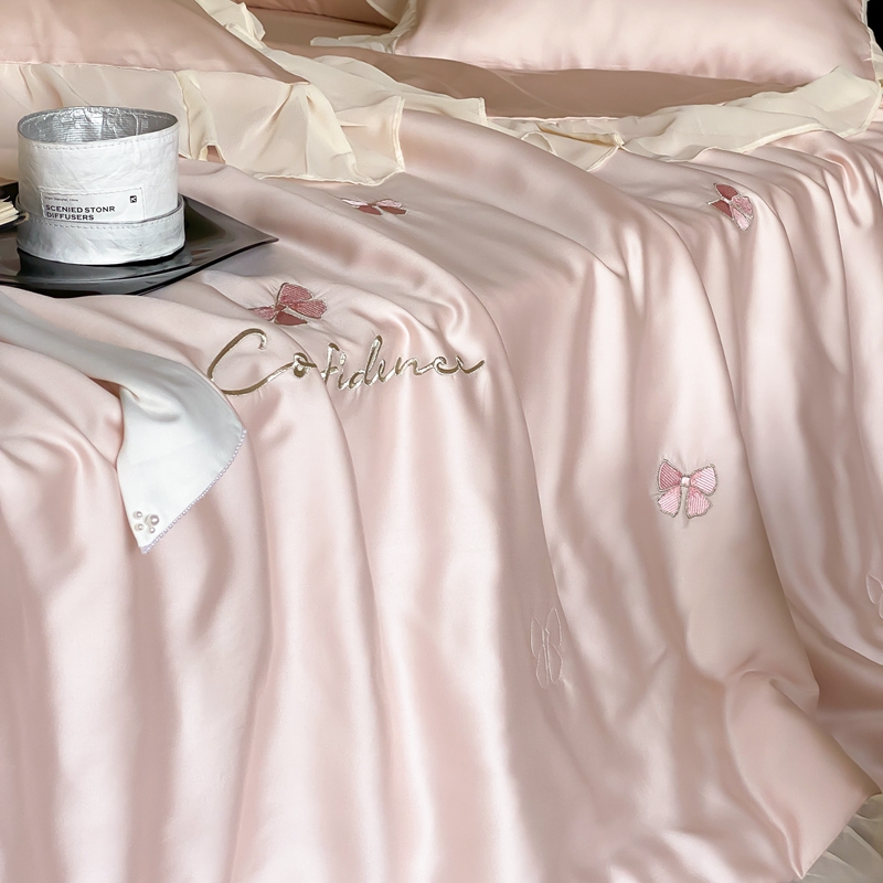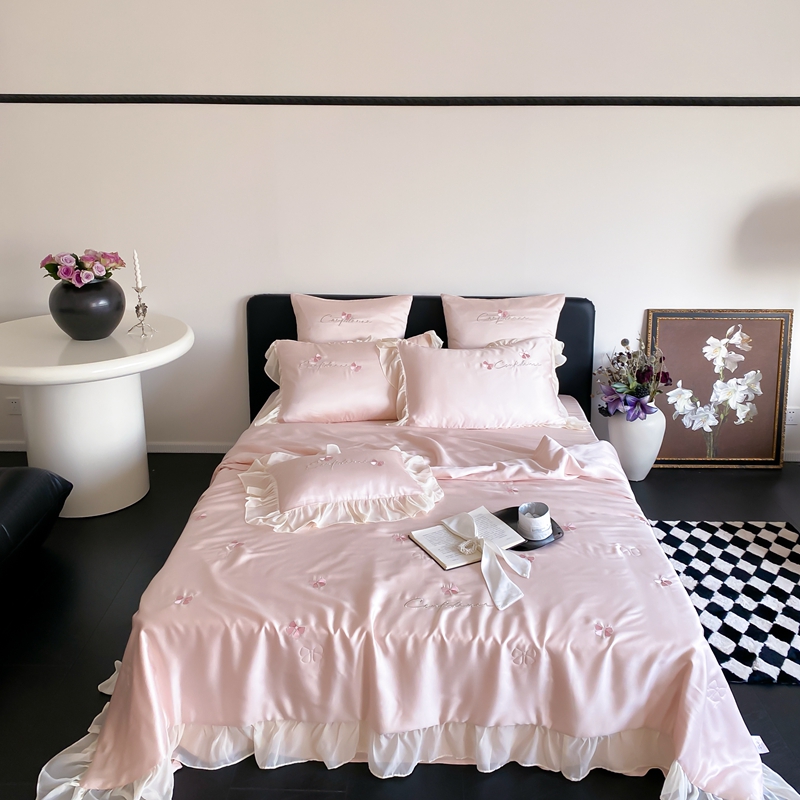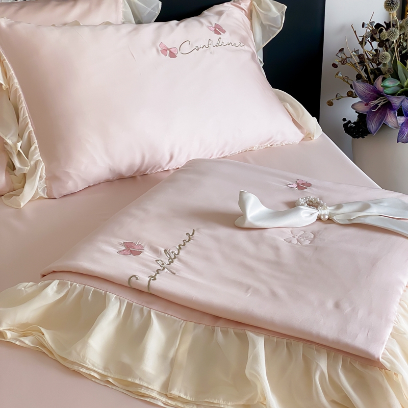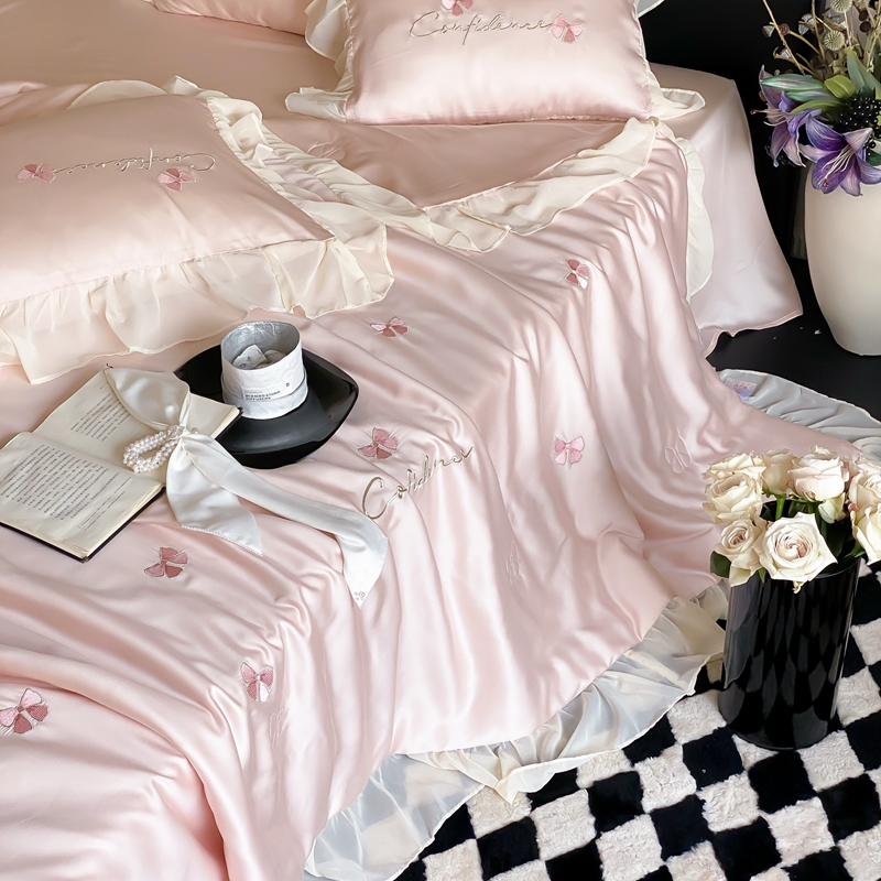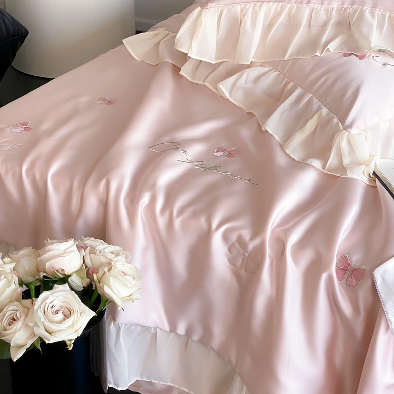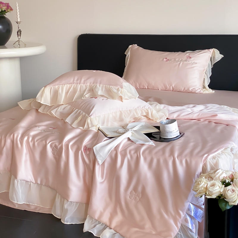 商品名称:曼布缇 2025新款100S兰精天丝蚕丝棉夏被四件套-艾丽莎 艾丽莎-甜杏粉