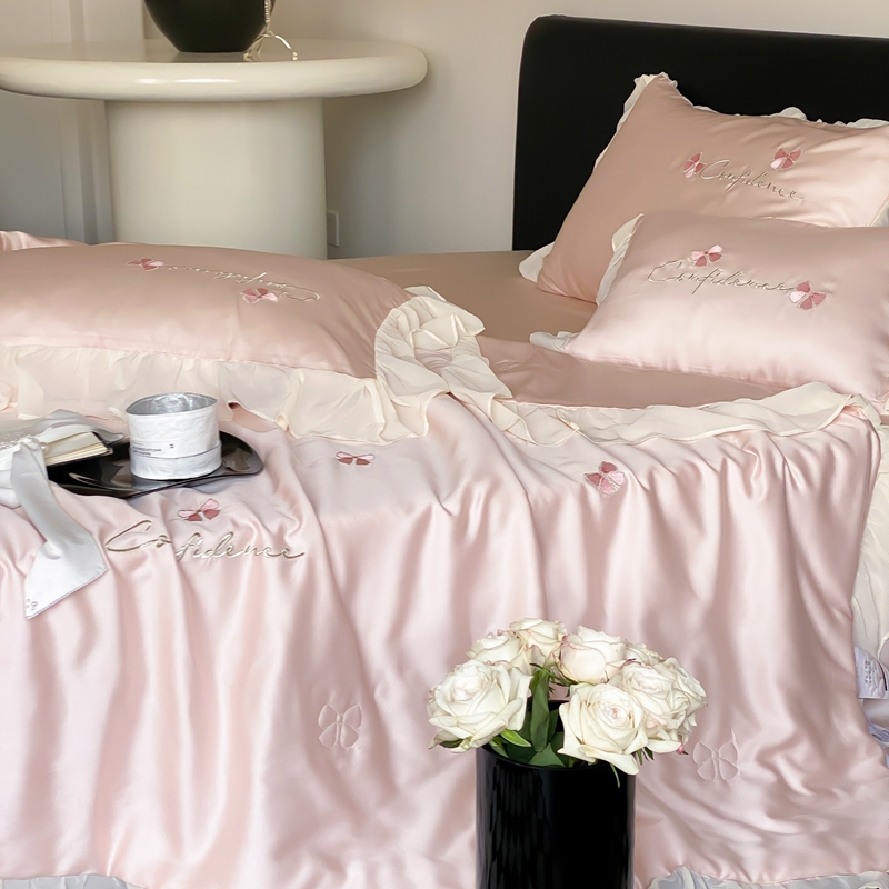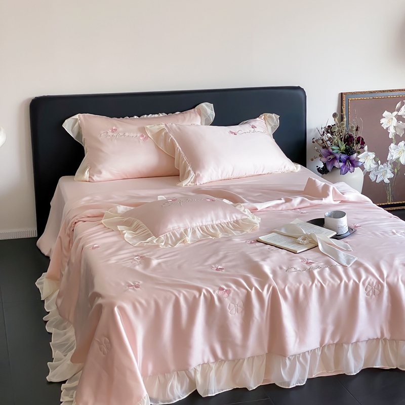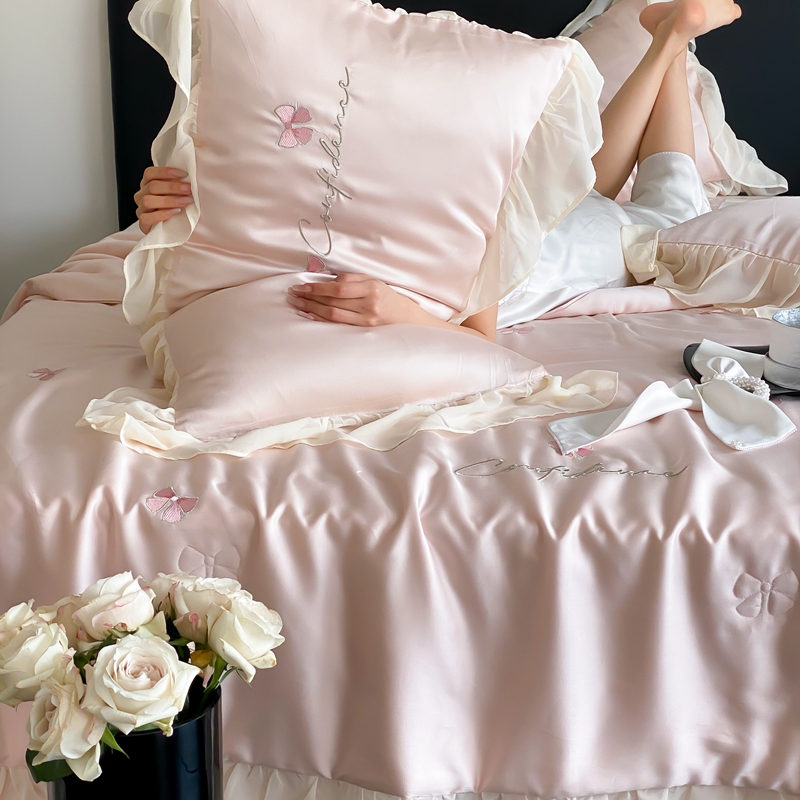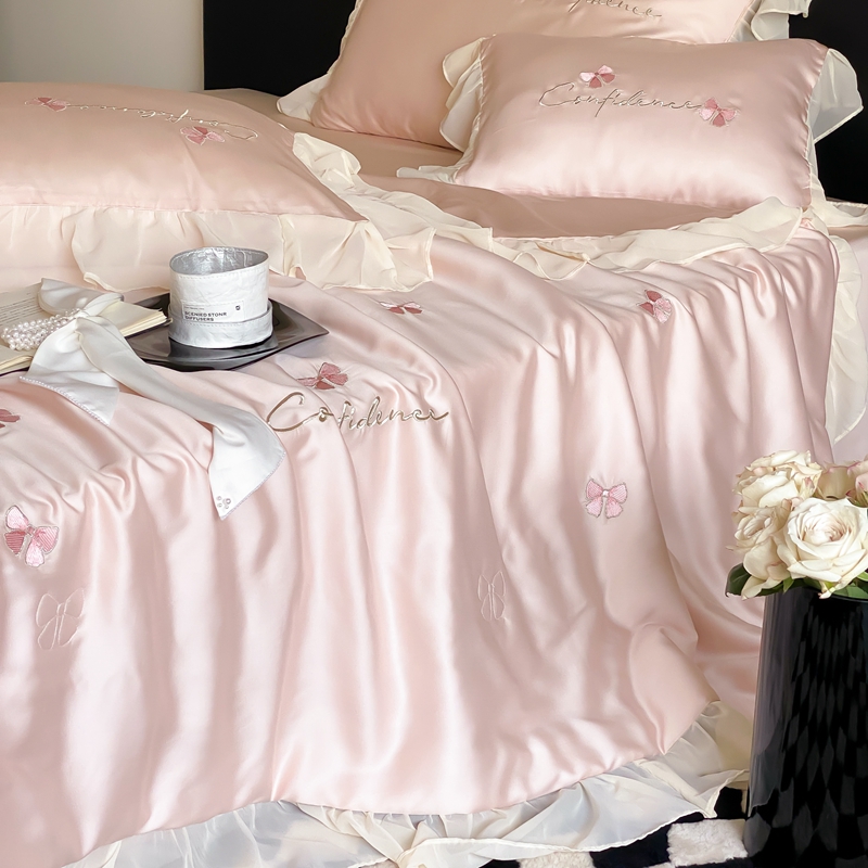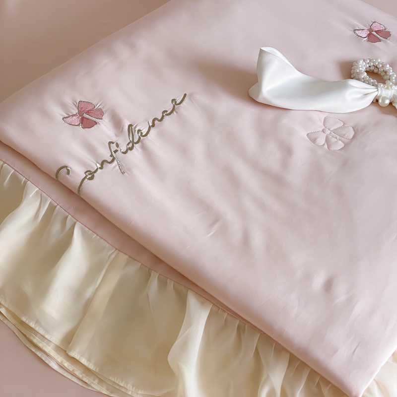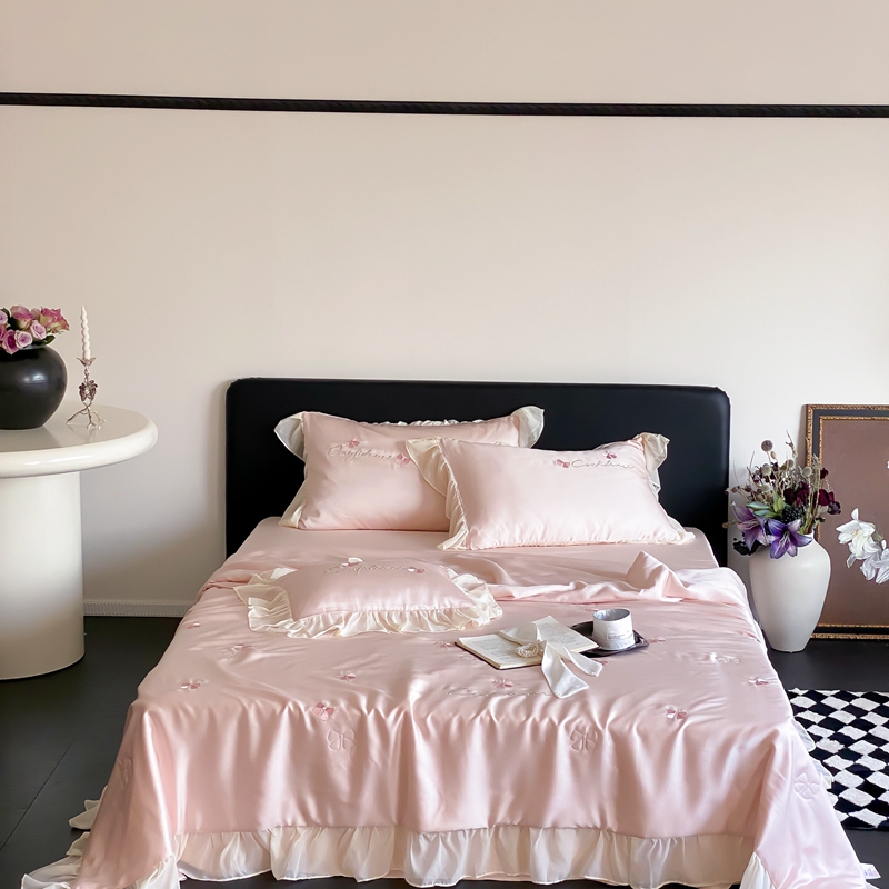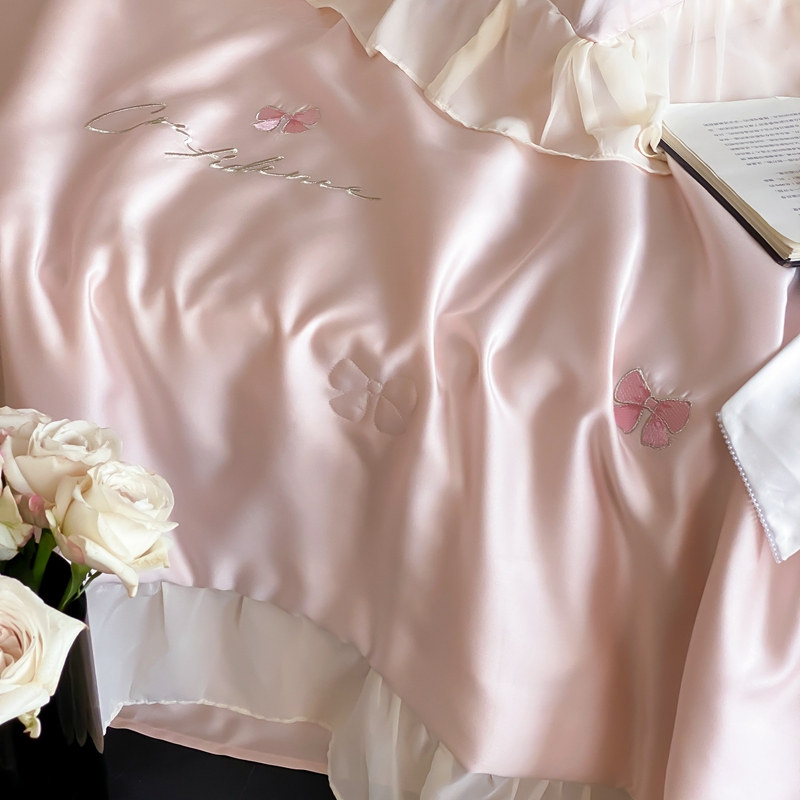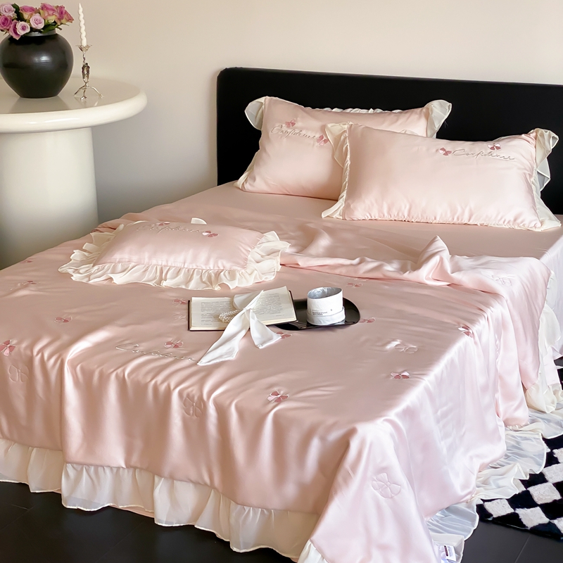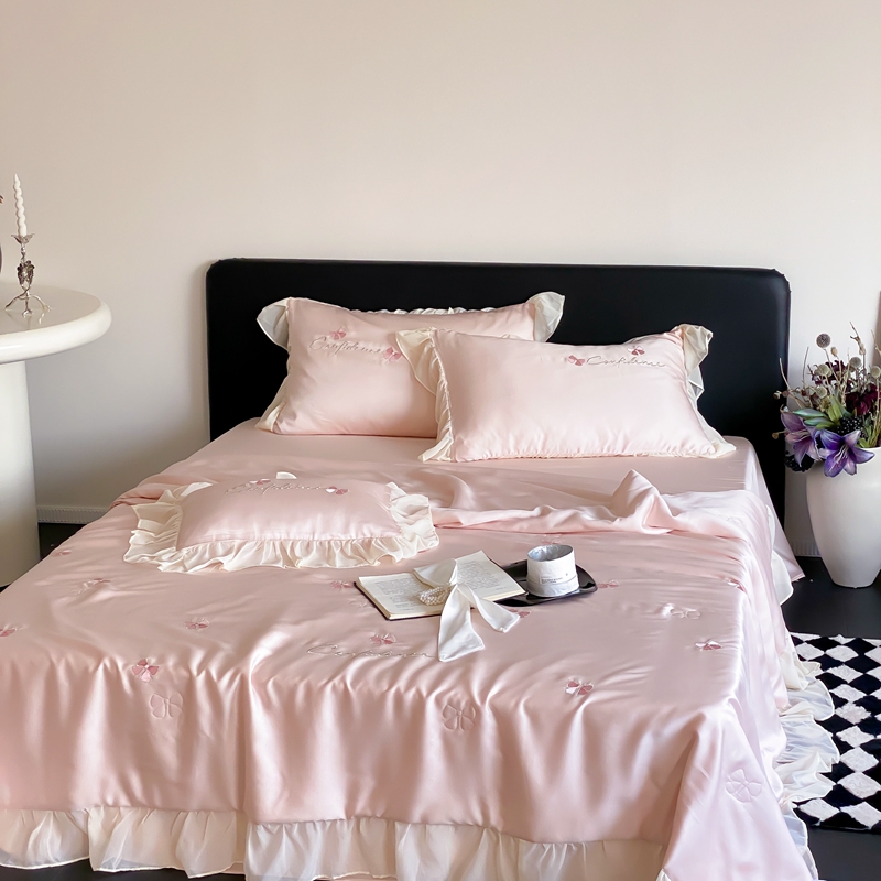 商品名称:曼布缇 2025新款100S兰精天丝蚕丝棉夏被四件套-艾丽莎 艾丽莎-甜杏粉