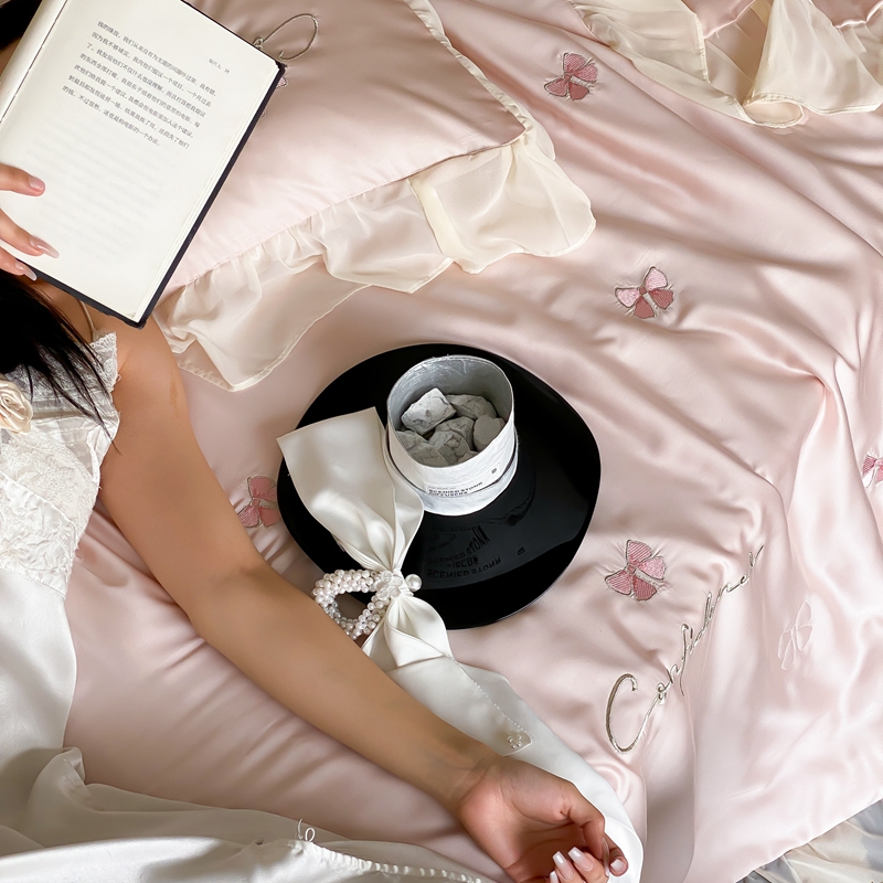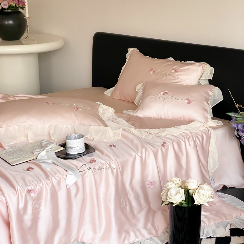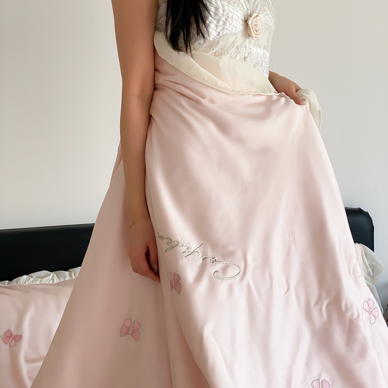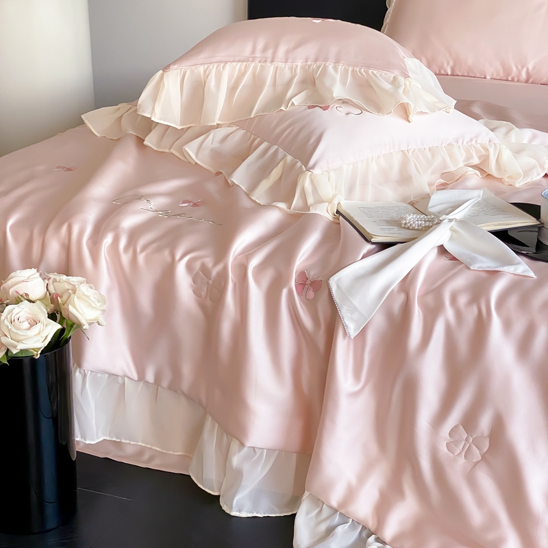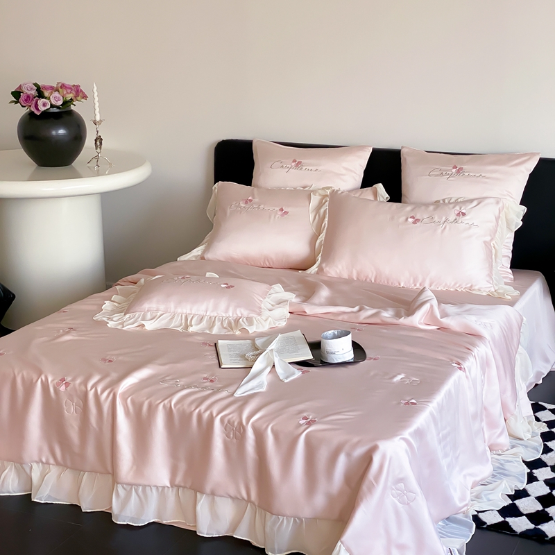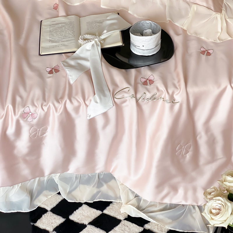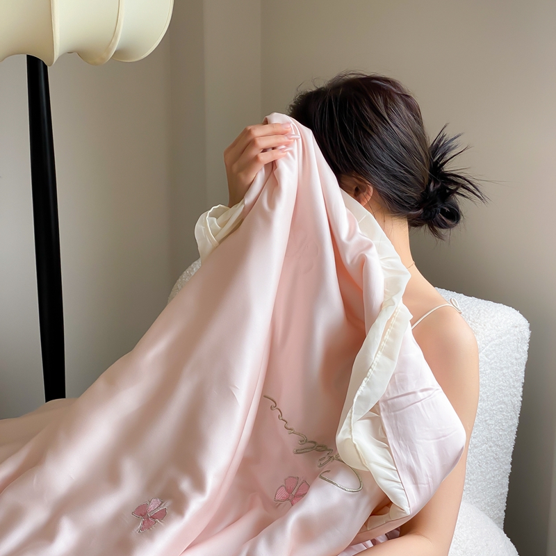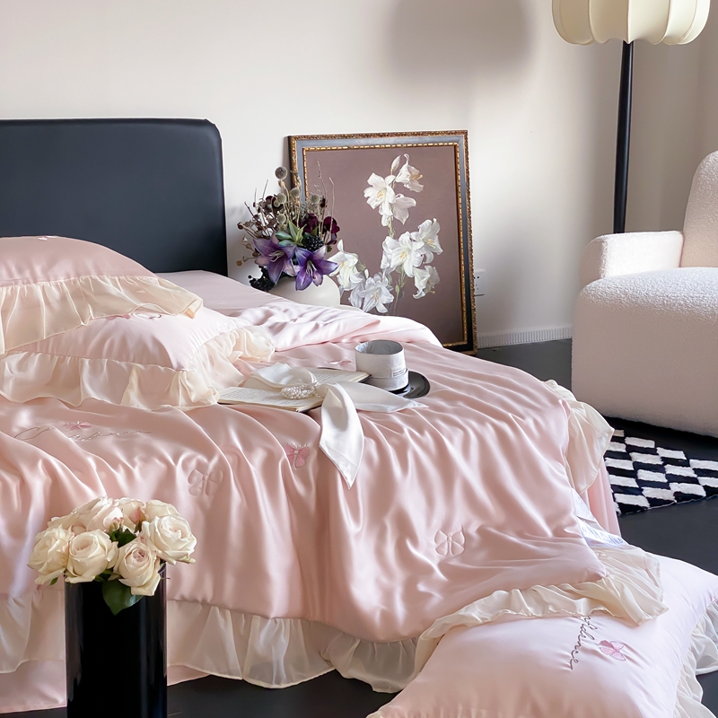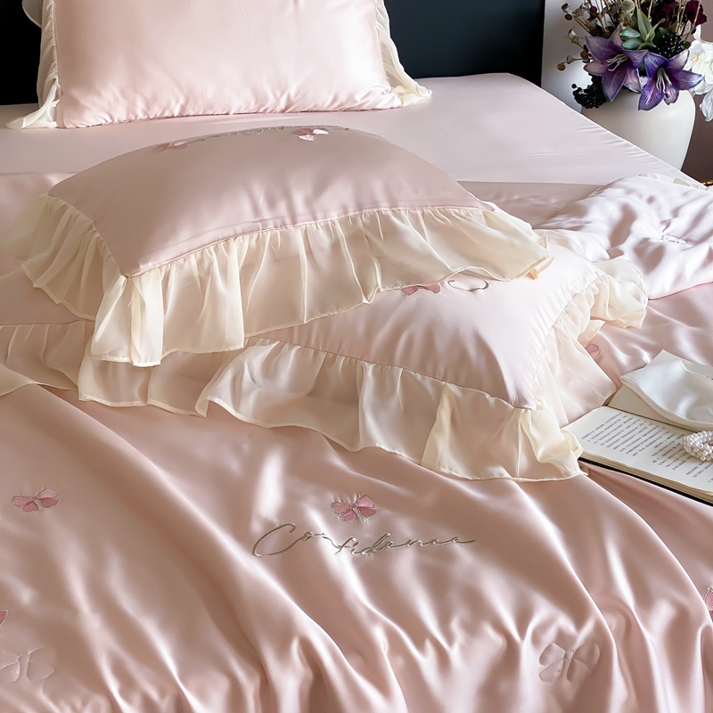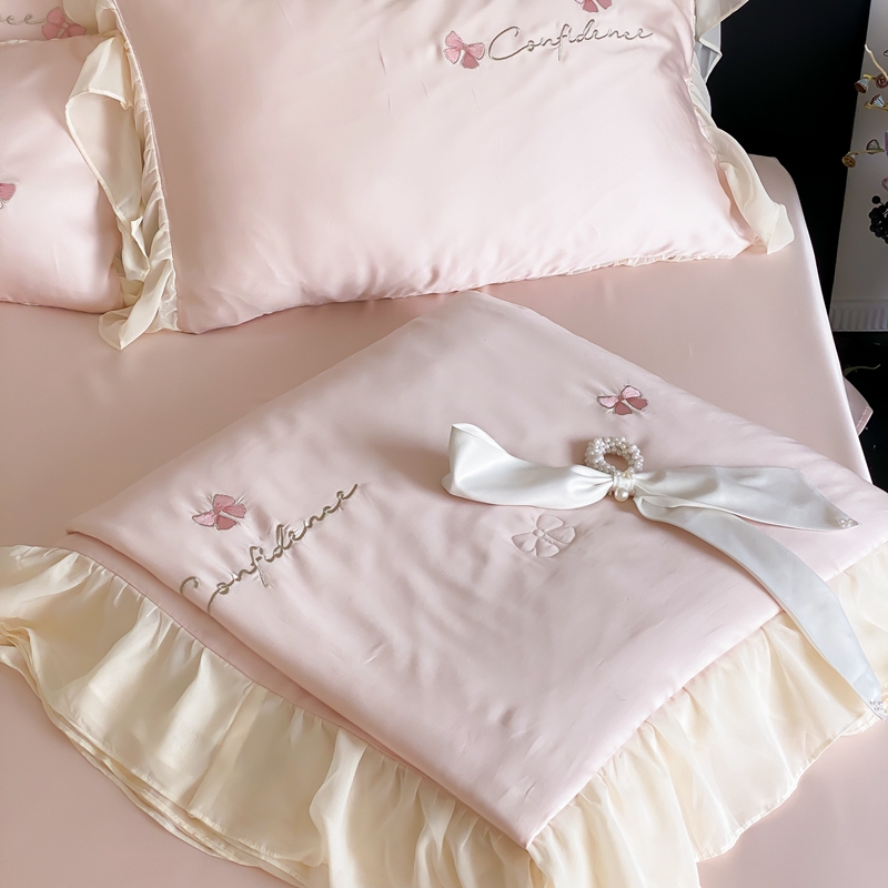 商品名称:曼布缇 2025新款100S兰精天丝蚕丝棉夏被四件套-艾丽莎 艾丽莎-甜杏粉