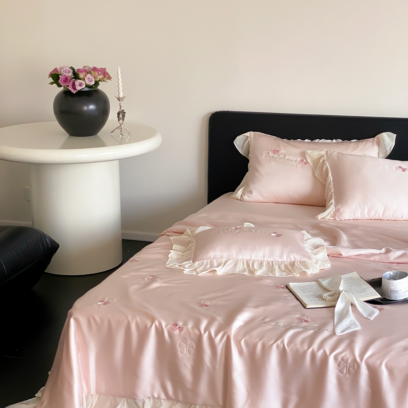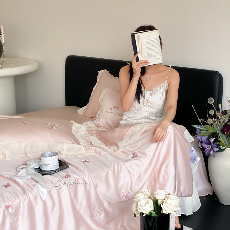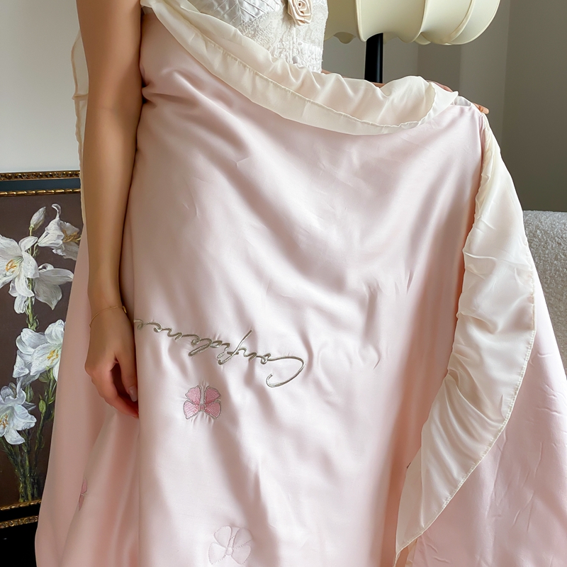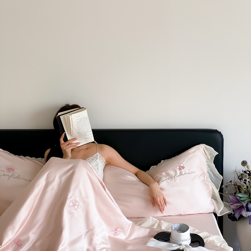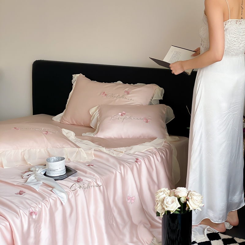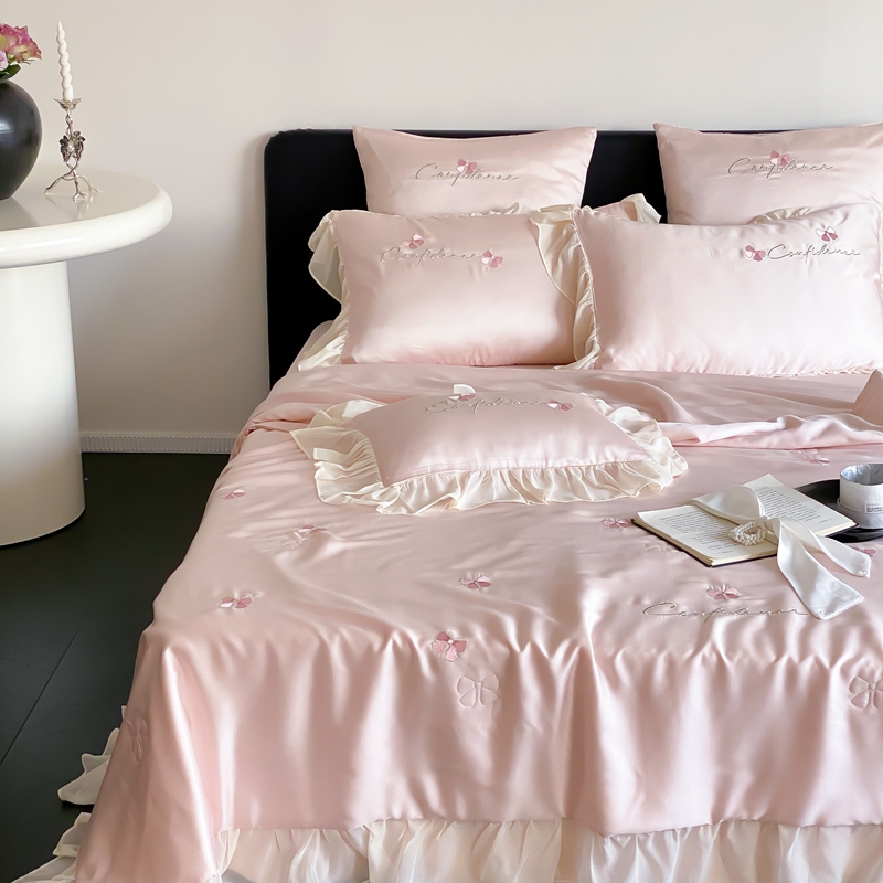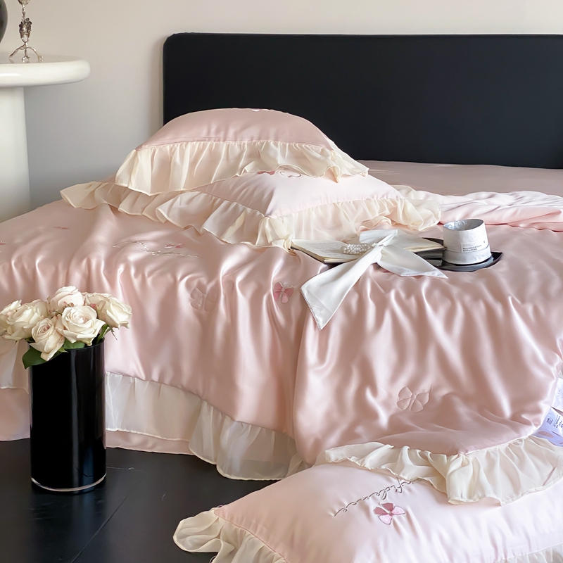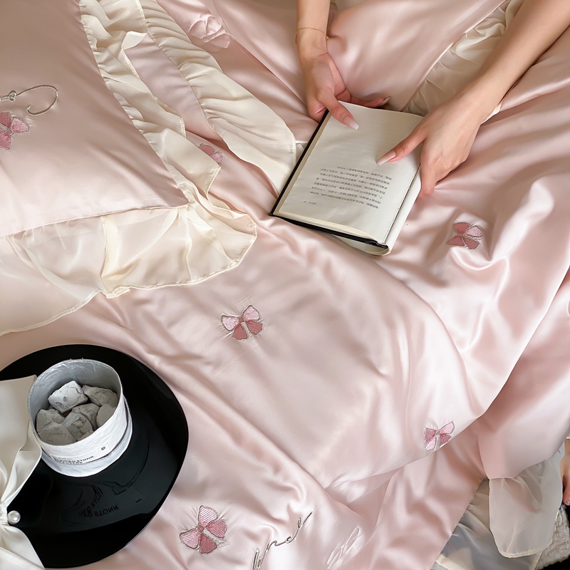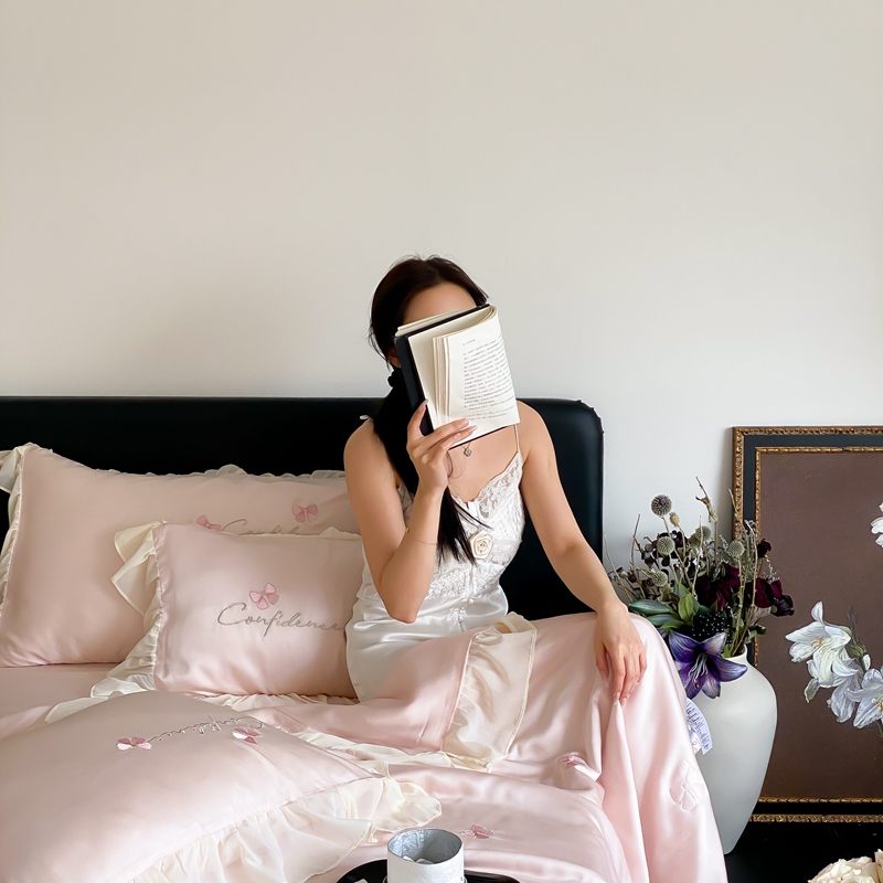 商品名称:曼布缇 2025新款100S兰精天丝蚕丝棉夏被四件套-艾丽莎 艾丽莎-甜杏粉