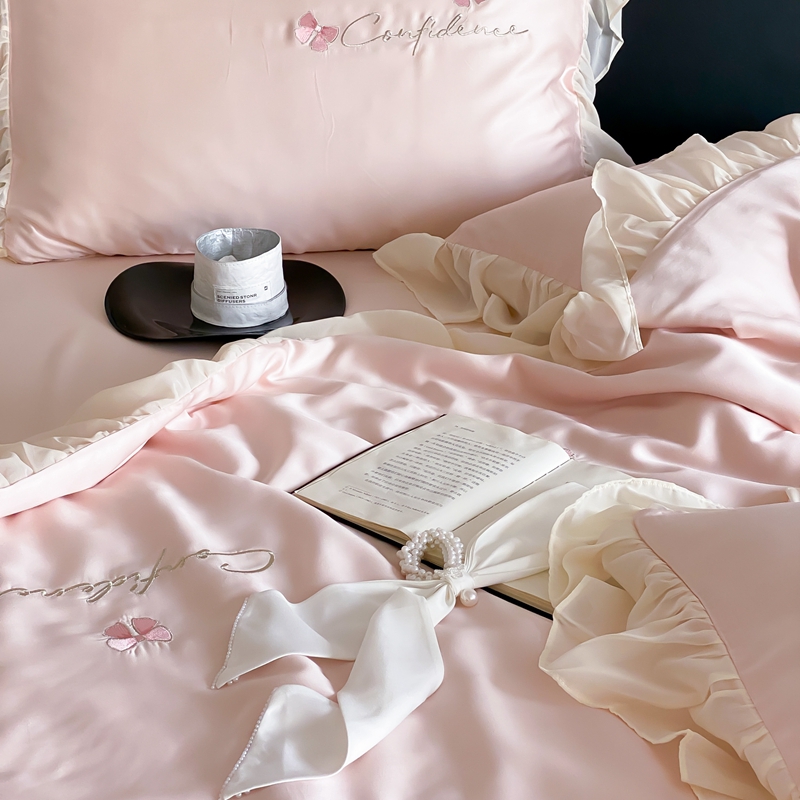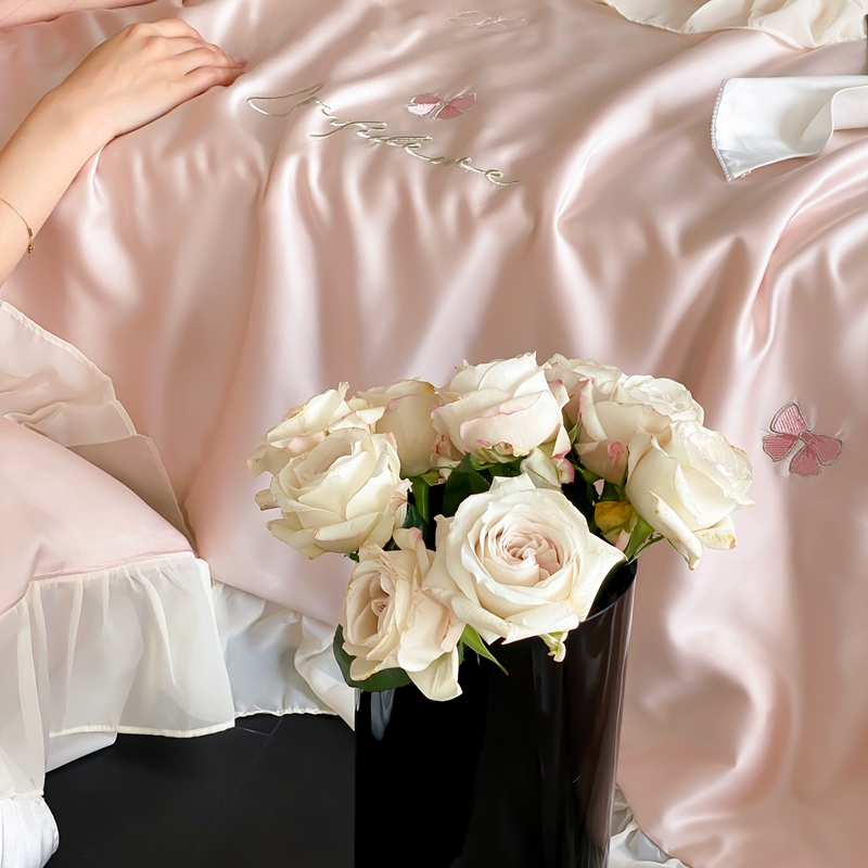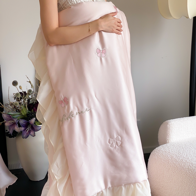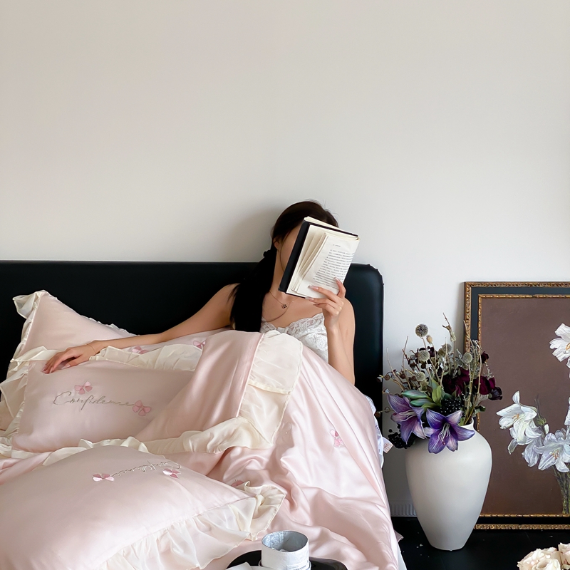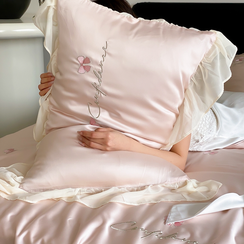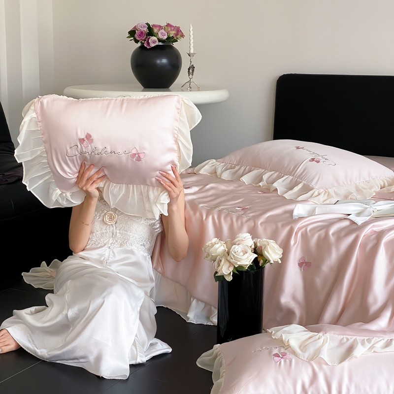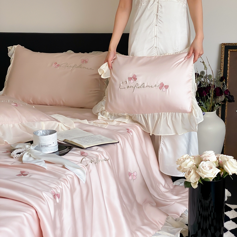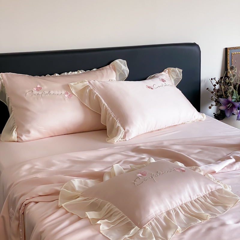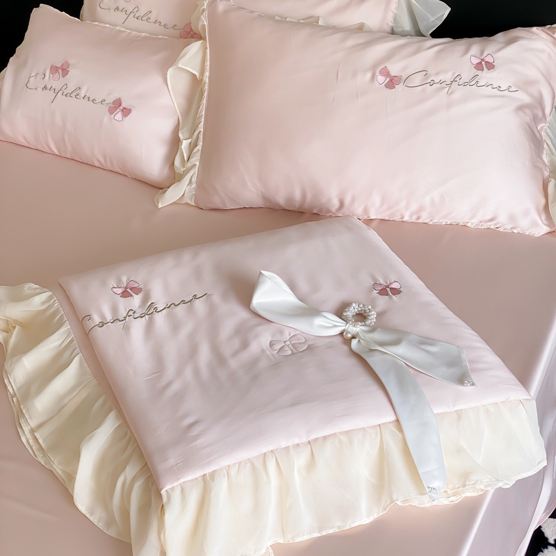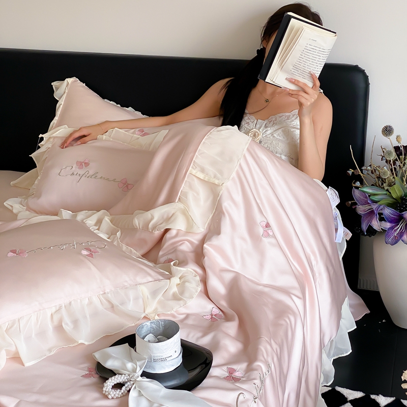 商品名称:曼布缇 2025新款100S兰精天丝蚕丝棉夏被四件套-艾丽莎 艾丽莎-甜杏粉