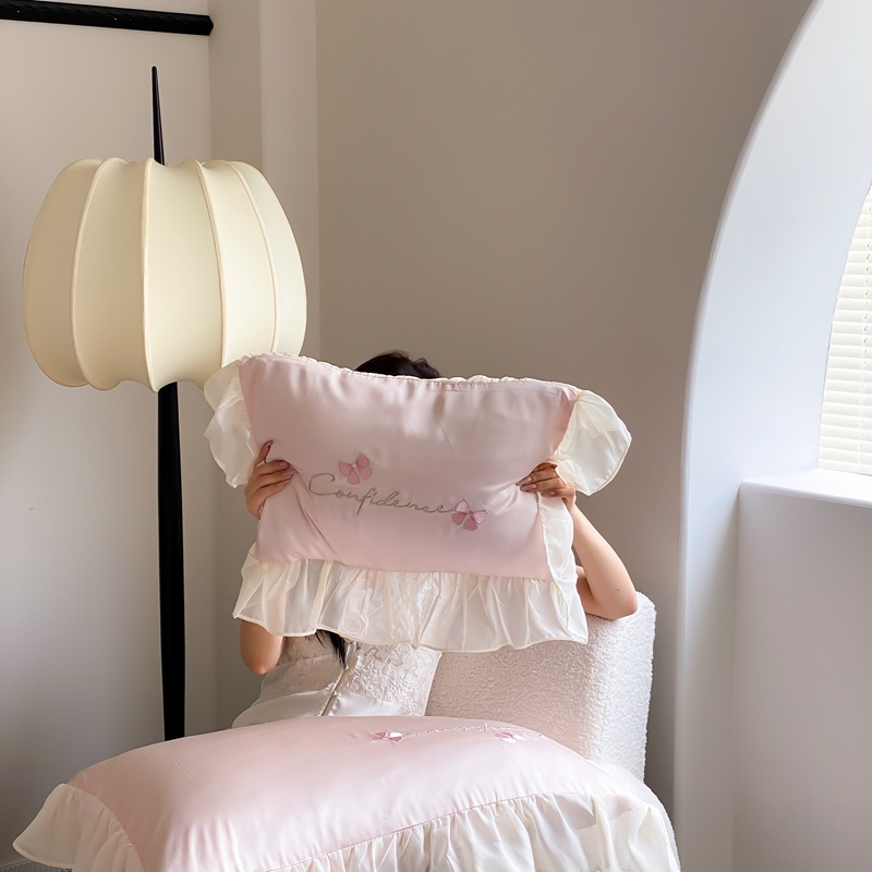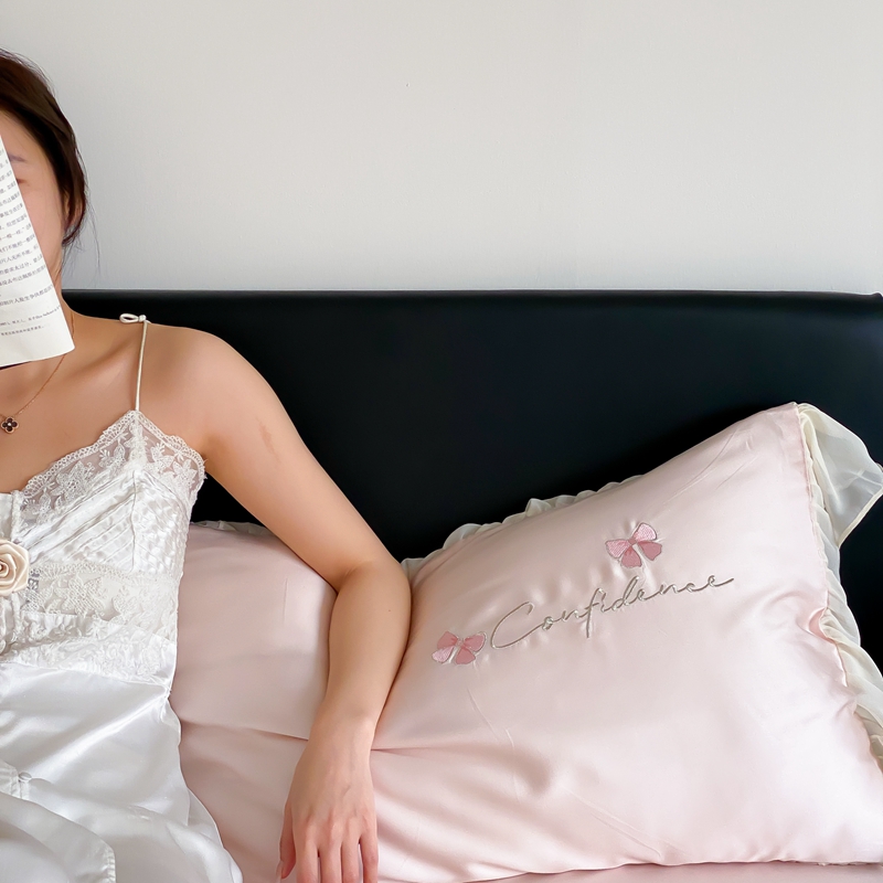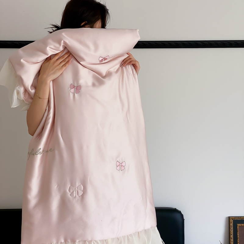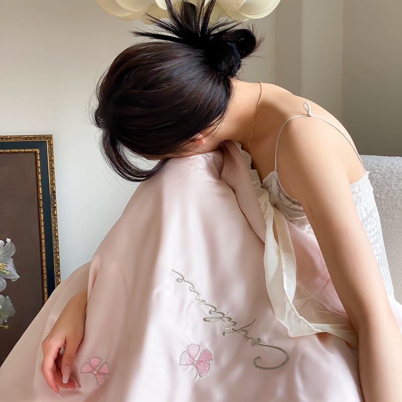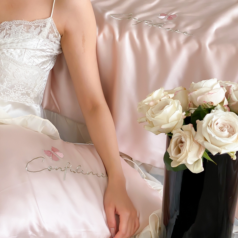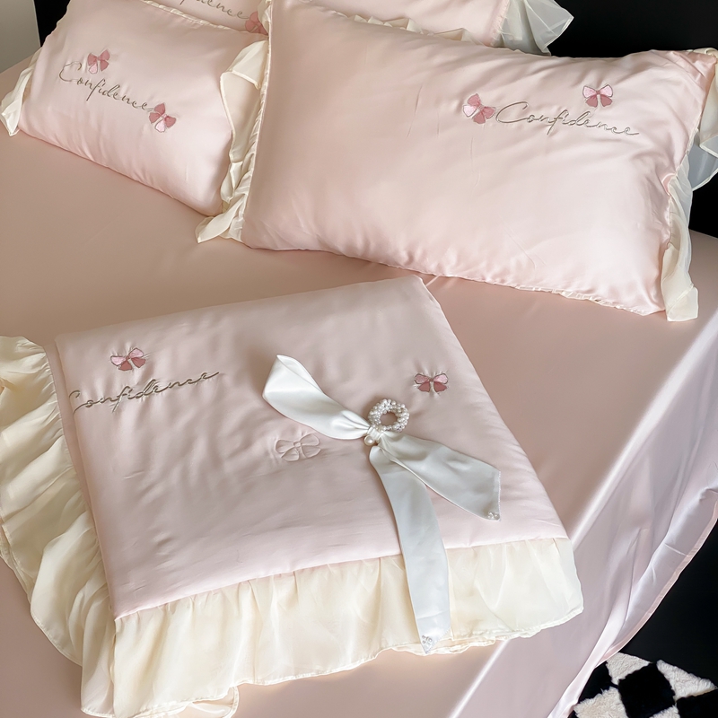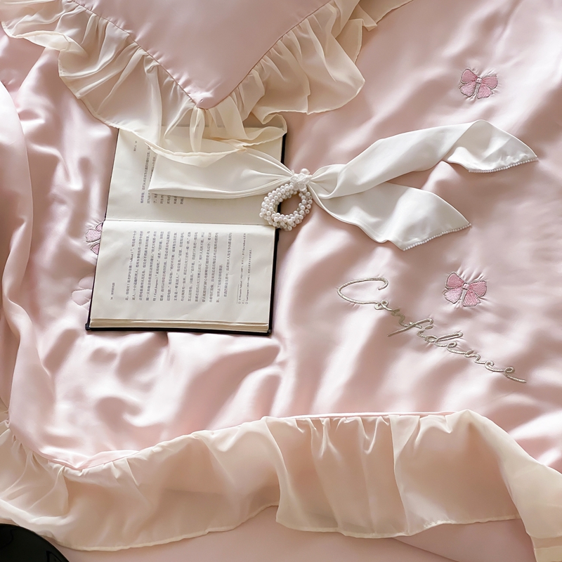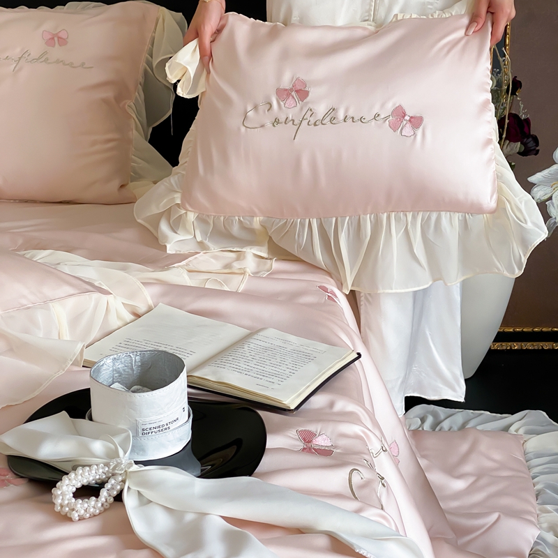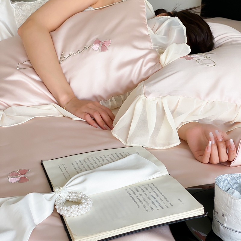 商品名称:曼布缇 2025新款100S兰精天丝蚕丝棉夏被四件套-艾丽莎 艾丽莎-甜杏粉