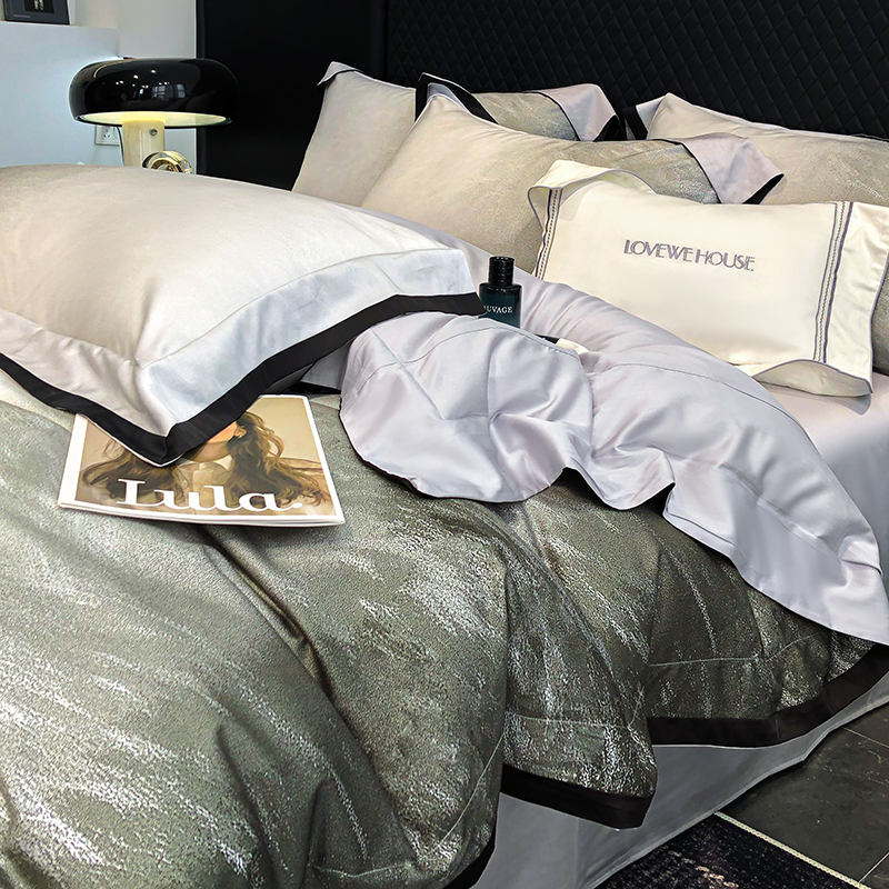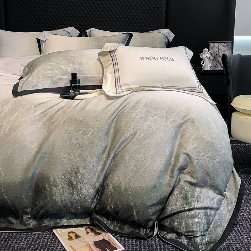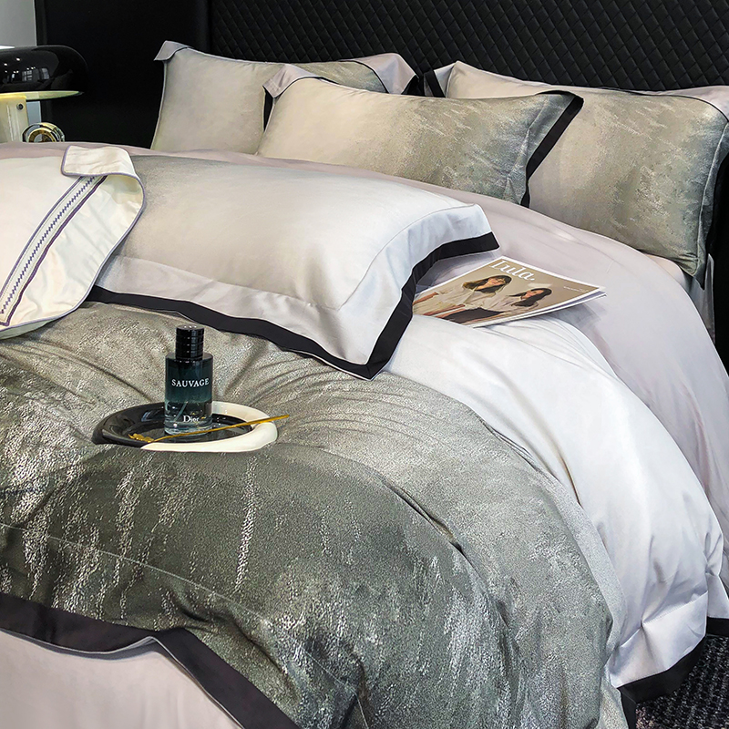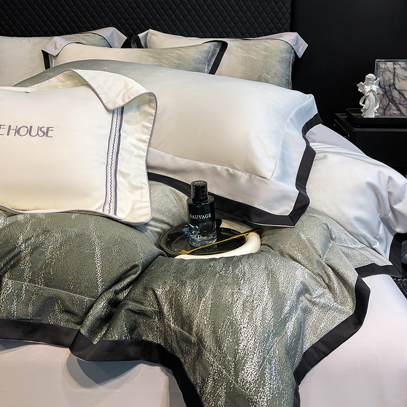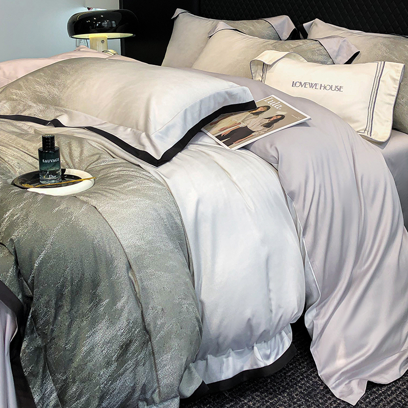 (总)若未家居2023新款轻奢意式50支全棉长绒棉四件套-水墨,贵族白,雾棕,烟蓝