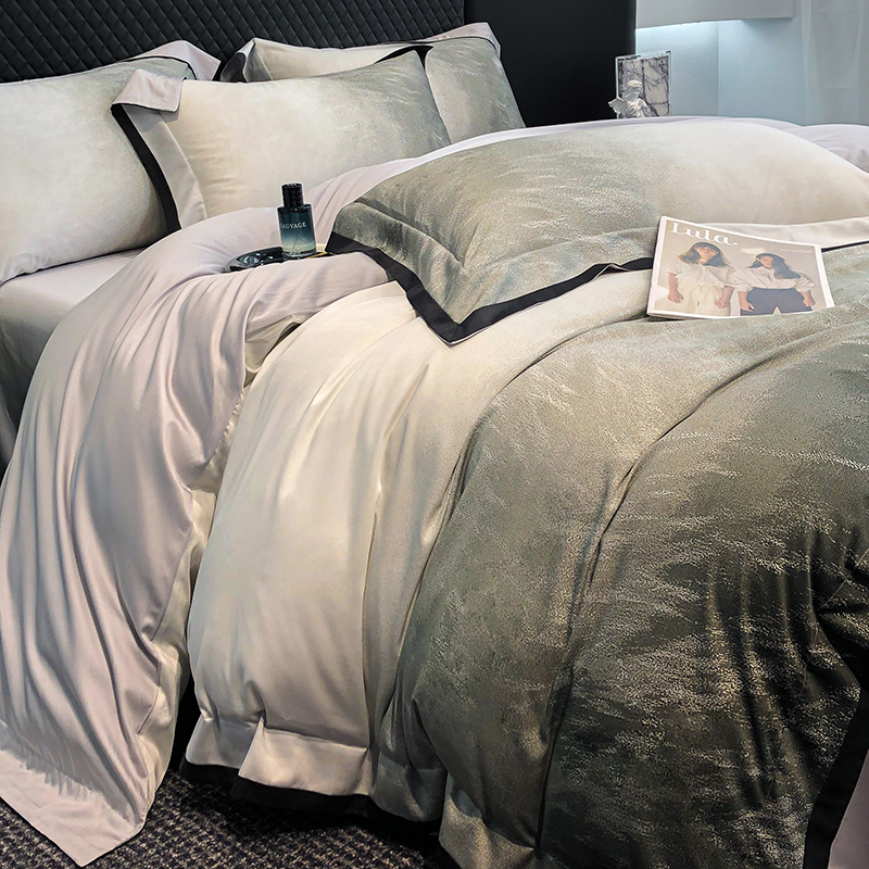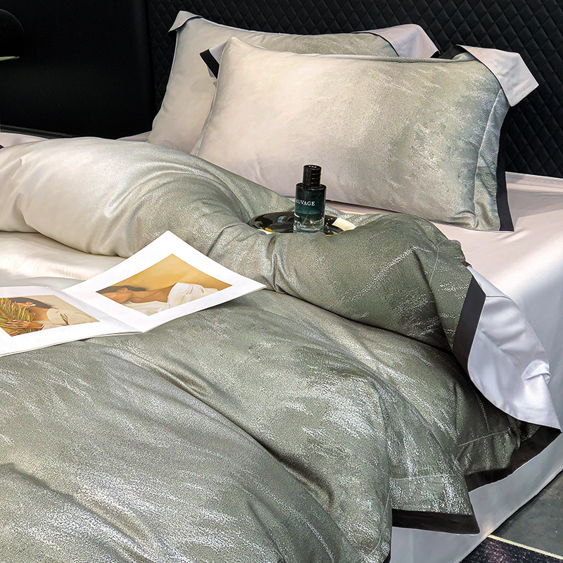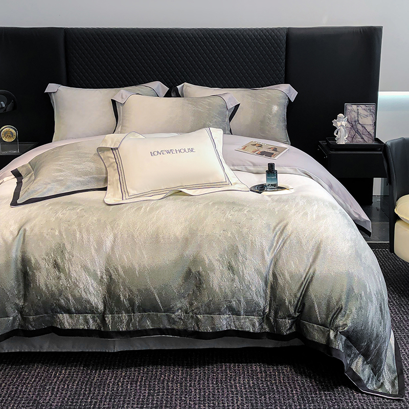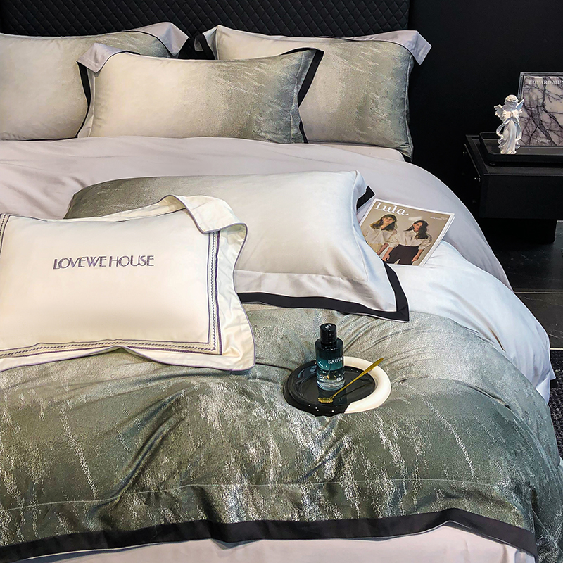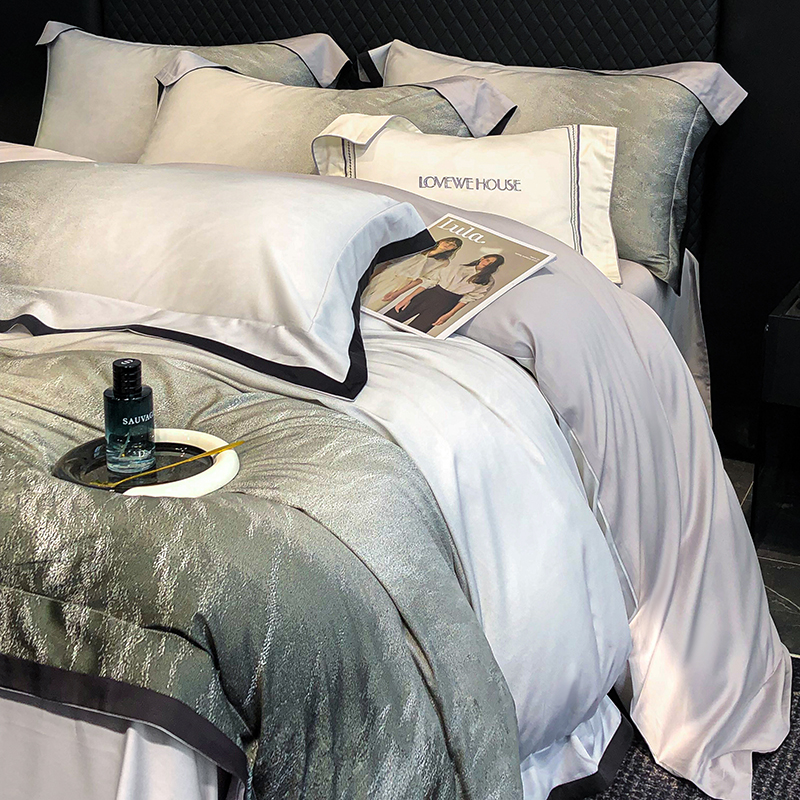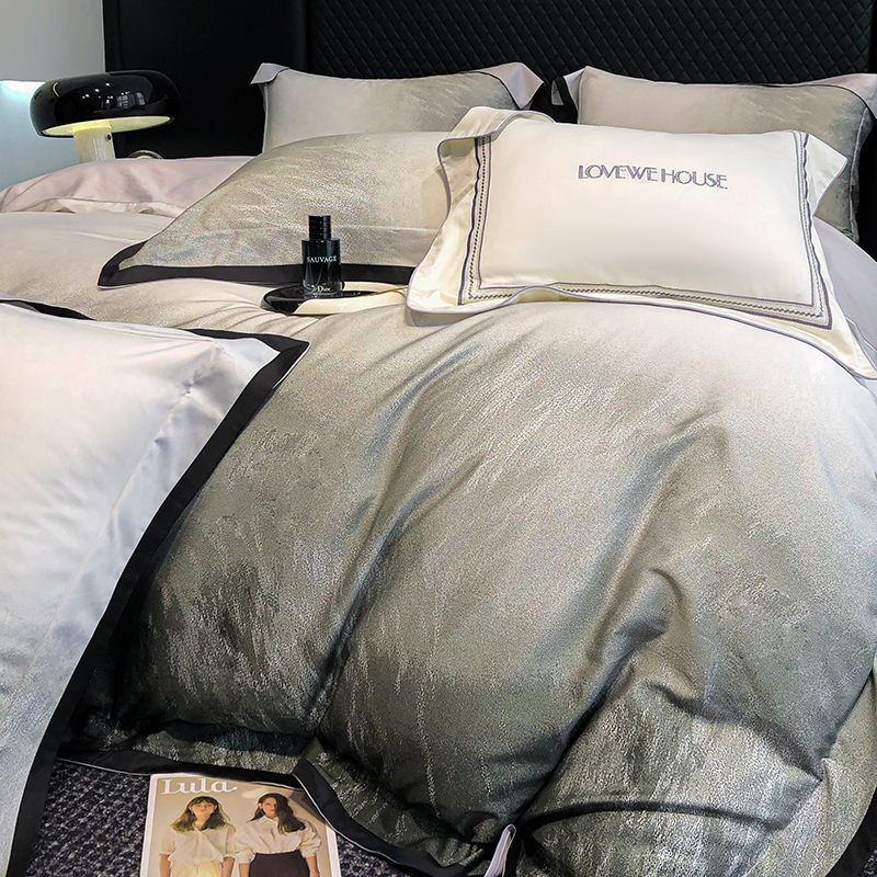 (总)若未家居2023新款轻奢意式50支全棉长绒棉四件套-水墨,贵族白,雾棕,烟蓝