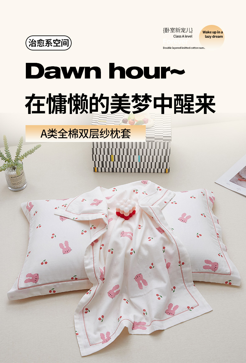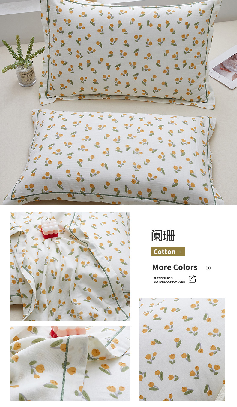 商品名称:(总)翎盈家纺 2024新款A类母婴级双层纱全棉枕套纯棉纱布枕套纯棉枕套