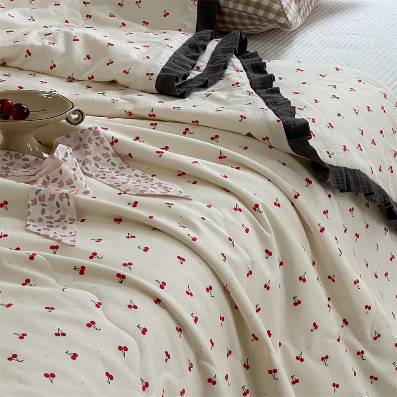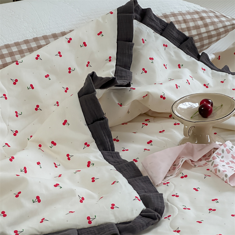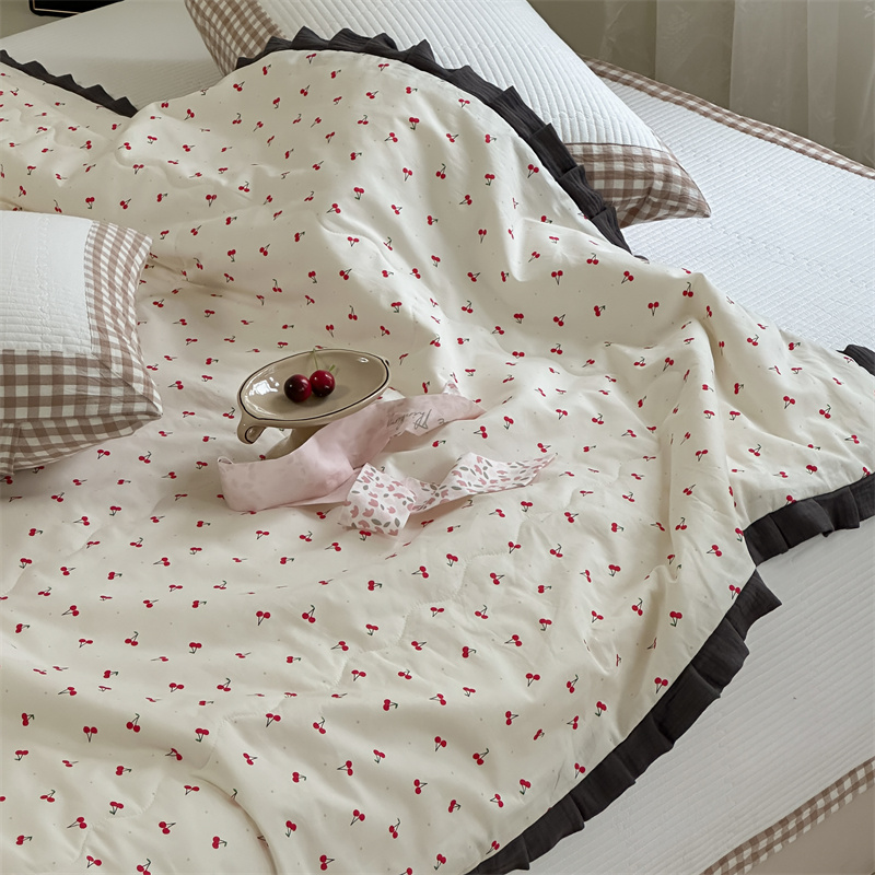 洋铭区(原狠狠爱) 2024新款皱皱花边全棉夏被 樱桃玛瑙