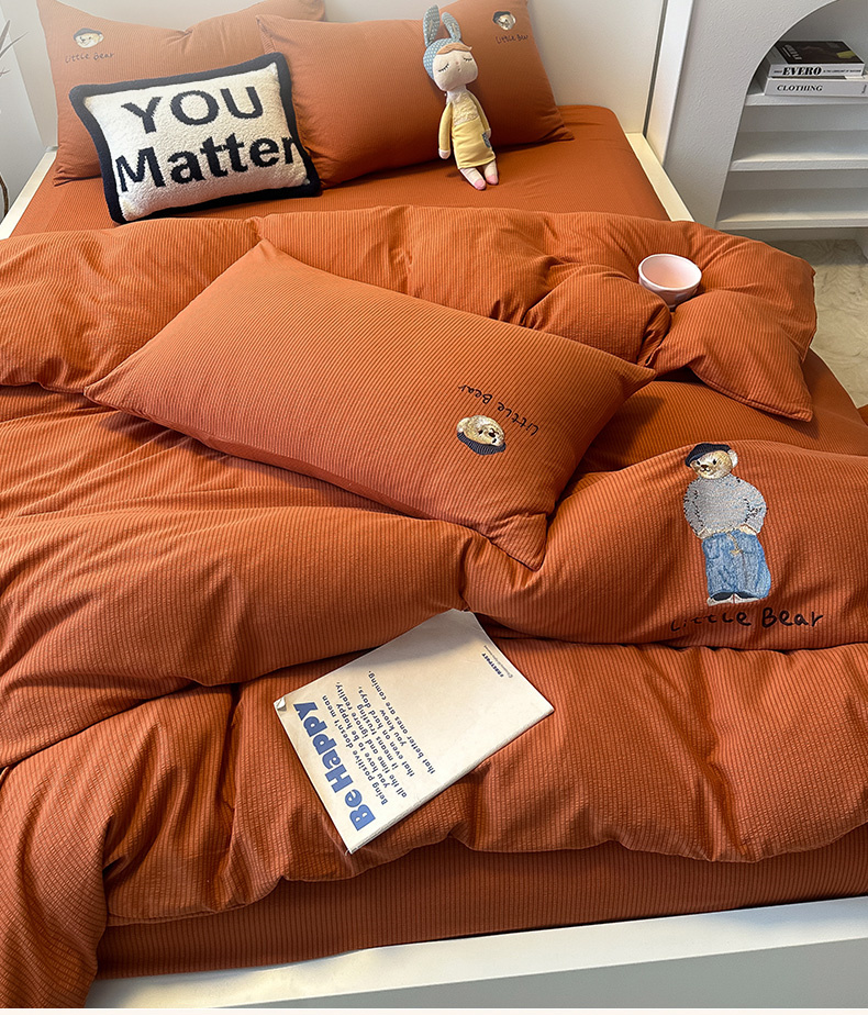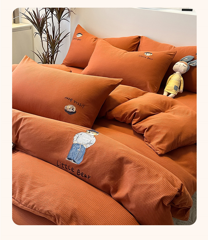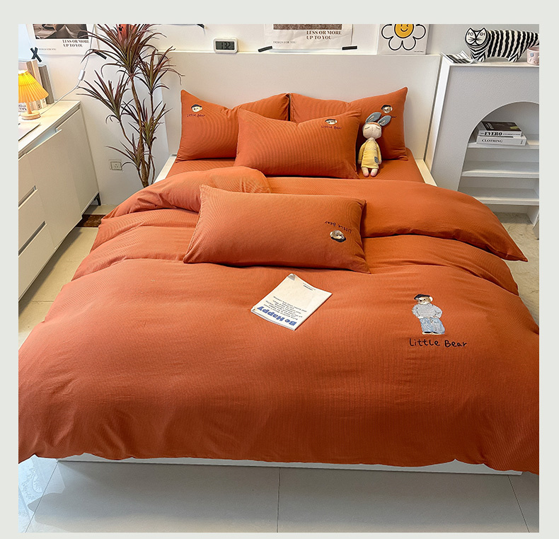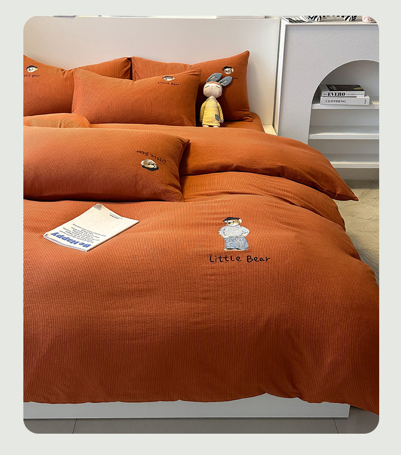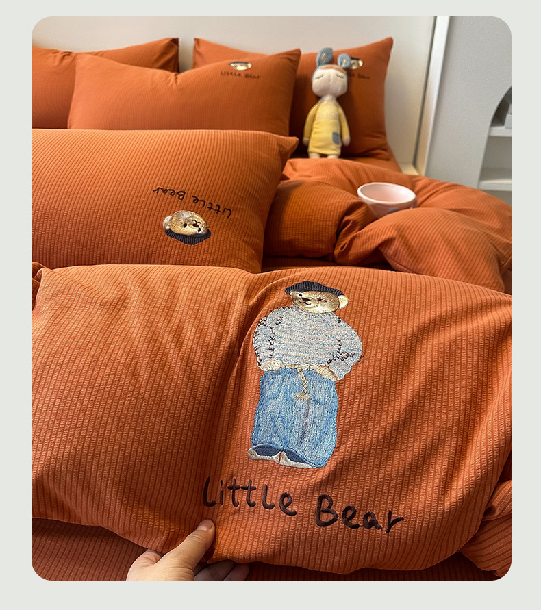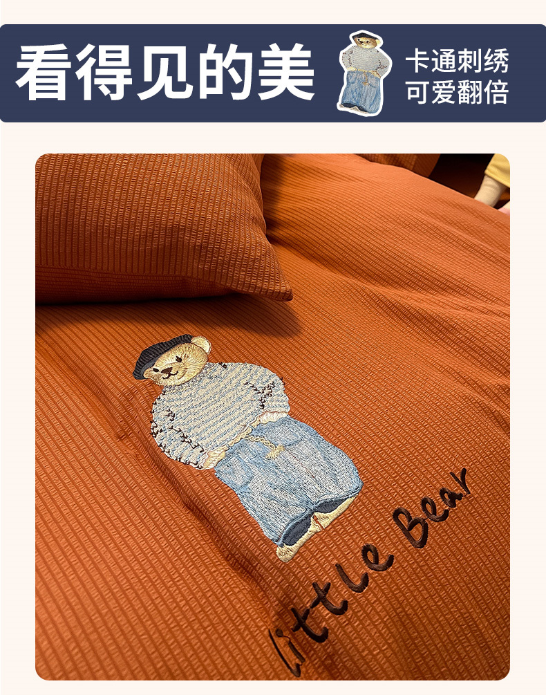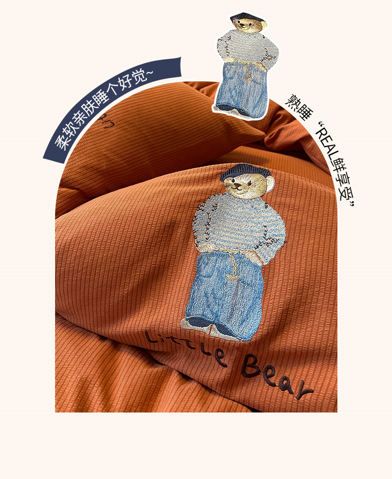 当前位置: 91家纺网 > 商品网购 > 床品套件 > 四件套 > 水洗棉四件套 > 眠帛家居 2024新款水洗棉提花刺绣四件套-熊先生 熊先生-秋意红