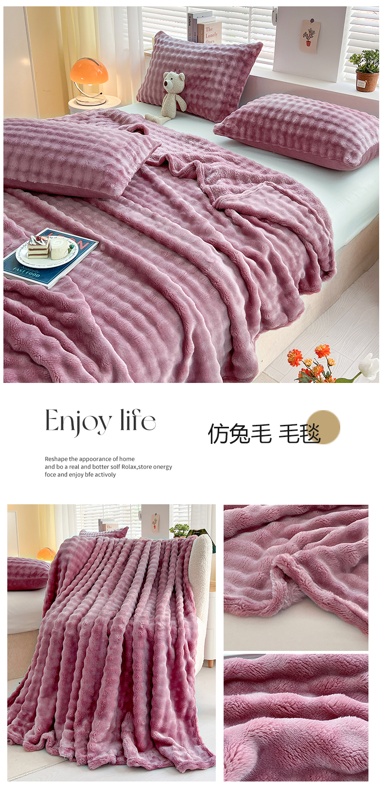 商品名称:芸锦豪 2024新款仿兔毛泡泡绒毛毯-卷边款毛毯安娜紫-卷边