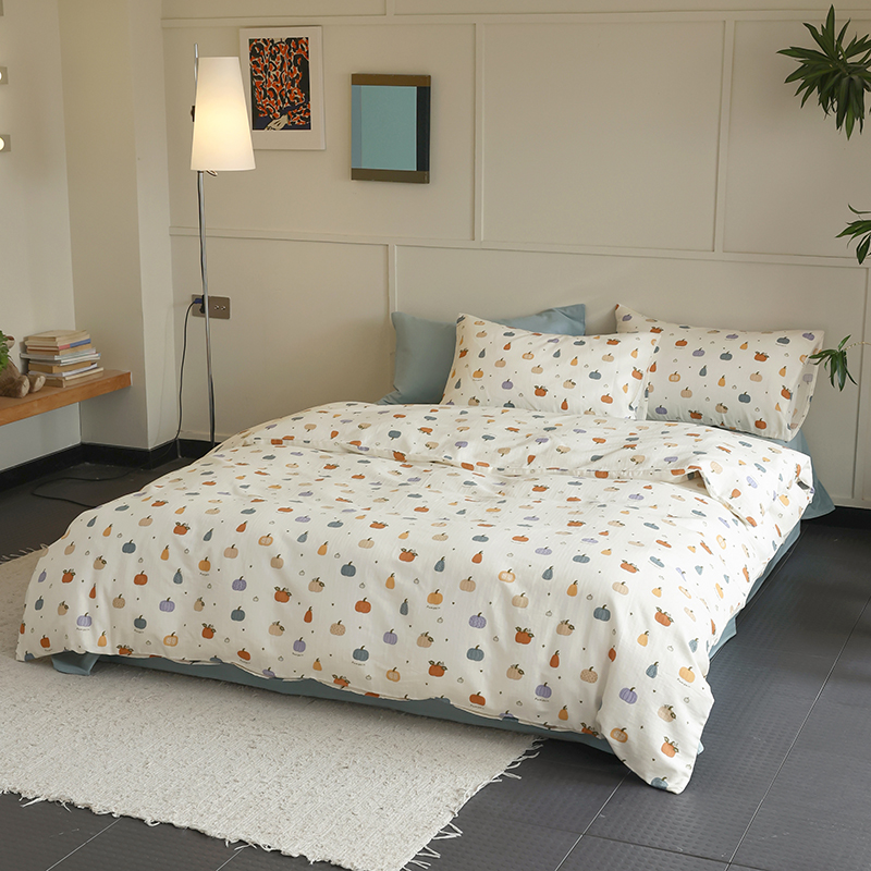 当前位置: 91家纺网 > 商品网购 > 床品套件 > 四件套 > 全棉普通四件套 > 2024新款40s全棉透气亲肤双层纱四件套单品系列-四件套 南瓜派