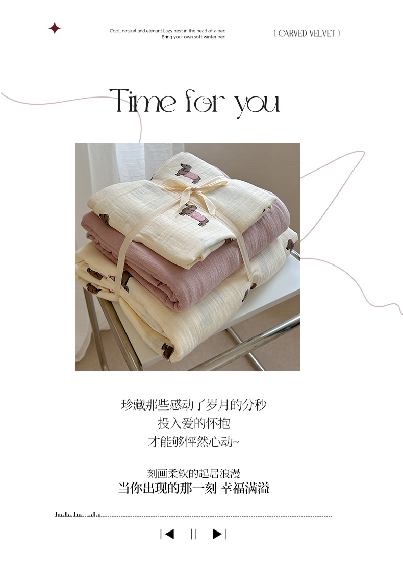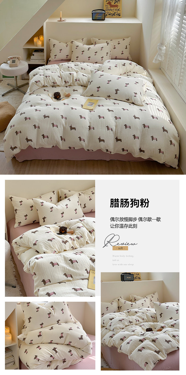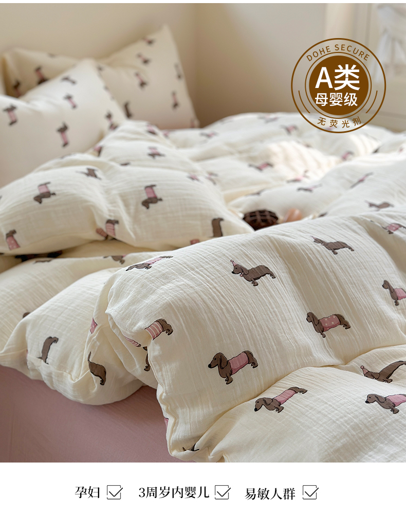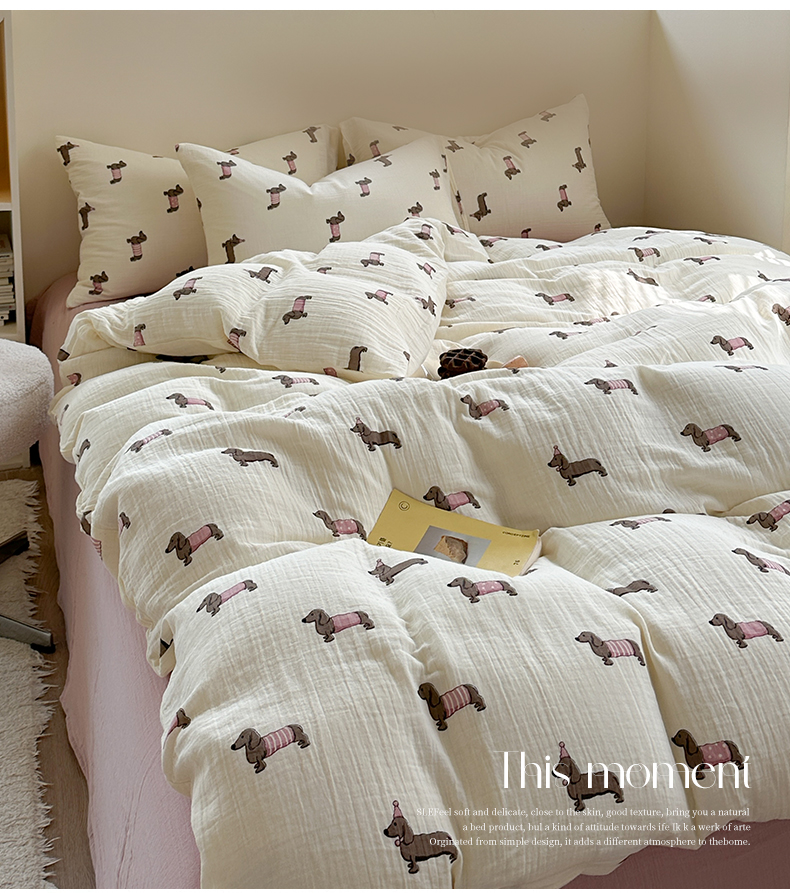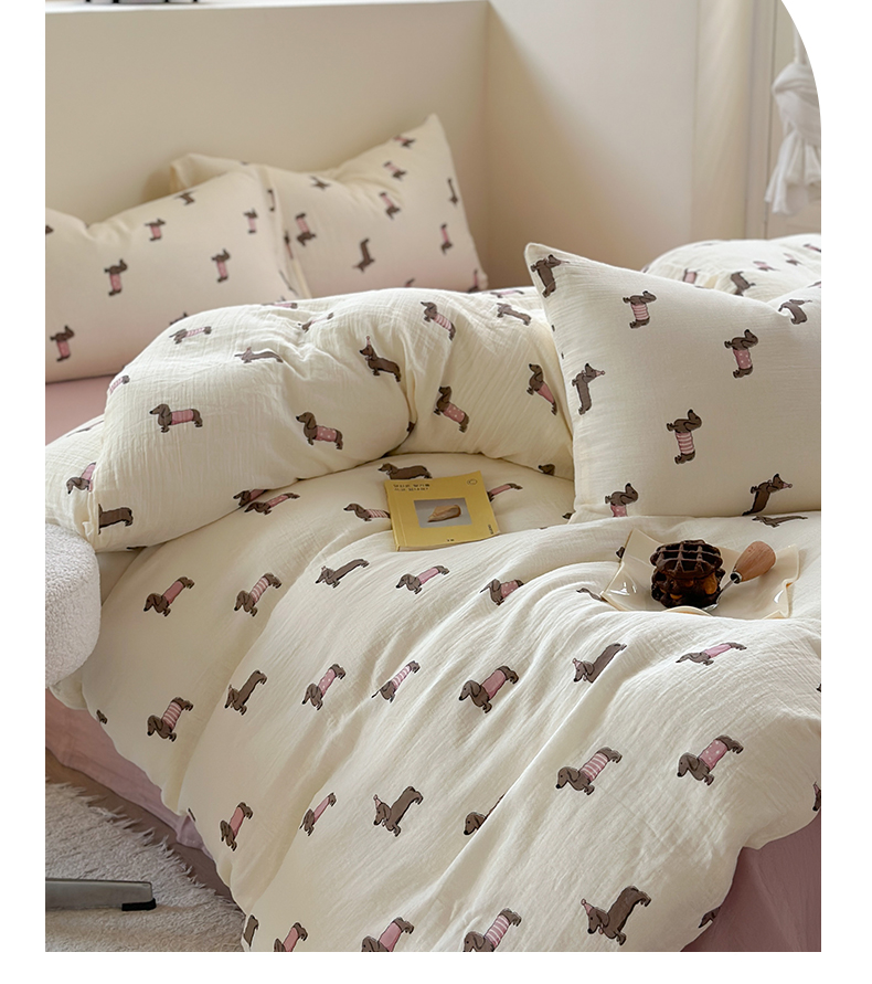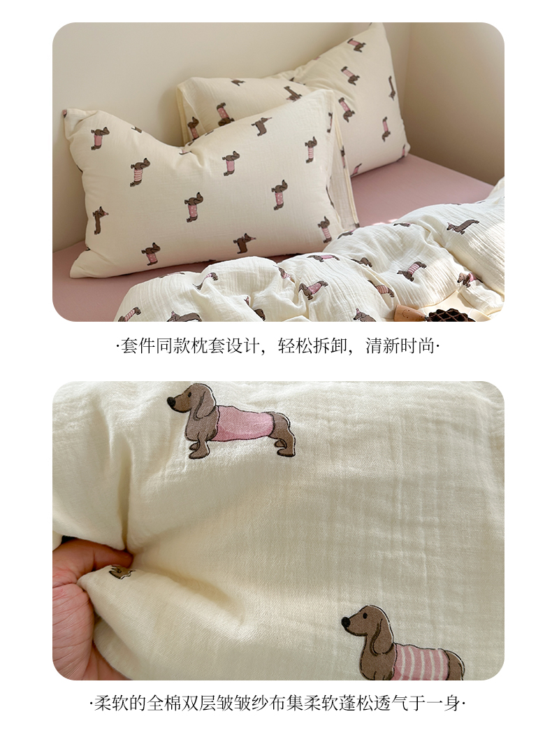萝莉家纺 2025新款全棉双层皱皱纱四件套(第三批) 腊肠狗粉