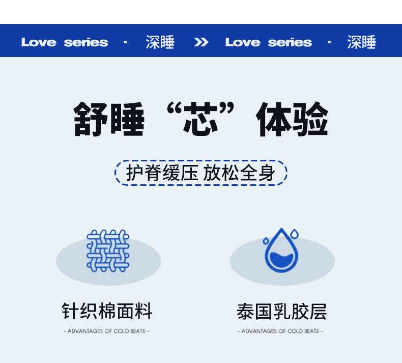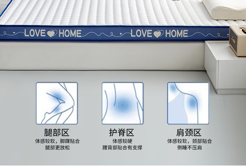 当前位置: 91家纺网 > 商品网购 > 床垫/床褥 > 普通床垫 > 鑫梦莱 2025新款针织棉乳胶记忆海绵床垫-LOVE系列成人款 波浪白蓝