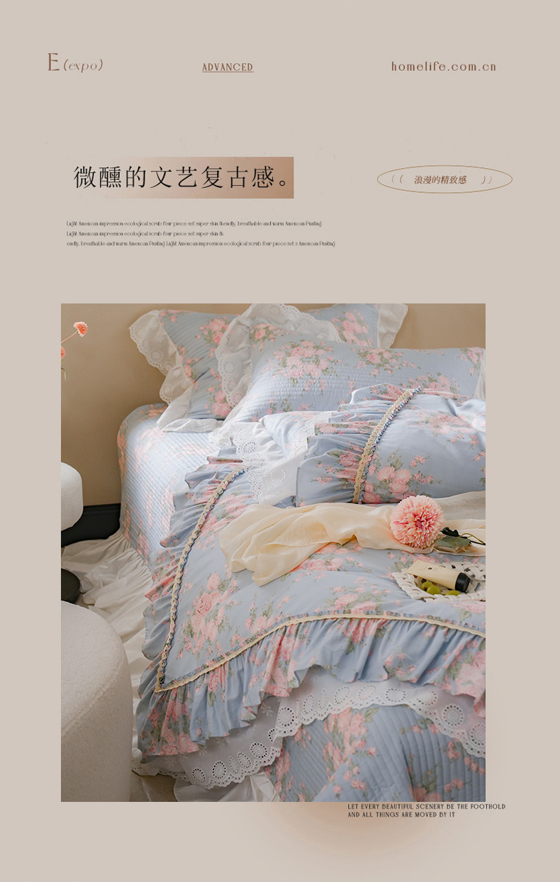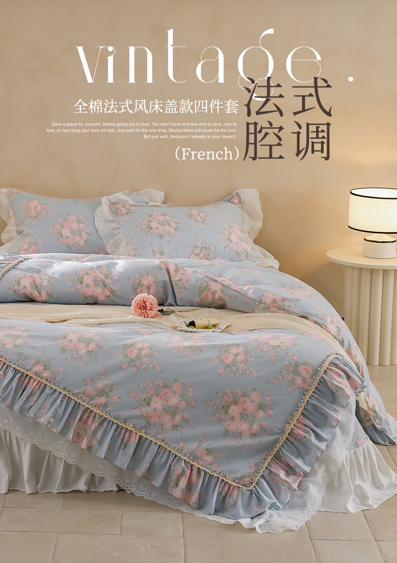 当前位置: 91家纺网 > 商品网购 > 床品套件 > 四件套 > 全棉普通四件套 > 菊上家纺 2024新款法式全棉床盖款四件套-梦幻花园系列 梦幻花园-蓝