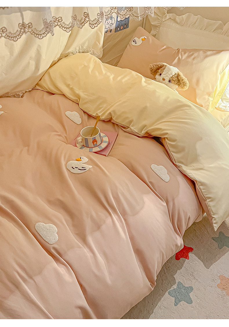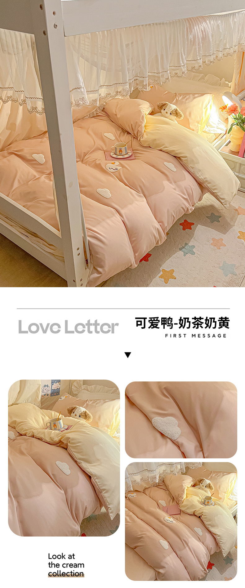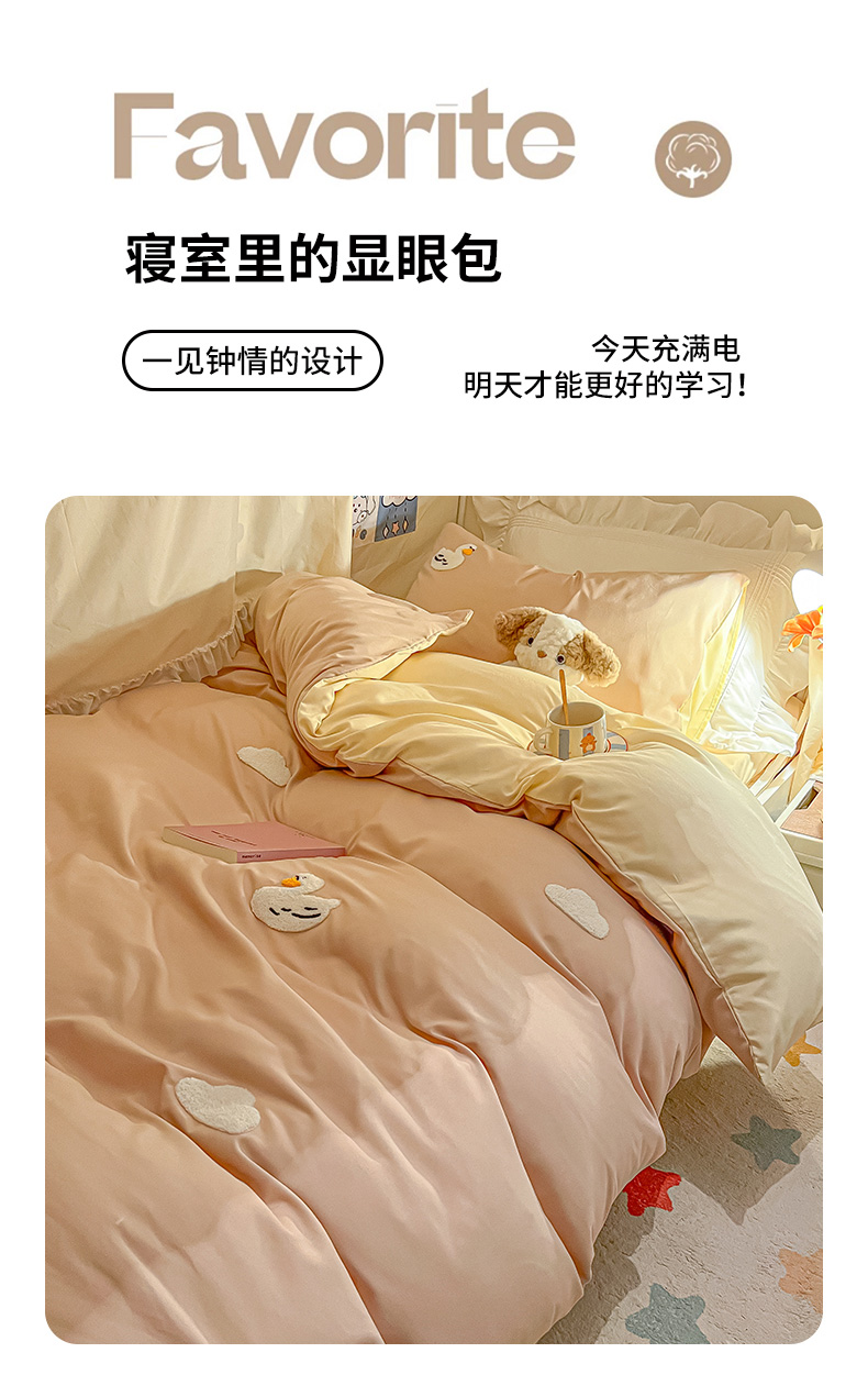当前位置: 91家纺网 > 商品网购 > 床品套件 > 四件套 > 水洗棉四件套 > 2024新款水洗棉卡通小清新毛巾绣四件套宿舍三件套学生款 可爱鸭-奶茶奶黄