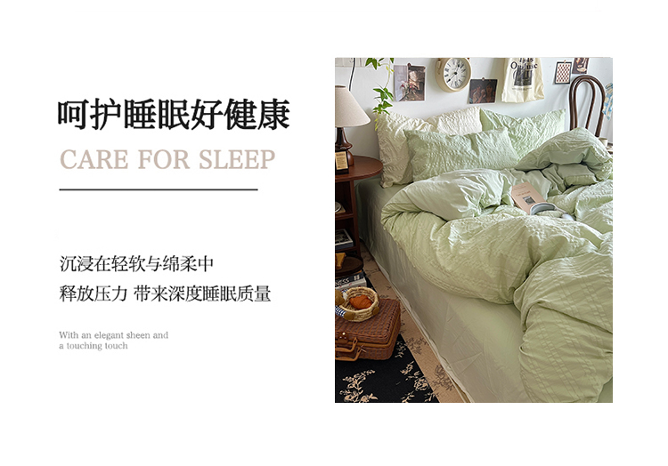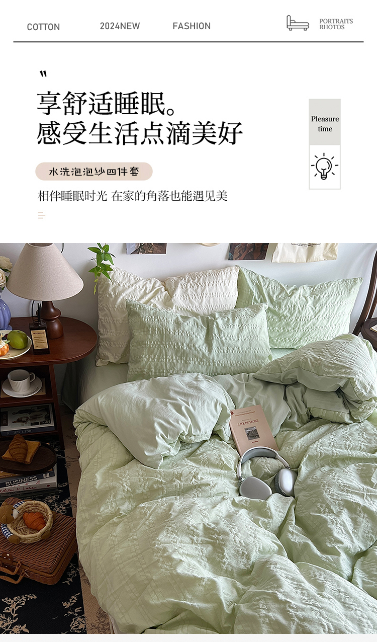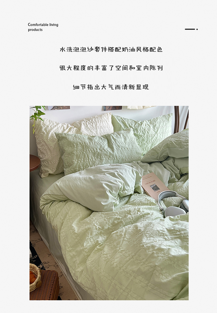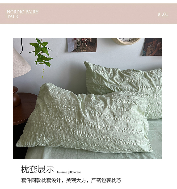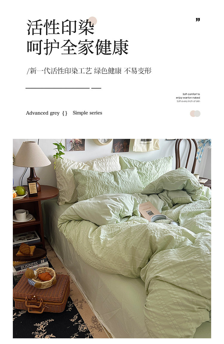 当前位置: 91家纺网 > 商品网购 > 床品套件 > 四件套 > 其它四件套 > 原素 2024新品ins风简约款泡泡纱四件套 小泡泡-浅小绿