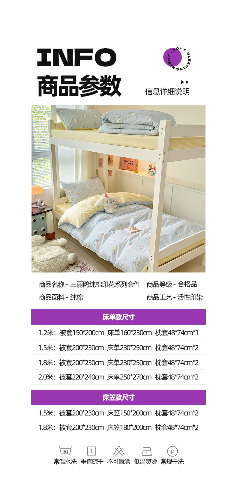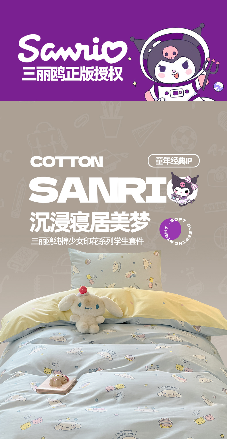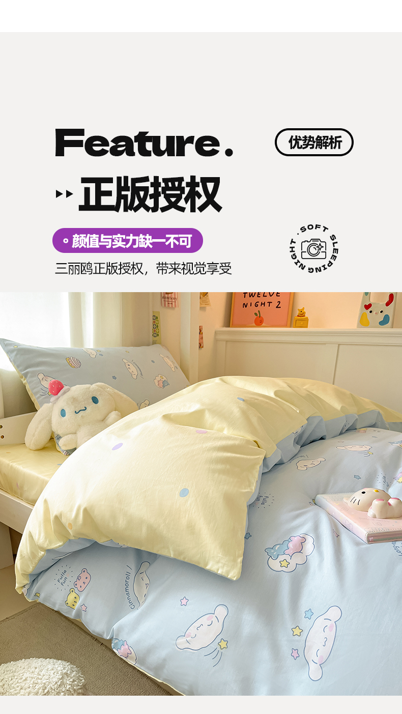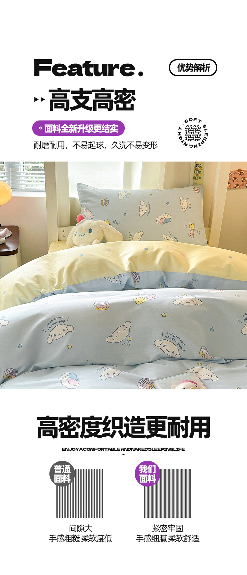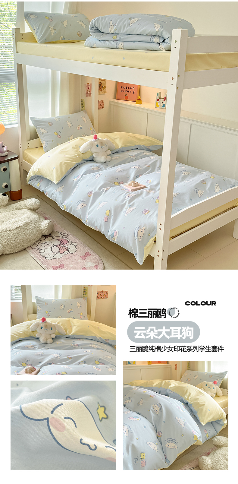 当前位置: 91家纺网 > 商品网购 > 床品套件 > 四件套 > 全棉普通四件套 > 2024新款三丽鸥授权全棉少女印花系列学生三件套四件套 棉三丽鸥-云朵大耳狗