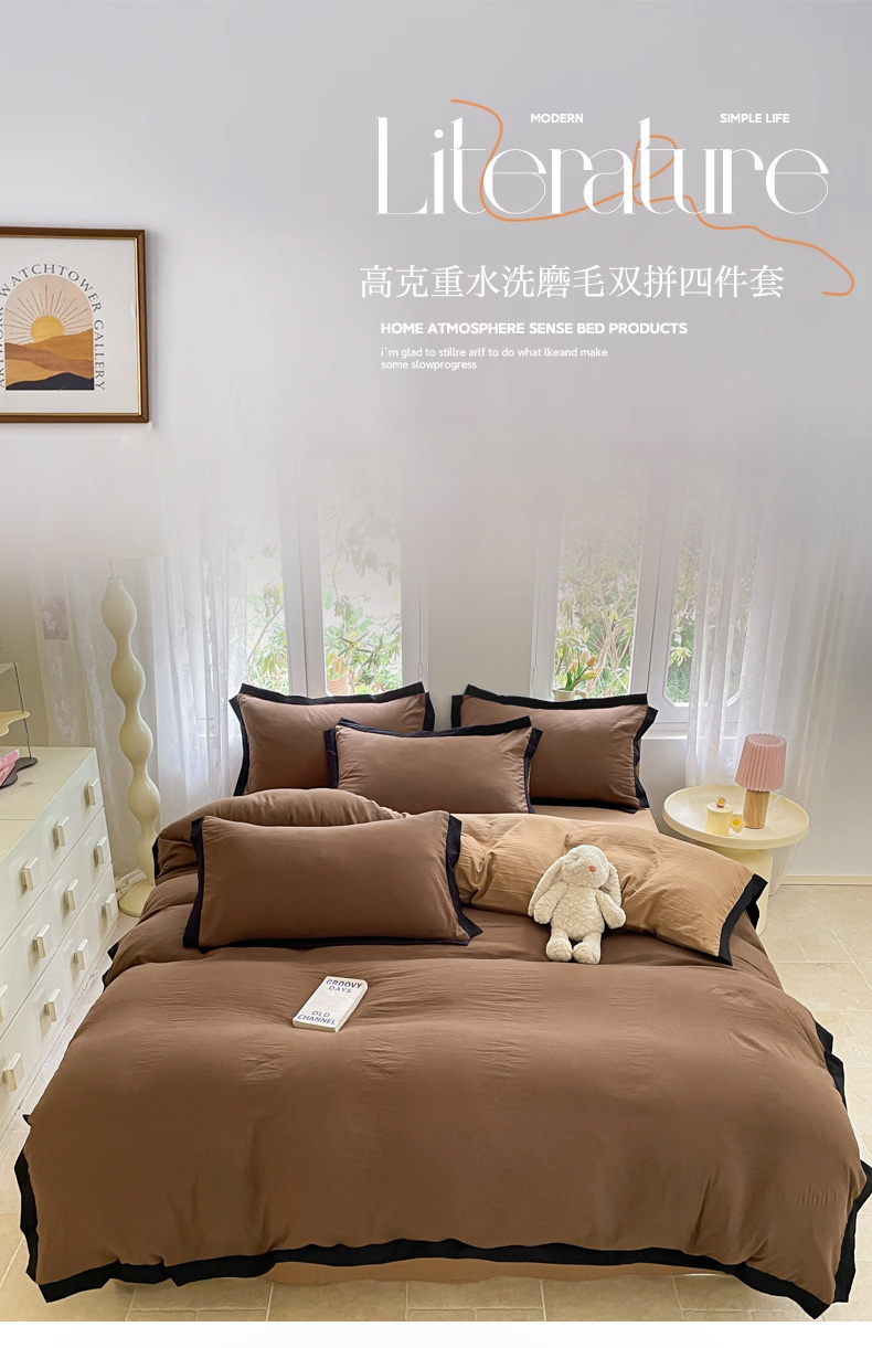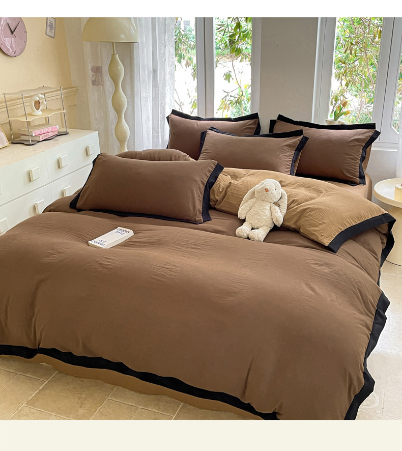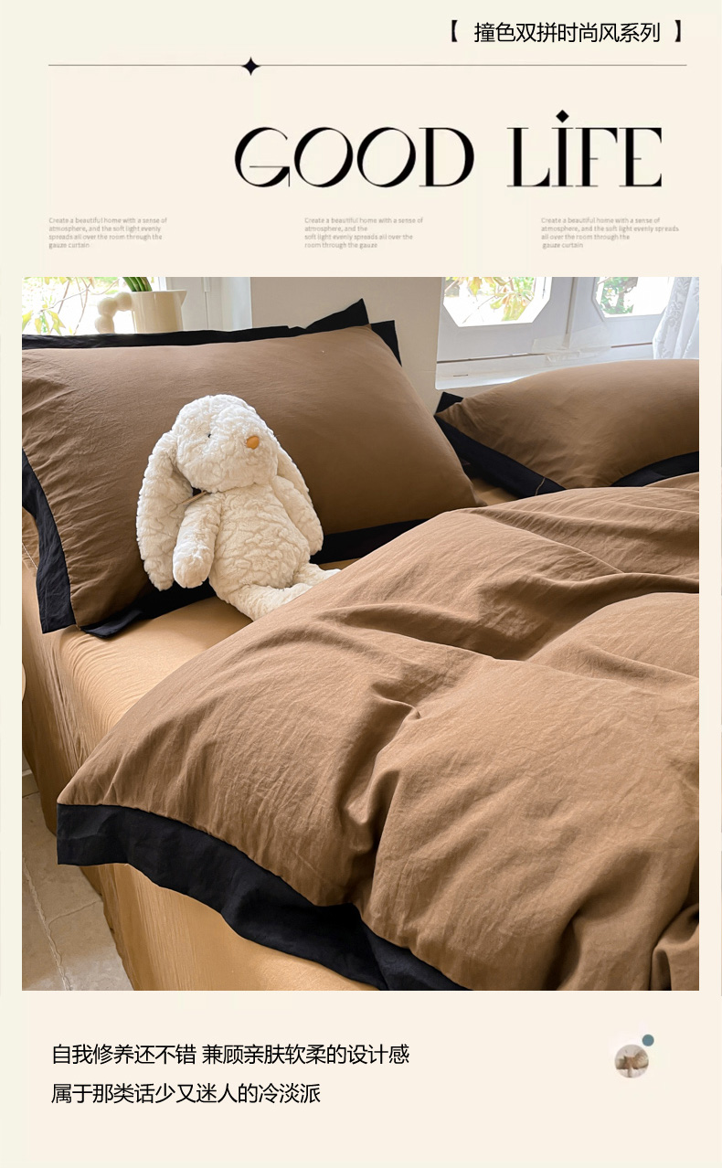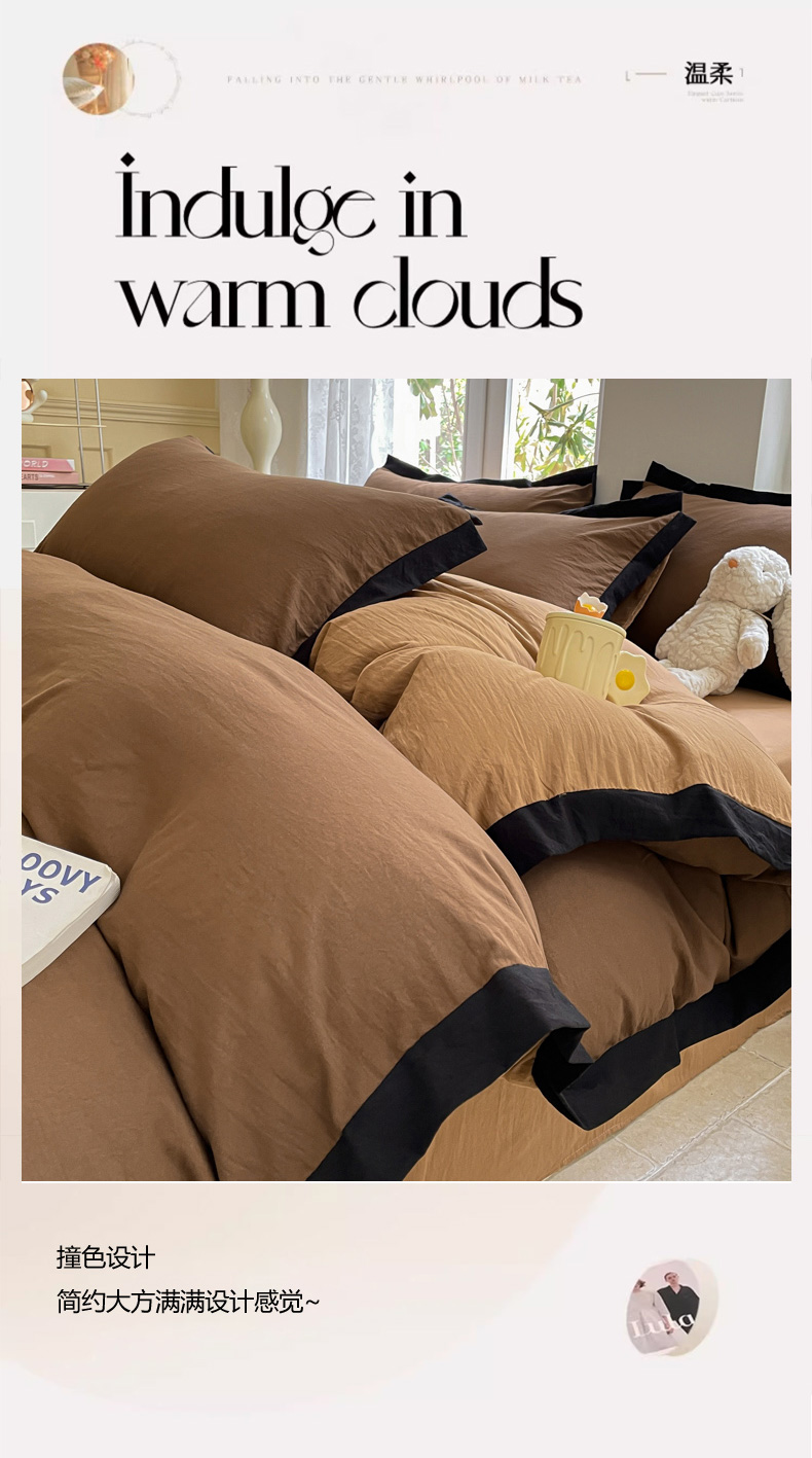 慕澄家纺 2024新款美拉德风双拼四件套 美拉德深咖+浅咖