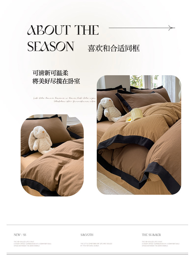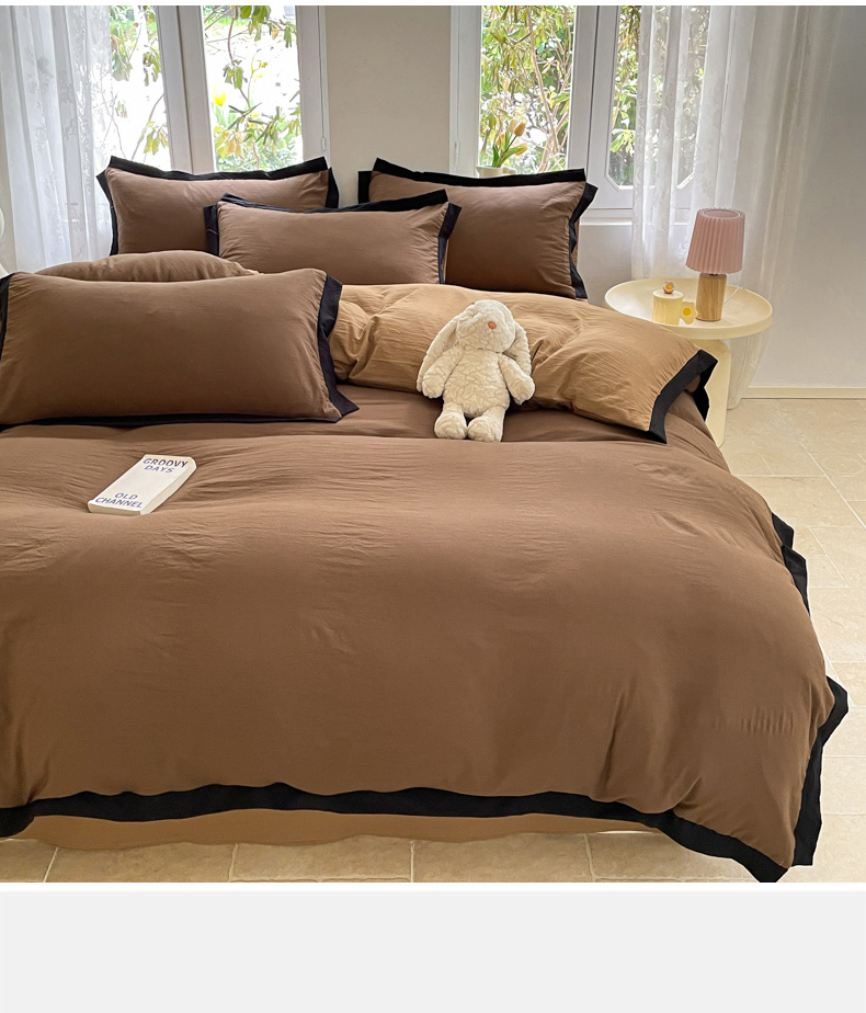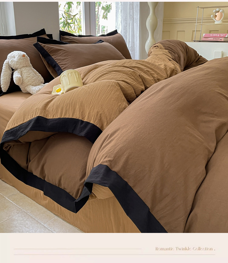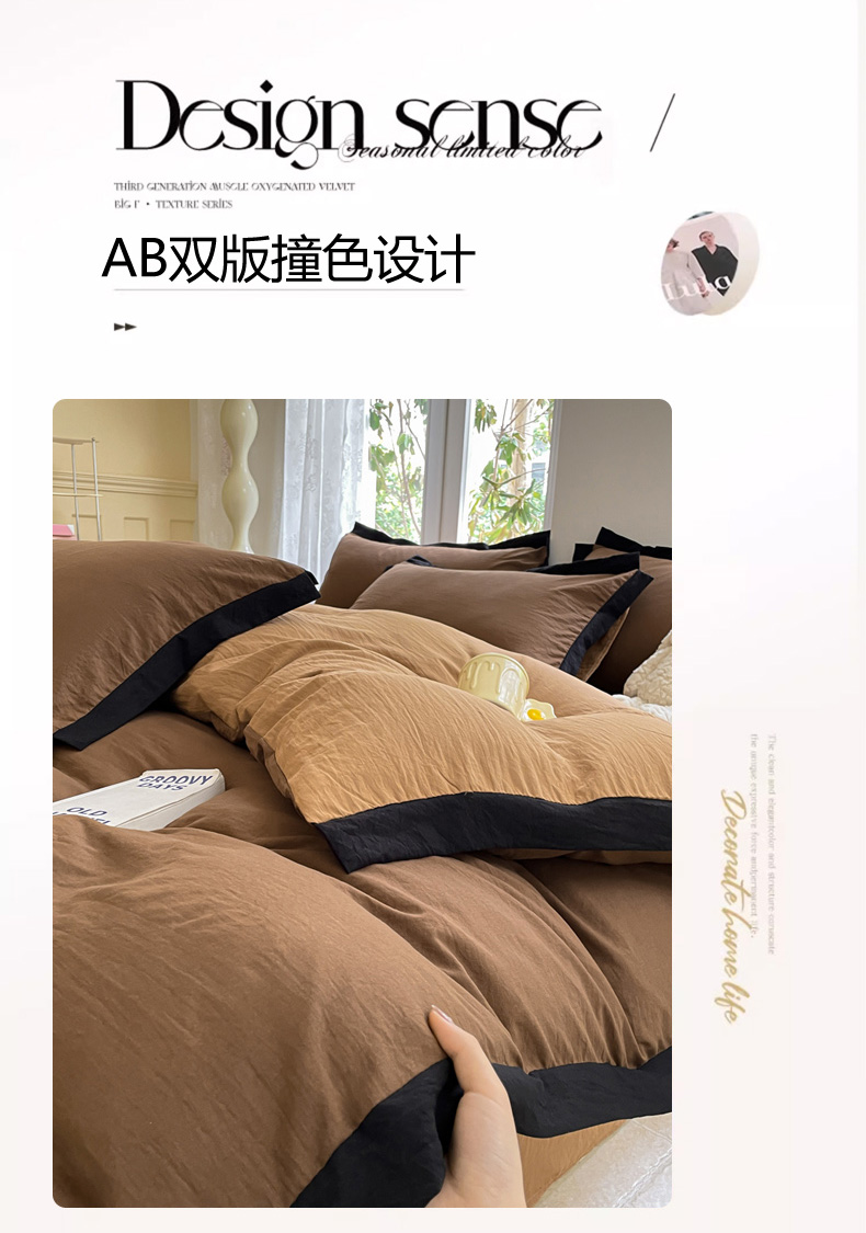 慕澄家纺 2024新款美拉德风双拼四件套 美拉德深咖+浅咖